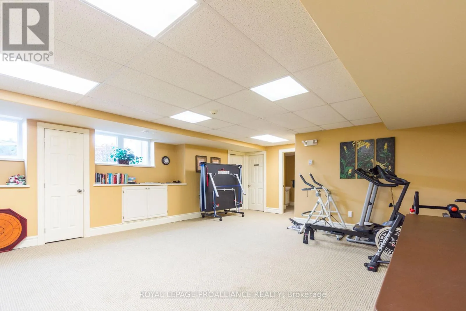 Highway 2 and Farley Avenue Discover a rate opportunity at the Trillium Grand - a spacious condominium offering nearly 3,000 sq. ft. of finished living space. Perfectly located in Belleville's desirable east end, this two-level unit provides the feel of a full-sized home with all the convenience of low-maintenance condo living. The main level (1,500 sq. ft.) is designed for easy living with a bright, open-concept layout, modern white kitchen, and generous living and dining areas filled with natural light. Two large bedrooms include a primary suite with dual closets and private en-suite bath, plus an additional full bathroom for family or guests. The lower level (1,440 sq. ft.) sets this home apart, offering endless possibilities with spacious rec room or hobby space, a three-piece bath, and a large storage/workshop area. Ideal for a home business, an extended family member, or hobby enthusiasts looking for room to create and store. Enjoy your own garden walkout, along with building amenities including an exercise room and party room. With two parking spaces, elevator access for comfort and accessibility, and stress-free upkeep, this unique home blends condo convenience with the expansive space of a house. (id:27476)