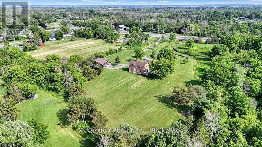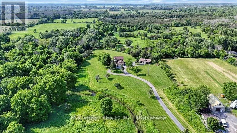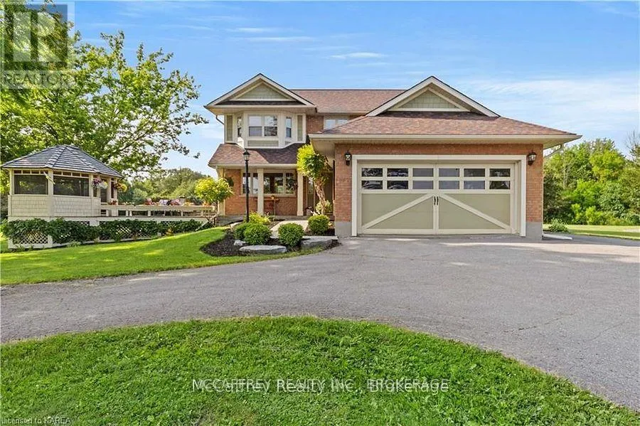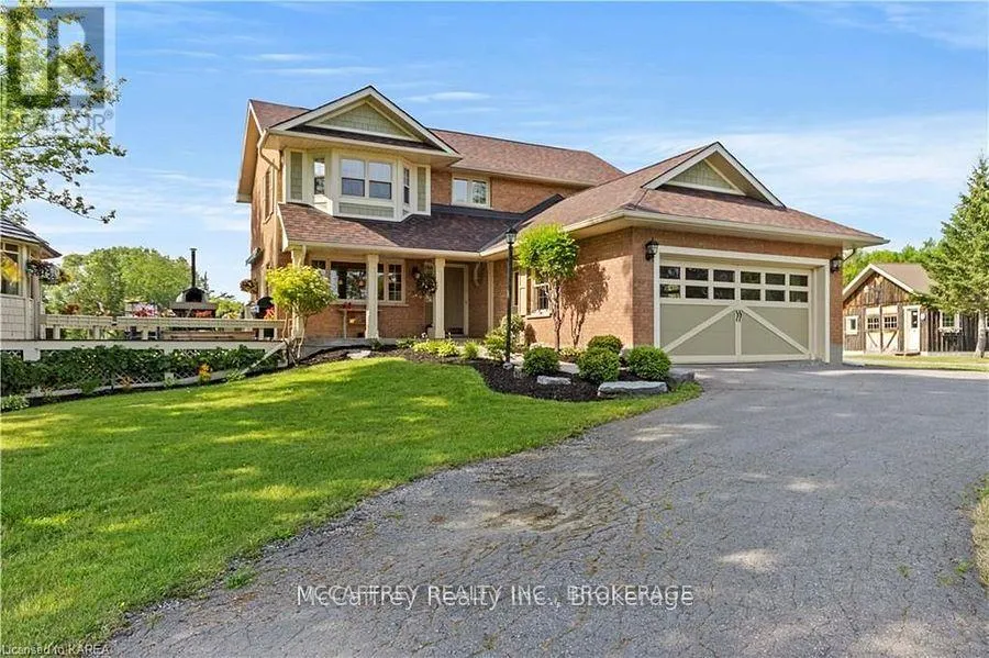 Cross Streets: Old HWY 2. ** Directions: Water Tank is for the water at the cottage, not the house. Charming 2 storey home that blends timeless elegance with modern comfort. Nestled on just over 15 pristine acres of manicured lawns and mature trees, this private sanctuary is more than a home, it's an experience. Lots of driveway space and an attached 2 car garage offers convenience while maintaining the home's aesthetic. Outdoor gatherings become unforgettable events on the expansive deck, with a gazebo and a woodfired pizza oven. The welcoming foyer offers warmth and love that has been meticulously infused into every corner. The bright, eat-in kitchen features modern updates that blend seamlessly with timeless touches. Step out through the side door onto the deck to the natural beauty of your surroundings. An elegant dining room, provides a seamless flow into the cozy living room with built-in bookshelves and an electric fireplace. A generously sized laundry room, with garage entrance and a well placed 2pc bath completes this level. Ascending the classic wooden staircase, you'll discover two bright and airy bedrooms, each offering a tranquil escape. The shared 4pc bathroom serves these rooms with elegance and functionality. The Primary bedroom features a great sized walk-in closet and a 3pc ensuite, both enhanced by heated granite tile floors for added comfort. An unfinished basement, where boundless storage options and a perfectly situated cold room await your creative touch. Outside, the property unfolds further with an updated 24'x40' insulated rustic barn that doubles as an ideal woodworking shop or more garage space. A delightful, fully functioning cottage that overlooks a tranquil stream meandering through the land. This quaint retreat could serve as a writer's studio, guest house, or a serene spot for personal reflection. Every corner of this home, barn, cottage, and the idyllic surrounding property tells a story., a cherished haven for its original owners, who have created unforgettable memories here. Now it's your turn to write the next chapter! (id:27476)