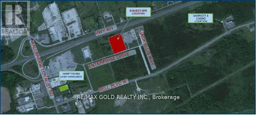 401 (Exit 538) & Loyalist Rd Location! Location! Location! Exceptional opportunity to acquire 5.5 acres of High-Exposure Employment Land with 390 feet of direct frontage on Highway 401. Strategically located just one minute from Hwy 401, Flexible Zoning Endless Possibilities! Many Uses Permitted & many more possible such as Industrial Bldg, Warehouse, Dealership, Truck & Transportation Terminal, Hotel, Motel, Banquet/Conference/Meeting Hall, Church, Motor Vehicle (Sales, Repair, Rental or Body Shop), Gas Station/Truck Stop, RV Sales & Service, Outside & Mini Storage, Financial Institution, School, Collage & University, Home Improvement/Interior Decoration Centre, Nursery & Garden Centre, Rental Outlet, Restaurant, Place of Entertainment, Private Club/Theatre, Business/Professional/Administrative Offices, Daycare, Recreational Use, Data Processing Centre etc. Property close to all major Stores, Hotels, Shoreline Casino, Shopping Mall & proposed New Costco, in the fast developing Area of the City of Belleville. This Site is SPA approved for a total of 116,182 Sq.Ft. for two industrial buildings with 32 clear height which could be increased if required. Shovel Ready! Ready to Build! Services on Lot Line! All supporting studies completed and available! Buyer to pay development charges (DCs), Use the same Plan or Amend it as per the requirement subject to approval. (id:27476)