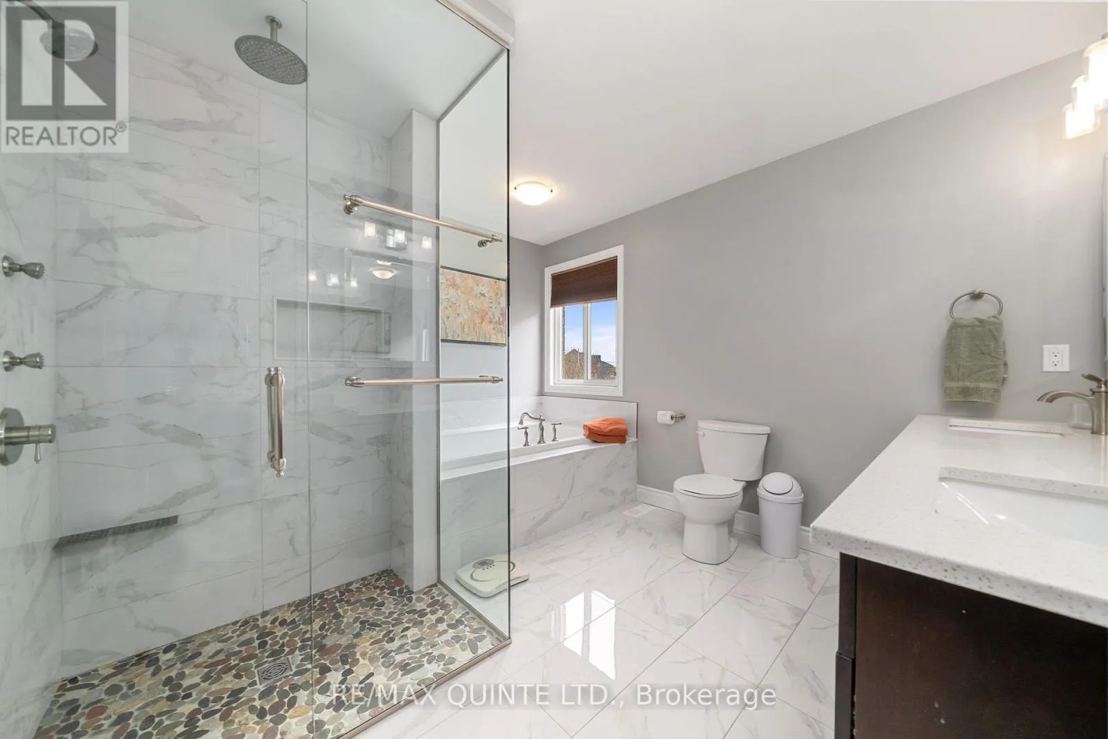 Cross Streets: Avondale & Meagher. ** Directions: Dundas St West to Avondale, North on Meagher Place. Welcome to this exceptional all-brick two-story home in Belleville's desirable West End; perfectly situated beside peaceful walking trails in a warm, family-friendly neighborhood. Step inside to find a beautiful blend of comfort, character, and thoughtful upgrades throughout. Hardwood and ceramic floors lead to a sunken living room bathed in natural light, creating a welcoming place to relax. The heart of the home is the stylish kitchen, featuring custom cabinetry, quartz countertops, and an on-demand hot water tap perfect for your morning coffee or afternoon tea. Off the cozy family room and breakfast nook, two patio doors open to a stunning multi-level composite deck; your go-to spot for BBQs, morning coffee, or evening entertaining under the stars. The fully fenced backyard is lush yet low-maintenance with an in-ground sprinkler system to keep it green year-round. Upstairs, the spacious primary suite is a true retreat with a walk-in closet and a spa-inspired 5-piece ensuite complete with heated floors, a custom tile shower, and luxurious finishes. With 4 bedrooms and 3 bathrooms, there's space for the whole family. The fully finished basement offers the perfect mix of fun and functionality; ideal for movie nights, game days, or relaxing by the wet bar (bonus: built-in candy dispensers the kids will love!). With tasteful updates, generous storage, and a prime location that combines community charm with everyday convenience, this home truly has it all style, comfort, and heart. (id:27476)