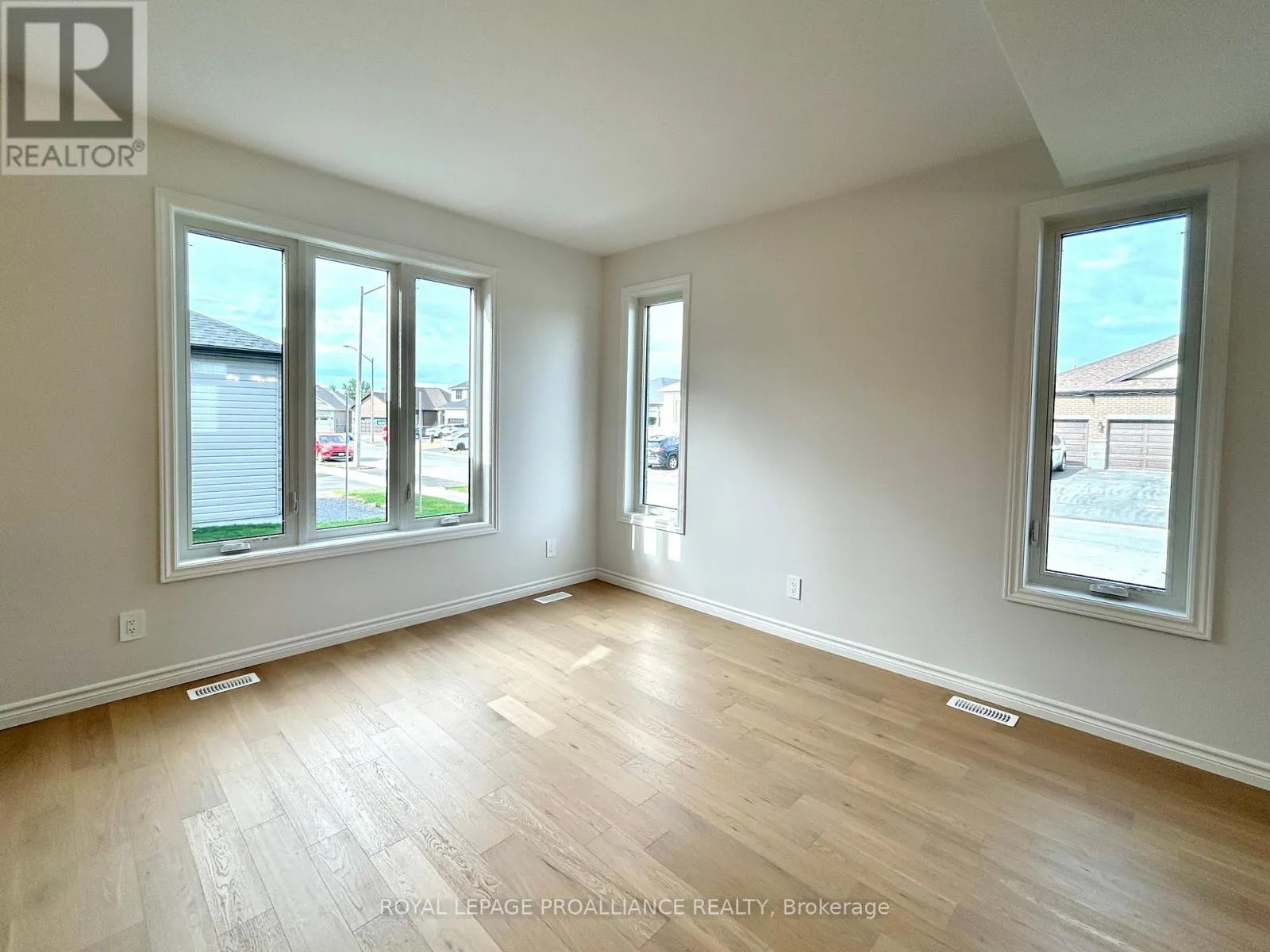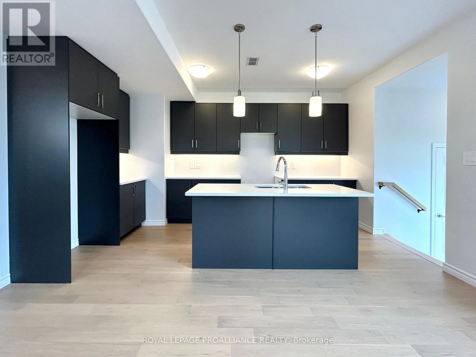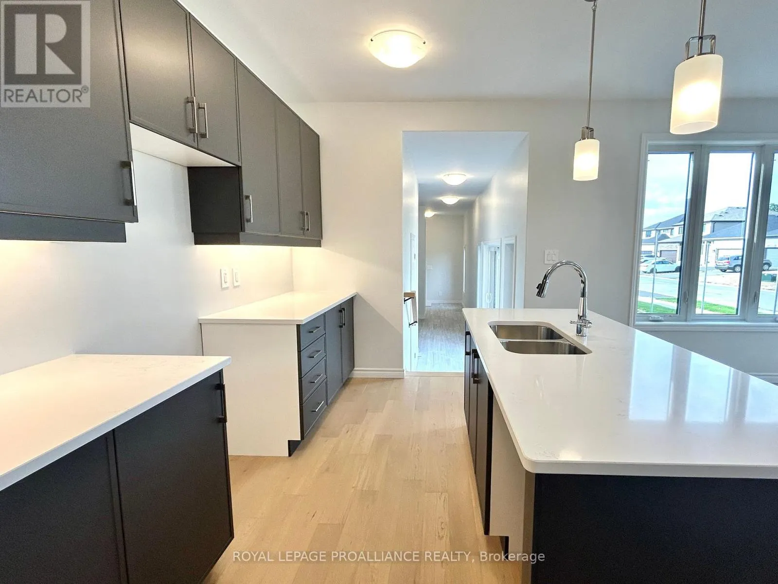 Farnham Road to Riverstone Way Discover the perfect blend of modern living and functionality. Situated in a prime Belleville location, this property is close to the Quinte Wellness Centre, 401, Walmart and the Quinte Mall, making it an ideal home for modern living. As you step inside, you're welcomed by the main floor's 9-foot ceilings, which create a spacious and airy atmosphere. The main floor features a formal living room, and spacious open dining and family room just off the beautiful kitchen complete with quality quartz countertops. Just past the kitchen is the rear breezeway which includes the powder room, laundry, and access to the fully fenced private courtyard area, and attached 2 car garage. Upstairs, the primary bedroom serves as a private retreat, featuring a walk-in closet, 3-piece ensuite bath and private balcony. Two additional bedrooms, a 4-piece bathroom and convenient laundry closet complete the second level. The full unfinished basement includes large windows and a basement bathroom rough in (id:27476)