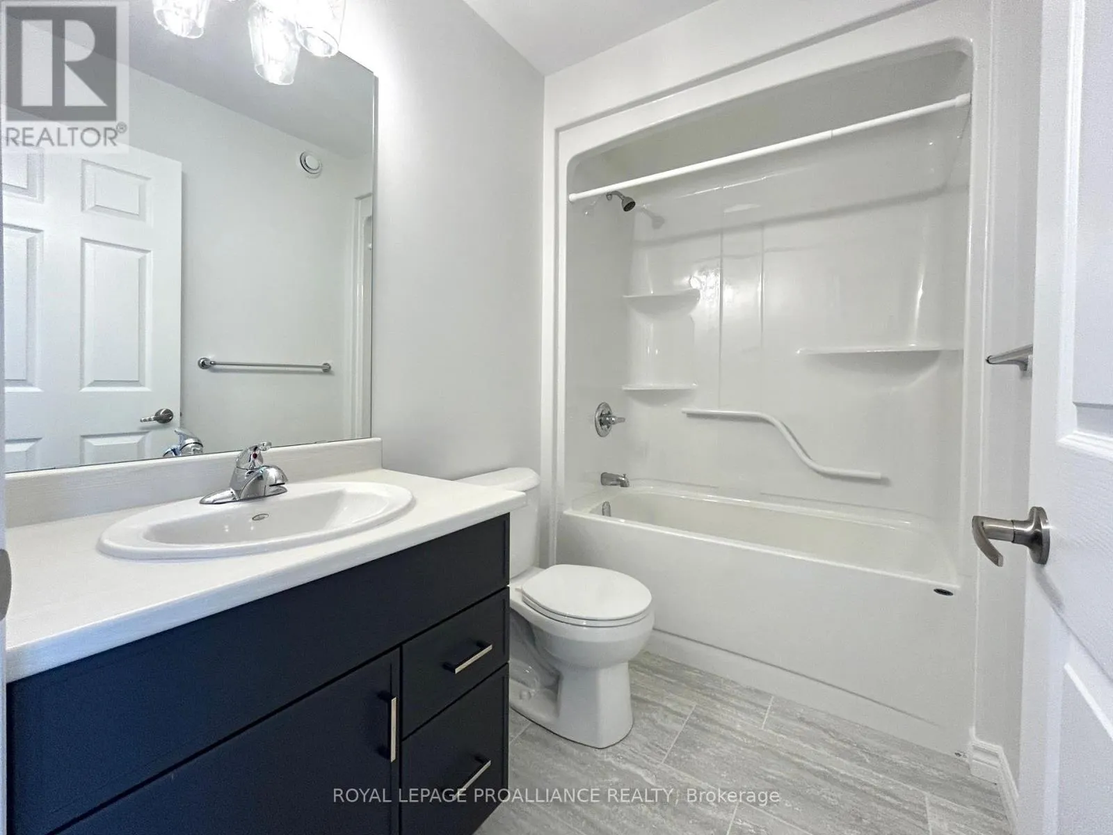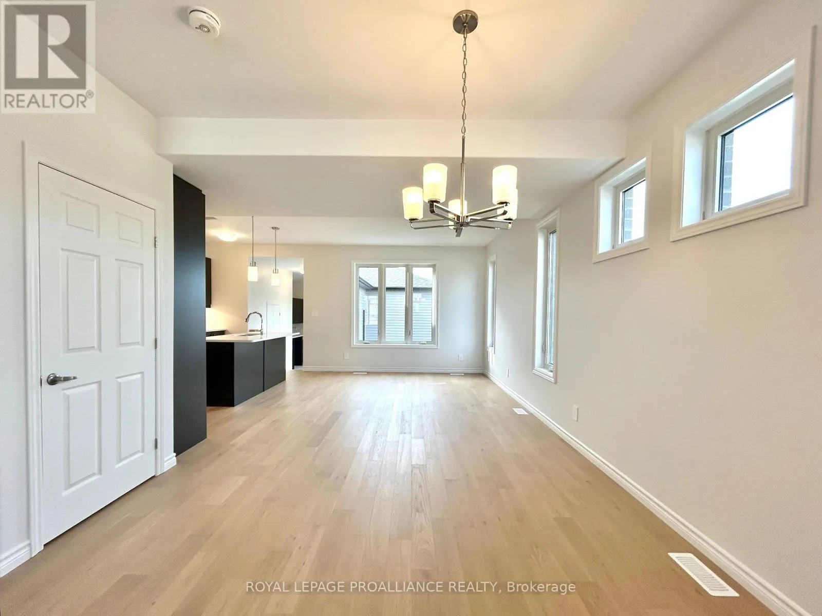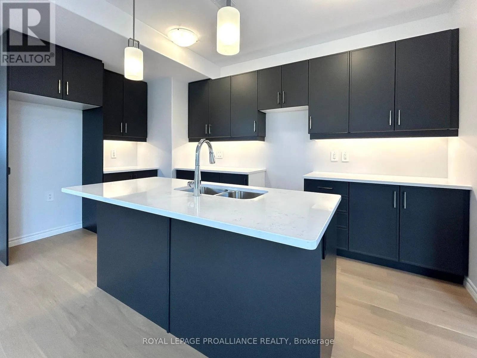 Farnham Road to Riverstone Way Discover the perfect blend of modern living and functionality. Situated in a prime Belleville location, this property is close to the Quinte Wellness Centre, 401, Walmart and the Quinte Mall, making it an ideal home for modern living. As you step inside, you're welcomed by the main floor's 9-foot ceilings, which create a spacious and airy atmosphere. The main floor features a formal living room, and spacious open dining and family room just off the beautiful kitchen complete with quality quartz countertops. Just past the kitchen is the rear breezeway which includes the powder room, laundry, and access to the fully fenced private courtyard area, and attached 2 car garage. Upstairs, the primary bedroom serves as a private retreat, featuring a walk-in closet, 3-piece ensuite bath and private balcony. Two additional bedrooms, a 4-piece bathroom and convenient laundry closet complete the second level. The full unfinished basement includes large windows and a basement bathroom rough in (id:27476)