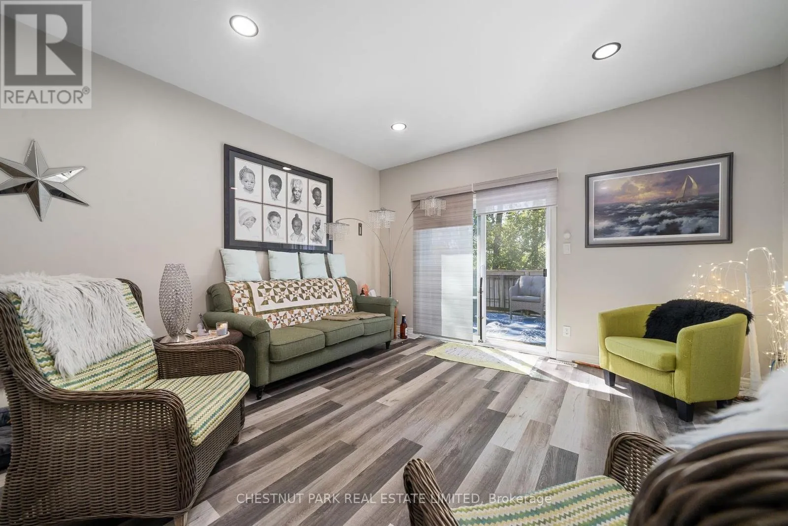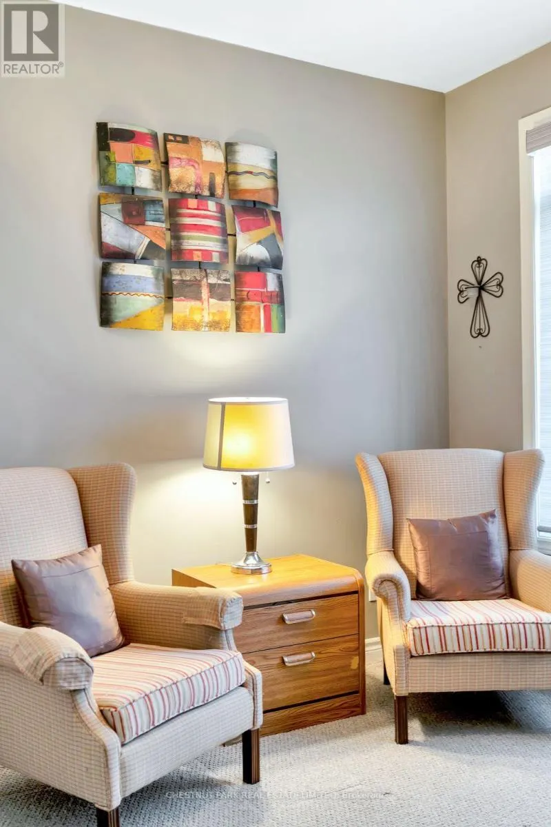 Cross Streets: Haig Rd and Janlyn Cres. ** Directions: Bridge St E or Dundas St E to Haig Road. Welcome to the sought-after East Gate community. This beautifully updated bungalow-style townhome features two spacious bedrooms, each with its own bathroom, offering both privacy and convenience on a single level. The primary suite also includes a generous walk-in closet for added comfort. Hosting is made easy with a refreshed kitchen, updated cabinetry and a stylish new backsplash. Enjoy the ease of main-floor laundry with a brand-new washer and dryer. The fully finished basement adds excellent versatility with a kitchenette, large rec room, den, and a 3-piece bath, perfect for multi-generational living or extended guest stays. Step out from the living room to a private backyard deck, ideal for relaxing or entertaining. Located just minutes from the hospital, shopping, and public transit. (id:27476)