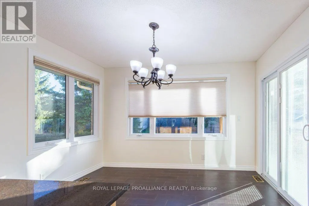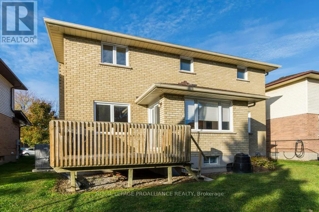 Tracey Park Drive to Dungannon Drive This beautifully updated all-brick, 4 bedroom home is tucked away on a quiet cul-de-sac in a highly sought-after neighbourhood. Step inside to a spacious foyer leading to a large living room, formal dining room, and a sunny eat-in kitchen (2010) featuring tile flooring, quartz countertops, and Thomasville cabinets. The family room offers a cozy wood burning fireplace, while hardwood floors flow through the living room, dining room, upper hall, and bedrooms. A winding oak staircase leads to the upper level with a 4-piece main bath and a primary bedroom complete with a 4-piece ensuite and walk-in closet. The finished recreation room includes a freestanding gas fireplace for added warmth and charm. Recent updates include main and upper floor bathroom renovations, window and patio door replacements with new window coverings (2019), roof shingles (2017), eavestroughs and downspouts with leaf guards (2018), and a high-efficiency forced-air gas furnace with humidifier and central air (2014). Additional features include a natural gas BBQ hookup, new sump pump (2024), and a partially fenced yard. Conveniently located minutes from schools, Quinte Mall, and Highway 401 - this is the perfect place to raise your family! (id:27476)