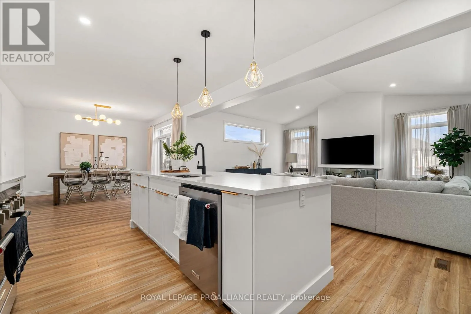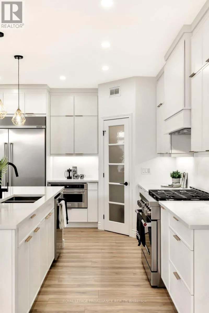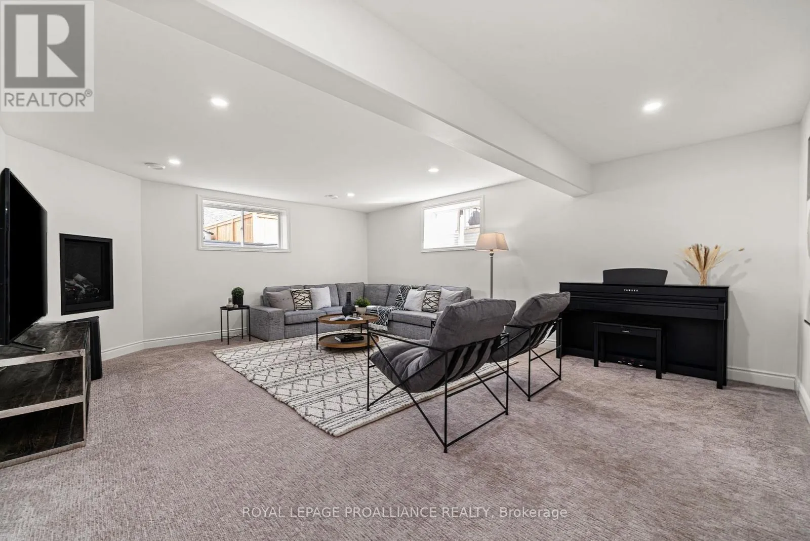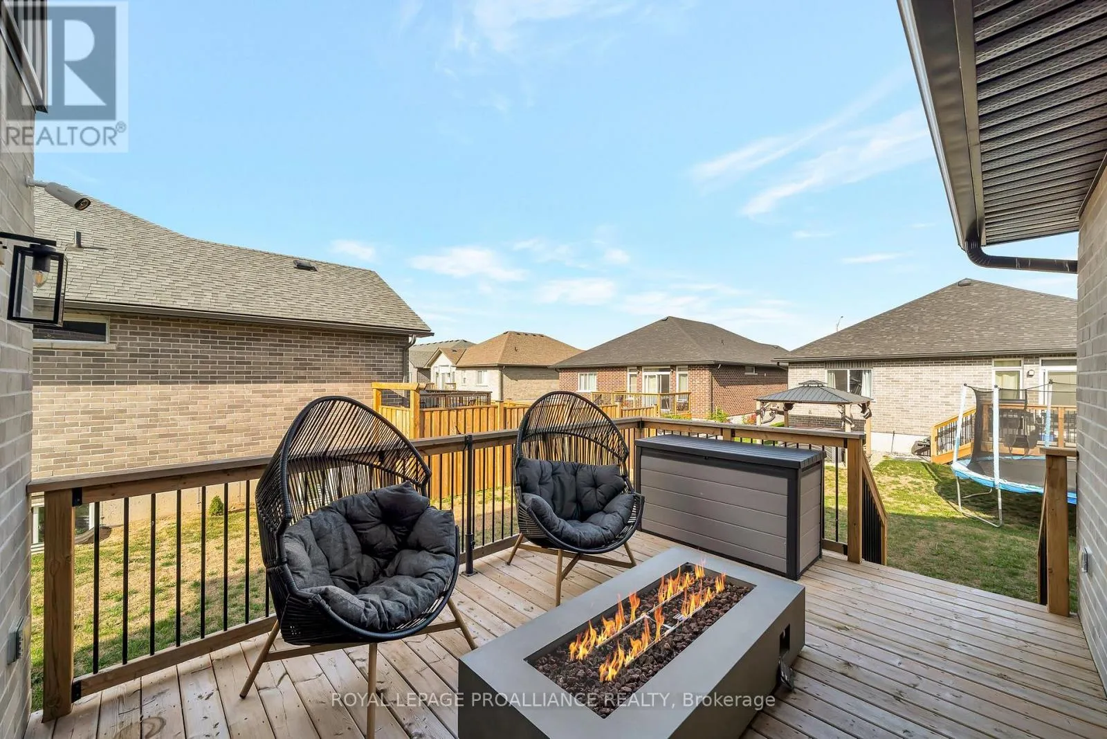 Cross Streets: Maitland & Hampton Ridge. ** Directions: Maitland Dr to Hampton Ridge, Right on Viginia, left on Raycroft. Welcome to refined living in this custom built beauty @ 18 Raycroft Drive in Belleville's Settler's Ridge. Situated four blocks from the park on an interior street resides this perfectly planned design where family function meets upscale living. Classic marble look porcelain tiled flooring invites you from the attached double garage into the large mudroom with coat closet storage & powder room or enter via the grand front foyer leading to the impressive living & entertaining area. This modified kitchen plan provides chic mini shaker style cabinetry to ceiling in timeless white with complimenting gold hardware, ideal corner pantry, veined quartz countertops + high end appliances include the elongated Kitchen Aid refrigerator, gas range & built-in microwave with convection feature. The massive detached island overlooks the spacious dining & lovely living area with pot lighting along the vaulted ceiling, fabulous natural light through the two added transom windows & three sided fireplace feature. Trending warm toned flooring throughout this sophisticated space & up the stairs where you will find three generously sized bedrooms, each with their own dedicated ensuite. The primary highlights a massive walk-in closet & impressive ensuite with double vanity sinks, make-up bar, step in glass & tiled shower + separate soaking tub. The function continues with second floor laundry here. Additional square feet in the fully finished basement providing a large pot lit recreation room with corner gas fireplace, 4th bedroom, a 5th bathroom & fabulous storage in the well maintained utility room with convenient laundry sink. Many exterior offerings include the all brick & stucco in timeless tones & perfectly tucked in private rear deck with gas bbq & fire pit line overseeing the rear yard. A thoughtfully remodelled family home offering something exciting for everyone @ 18 Raycroft Drive ~ Enjoy the video & 3D tour ~ (id:27476)