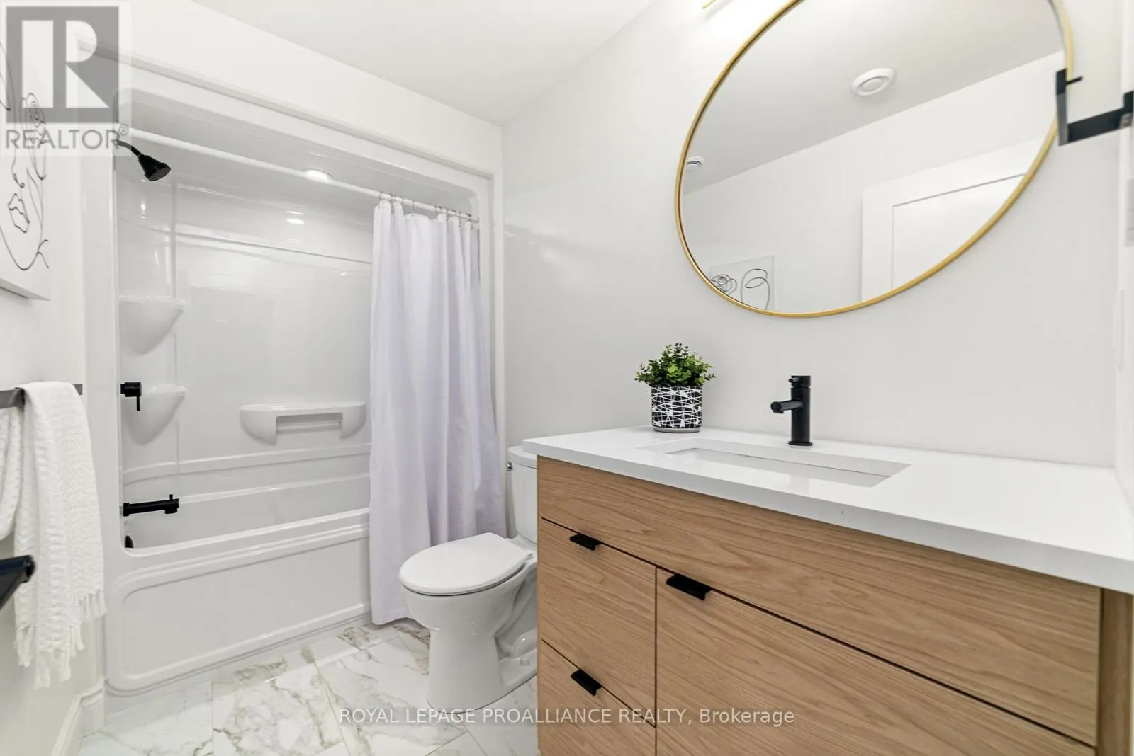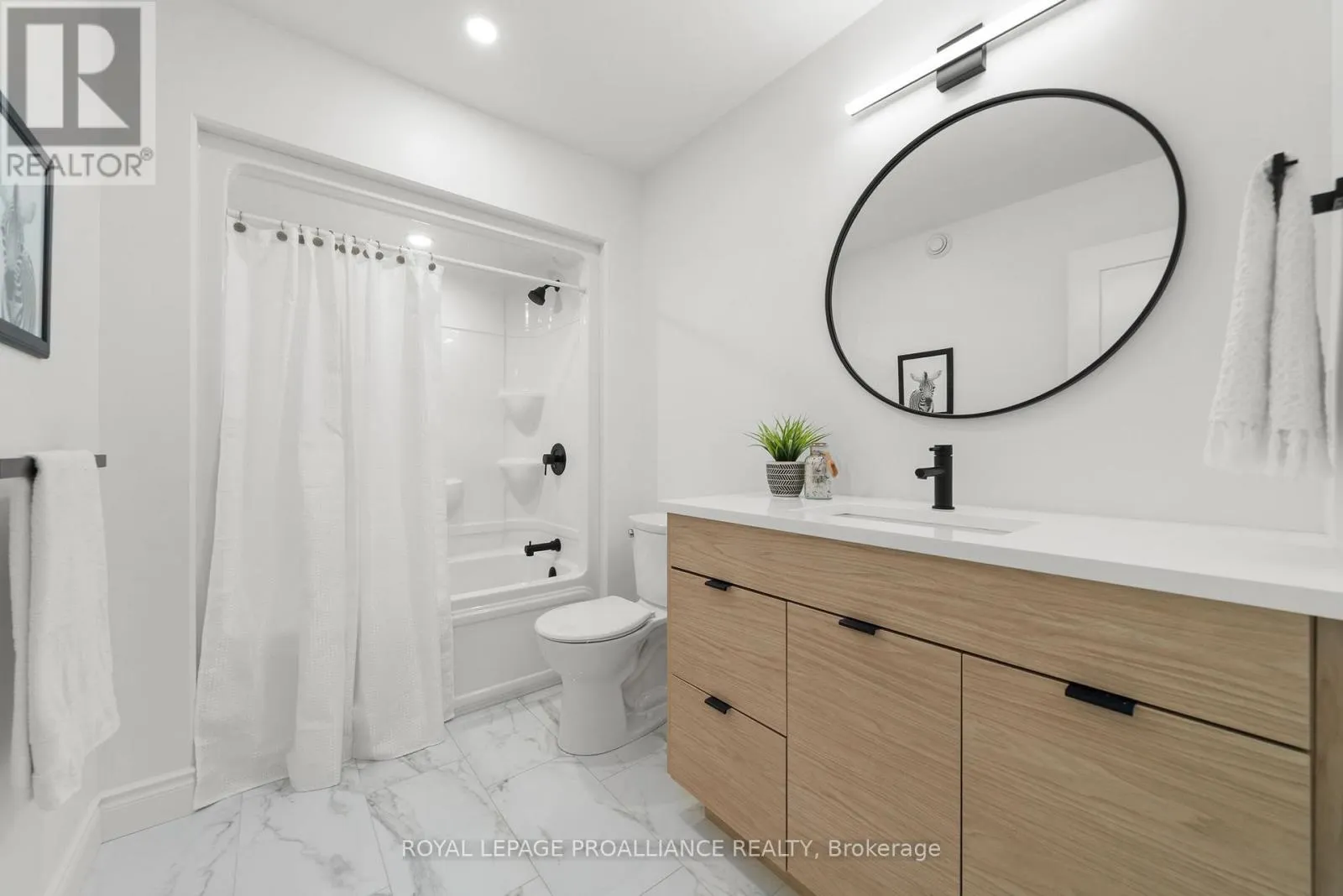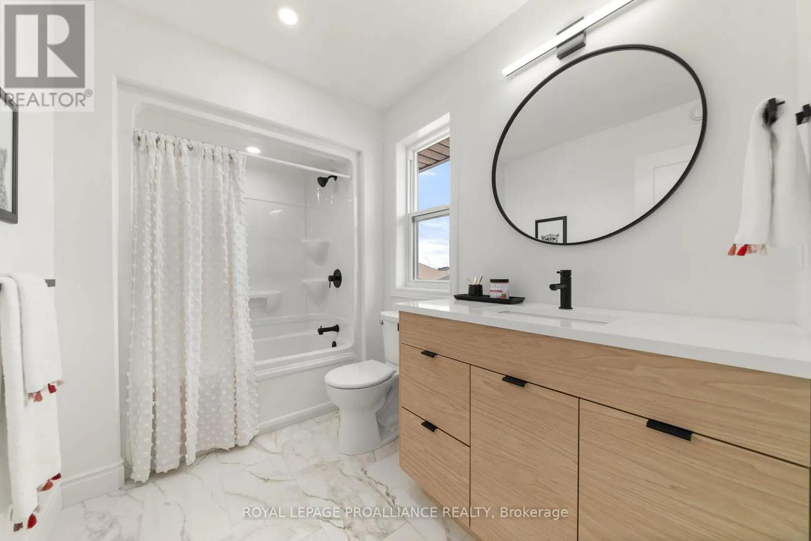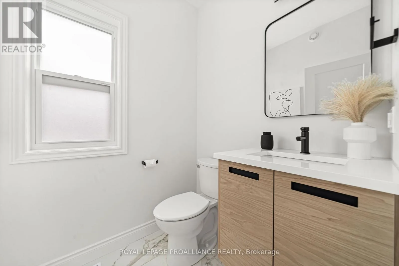Cross Streets: Maitland & Hampton Ridge. ** Directions: Maitland Dr to Hampton Ridge, Right on Viginia, left on Raycroft. Welcome to refined living in this custom built beauty @ 18 Raycroft Drive in Belleville's Settler's Ridge. Situated four blocks from the park on an interior street resides this perfectly planned design where family function meets upscale living. Classic marble look porcelain tiled flooring invites you from the attached double garage into the large mudroom with coat closet storage & powder room or enter via the grand front foyer leading to the impressive living & entertaining area. This modified kitchen plan provides chic mini shaker style cabinetry to ceiling in timeless white with complimenting gold hardware, ideal corner pantry, veined quartz countertops + high end appliances include the elongated Kitchen Aid refrigerator, gas range & built-in microwave with convection feature. The massive detached island overlooks the spacious dining & lovely living area with pot lighting along the vaulted ceiling, fabulous natural light through the two added transom windows & three sided fireplace feature. Trending warm toned flooring throughout this sophisticated space & up the stairs where you will find three generously sized bedrooms, each with their own dedicated ensuite. The primary highlights a massive walk-in closet & impressive ensuite with double vanity sinks, make-up bar, step in glass & tiled shower + separate soaking tub. The function continues with second floor laundry here. Additional square feet in the fully finished basement providing a large pot lit recreation room with corner gas fireplace, 4th bedroom, a 5th bathroom & fabulous storage in the well maintained utility room with convenient laundry sink. Many exterior offerings include the all brick & stucco in timeless tones & perfectly tucked in private rear deck with gas bbq & fire pit line overseeing the rear yard. A thoughtfully remodelled family home offering something exciting for everyone @ 18 Raycroft Drive ~ Enjoy the video & 3D tour ~ (id:27476)