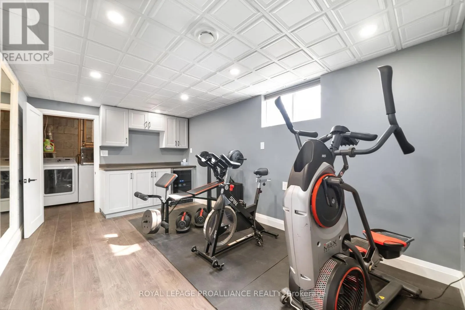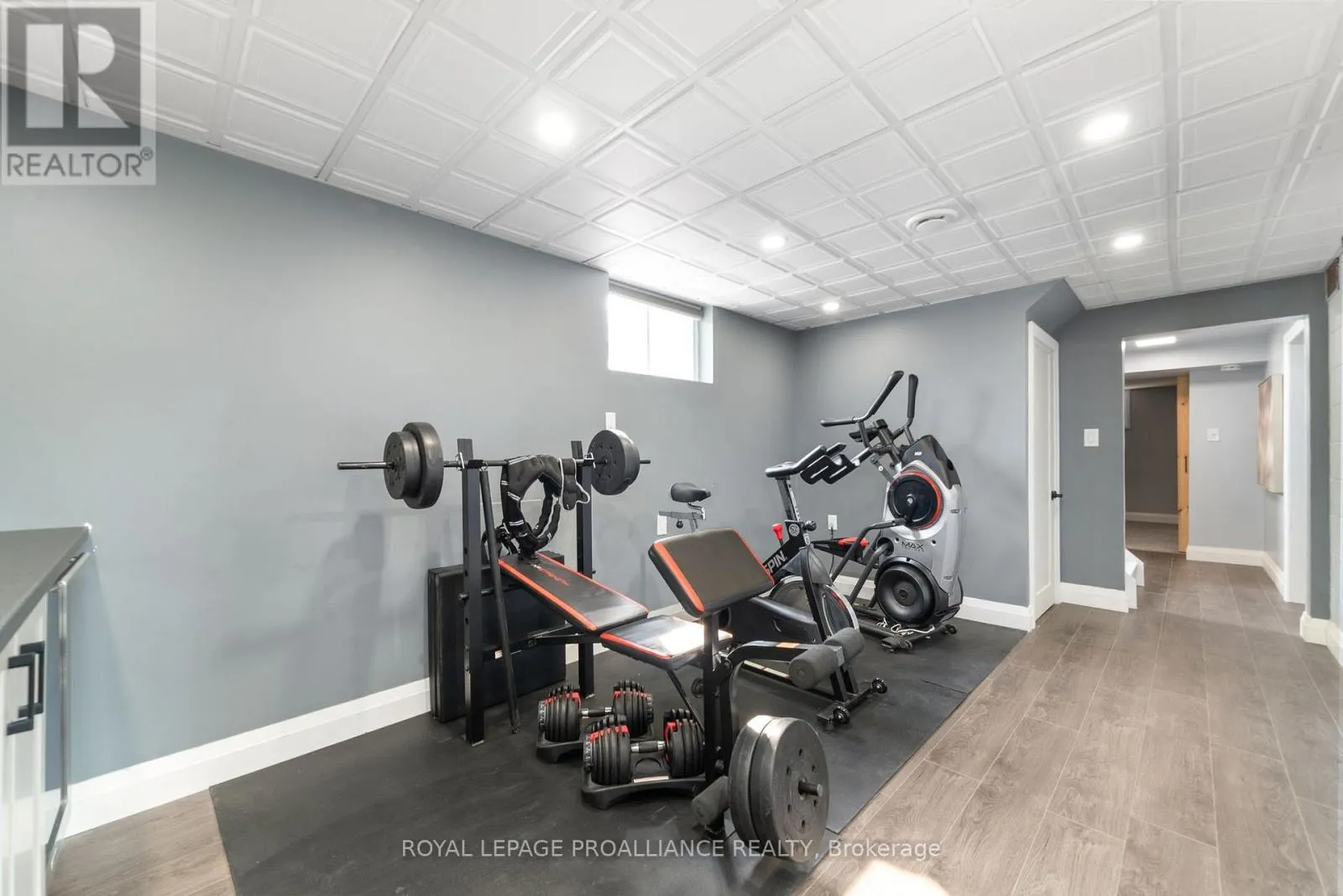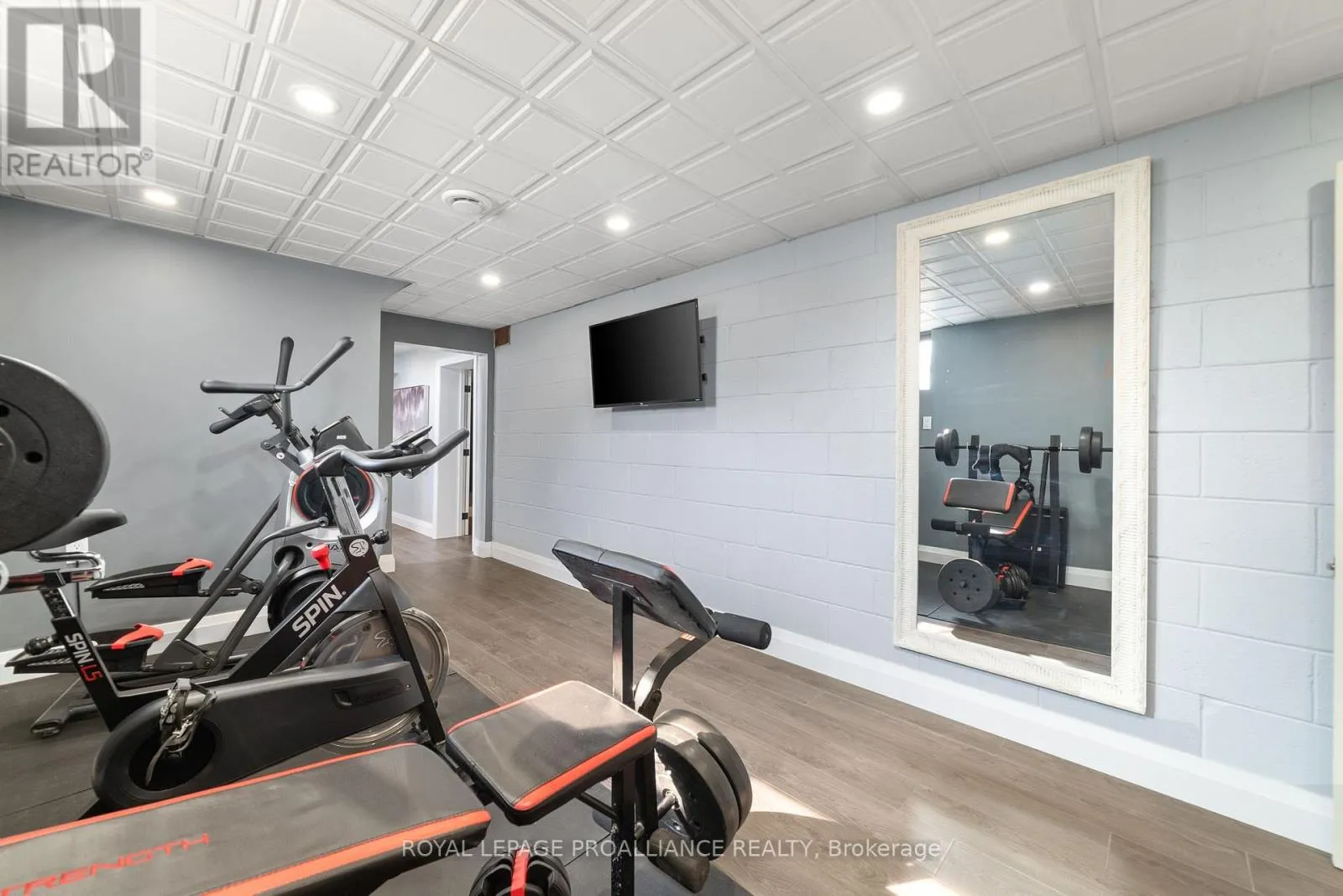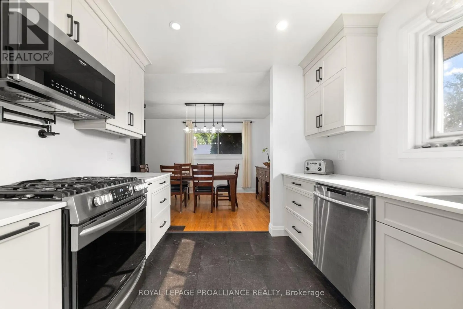 Cross Streets: Between Airport Pkwy & Hwy 2. ** Directions: Hwy 2 to Elmwood or Airport Pkwy to Elmwood. Enjoy the many perks of rural living within minutes to town amenities. Introducing 206 Elmwood Drive. Impressive curb appeal @ this all brick beauty with metal roof & massive freshly sealed drive. The established perennial garden lined path to the spacious front deck invites you into the entry with convenient coat closet storage to the original hardwood flooring throughout. Bright bay window in the living & fireplace with trending surround feature is open to the dining space, large enough to accommodate a harvest table. Stunning custom kitchen with neutral cabinetry to ceiling, under valance lighting & durable dekton countertops. Bonus, the stainless steel appliances are included. Coordinating lighting from the dining combined with pot lights & functional pantry closet. Three bedrooms on this main level nicely accommodates growing family living + a full bath with updated vanity. Additional living space in the fully finished basement providing a comfortable rec room with newer carpet & included built in TV media centre for your entertaining enjoyment. Laminate flooring through the remaining space offering two great flex rooms, you decide the use. One currently functioning as an office & the other with the window as a gym with cabinetry storage & bar fridge. Laundry, 2 piece bath & large utility room with workshop option here as well. Step out the back door to your interlocking patio with gas BBQ connection, raised vegetable gardens, in-ground dog fencing & new septic bed open to natural nature beyond. The 323 sq ft garage provides even more functional storage at this country charmer, surrounded by mature red maple, pines, cedars & lilac trees. You're invited to view this wonderfully updated home on desirable Elmwood Drive. (id:27476)