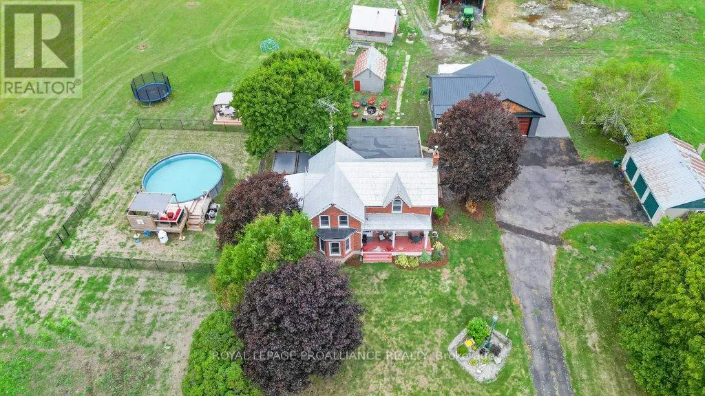 Cross Streets: Highway 37. ** Directions: Highway 37 to Blessington Road. Welcome to this beautifully renovated farmhouse set on 19 acres of countryside charm. This 4 bedroom, 2 bath home offers modern updates while preserving its character. The main level features a farmhouse kitchen with granite countertops, pantry & more and has engineered hardwood floors flowing into the dining and living room where a wood burning fireplace creates a warm center piece. Convenient main floor laundry includes a 3PC bath. Great size foyer as you enter the home with a large main level bedroom. Upstairs you'll find 3 spacious bedrooms with pine flooring and a full bath with porcelain tile. The property is ideal for hobby farming or country living, boasting extensive outbuildings, including a new 30' x 40' garage, original 3 car garage (32' x 22'), drive shed (32' x 80'), barn, woodshed, garden shed, bunkie & outhouse (2024), deck, 3 season sun room, 27' salt water pool with deck, gazebo and raised garden beds. A rare opportunity to enjoy modern comfort, ample storage, and endless outdoor space - all just minutes from Belleville (id:27476)