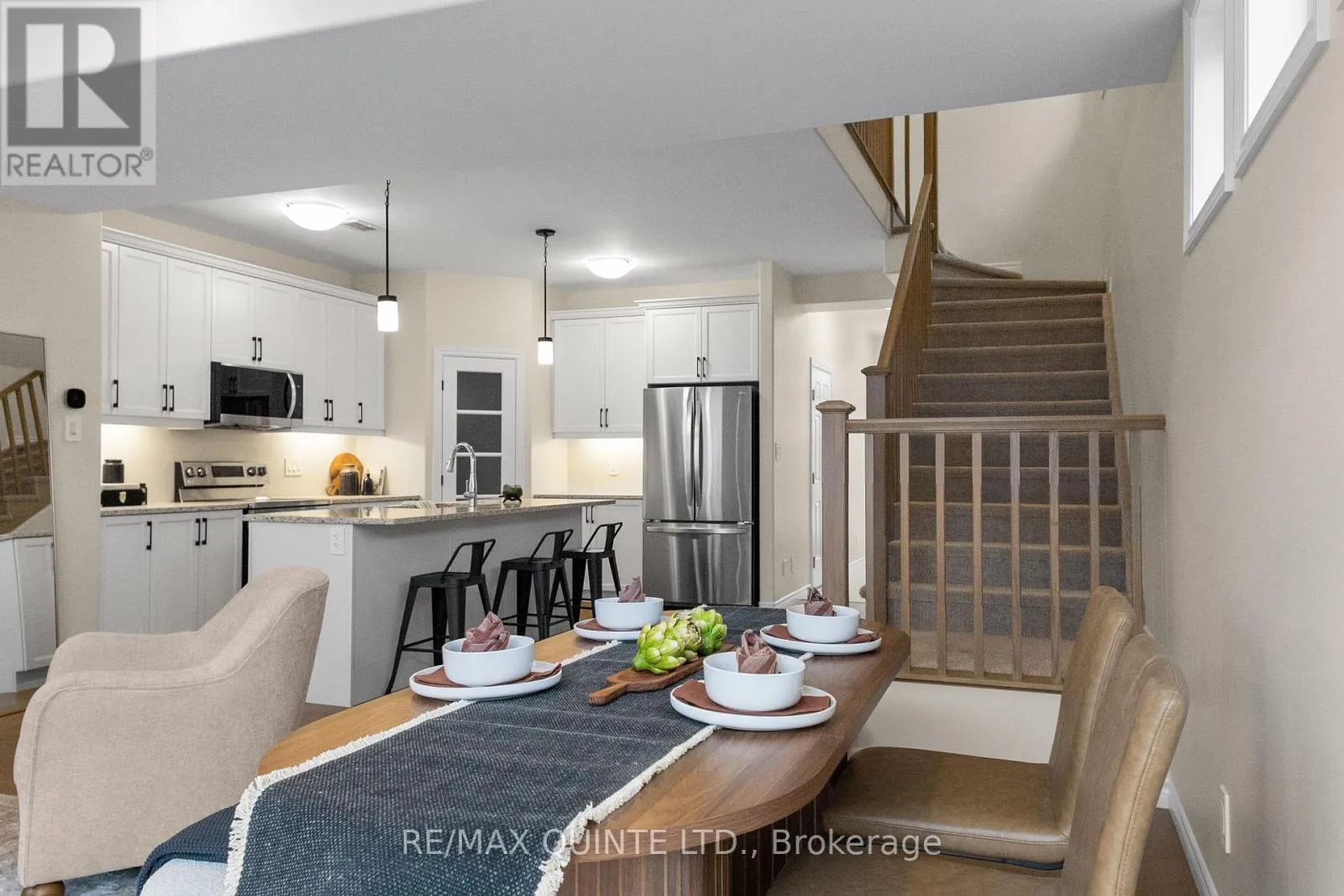 Cross Streets: Farnham Rd and Riverstone Way. ** Directions: Farnham Road to Riverstone Way to Miramichi St. This 2-year-old 1,716 sq ft two-storey townhome with an attached single-car garage offers a perfect blend of modern design, comfort, and functionality. The spacious kitchen features an oversized island, quartz countertops, stainless steel appliances, and a corner pantry, while the open-concept main floor includes a bright living and dining area with pot lights, a powder room with quartz finishes, and access to a 10 x 10 deck. The foyer includes a fibreglass entry door and tiled flooring, with engineered hardwood extending through the main living areas. Upstairs, you'll find three generous bedrooms, a convenient laundry closet, and two well-appointed bathrooms with quartz countertops. The primary suite features a walk-in closet and ensuite with a double vanity. Built by Geertsma Homes, this property reflects quality craftsmanship, energy-efficient systems, and thoughtful smart-home features. Quick closing available. (id:27476)