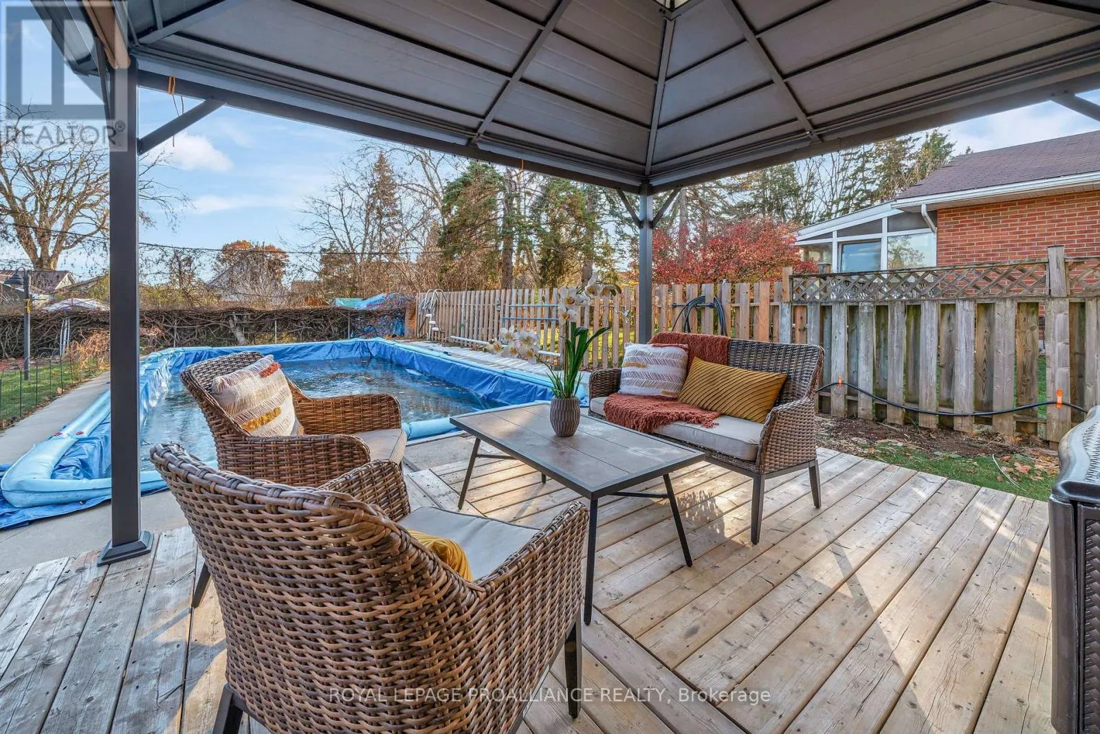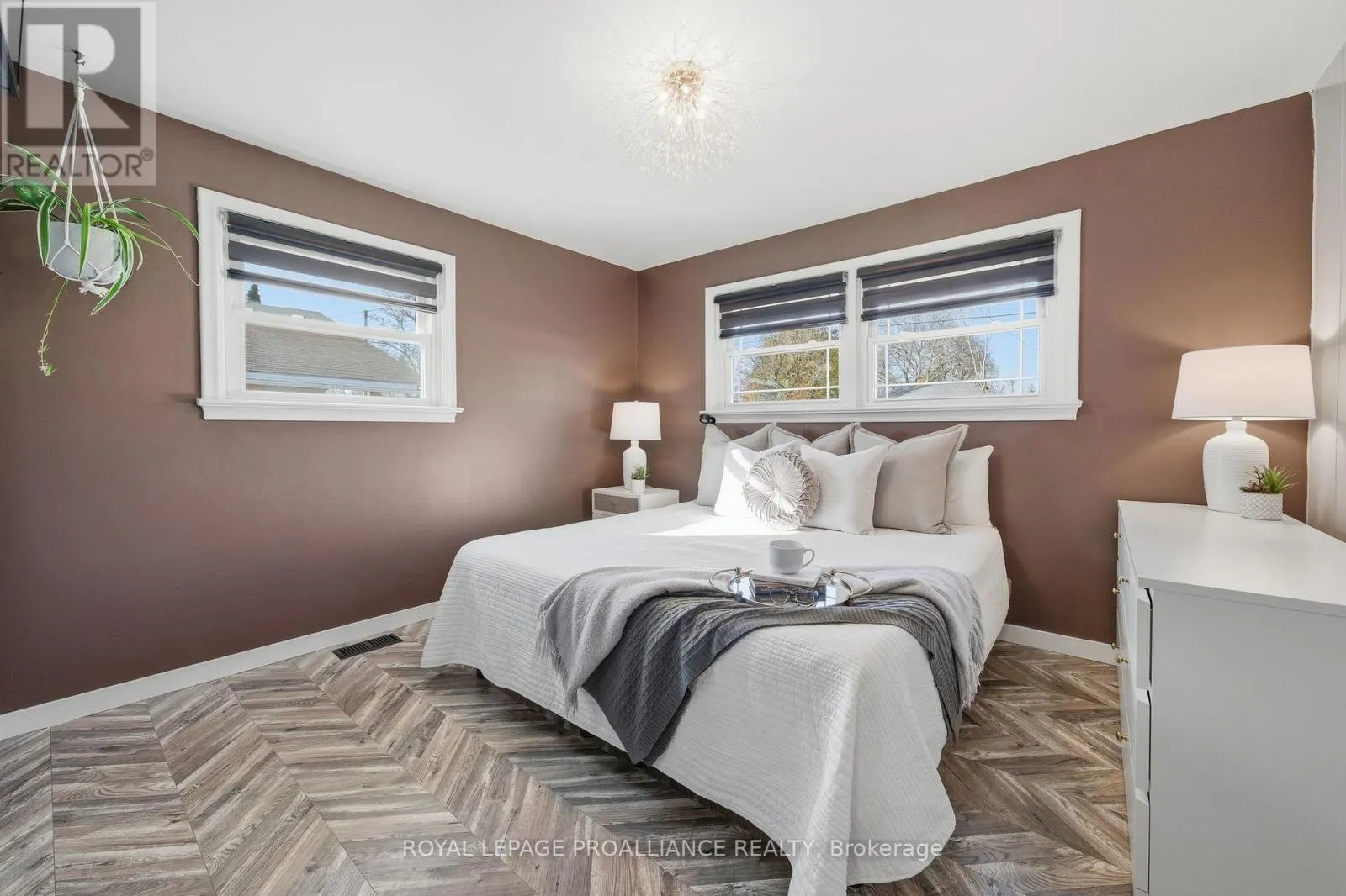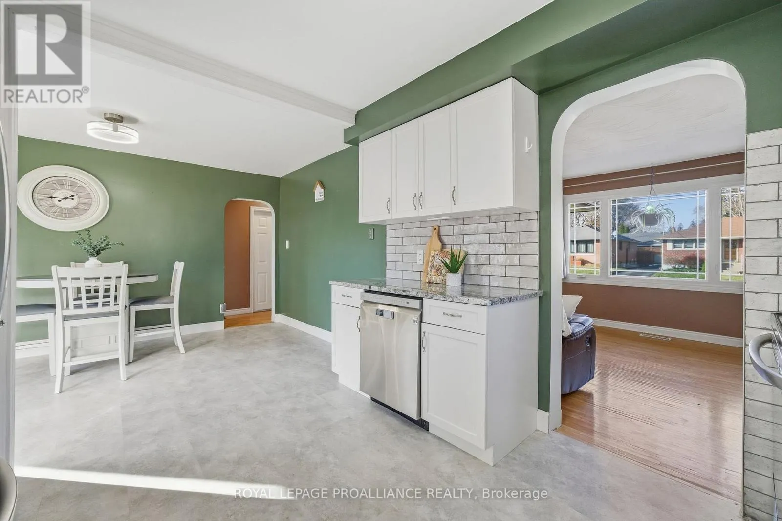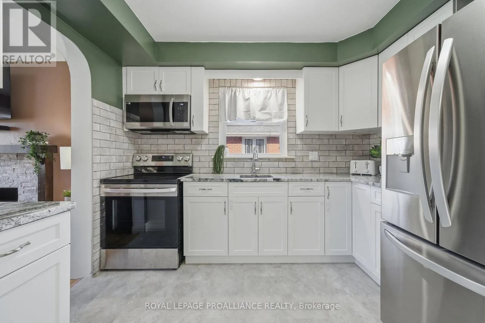 Cross Streets: Bridge St E and Rosewood. ** Directions: Bridge St East, to Herchimer, West on Rosewood to Crestview. Nestled on one of Belleville's most desirable East End streets, this fully brick updated bungalow with 2+1 bedroom, 2-bathroom home effortlessly blends classic charm with modern upgrades. A new bright, inviting eat-in kitchen features lots of cabinetry, granite countertops, a stylish backsplash, updated vinyl flooring, and glass doors that open directly to a private, fully fenced backyard-perfect for summer entertaining. The main living room is bathed in natural light from a large picture window and original hardwood flooring creating a warm and welcoming space to relax and watch your favourite show. Two generously sized bedrooms and a completely updated 4-piece bathroom complete the main level. The fully finished lower level has been recently renovated to accommodate a versatile in-law suite with a separate entrance, one bedroom, a 3-piece bathroom, and kitchenette. This space can also be opened up (just a temporary wall) to an open concept recreation room with a cozy gas fireplace for private enjoyment. The new laundry laundry space (with new washer and dryer), and an additional storage room is perfect for multigenerational living or supplement your mortgage with the tenant who currently lives in part of the basement (new apartment). Step outside to your backyard oasis, featuring an 18' x 36' in-ground pool, with concrete decking, expansive green space for children, pets, or gardening, and a private gazebo with a comfortable seating area for relaxing or entertaining. Located in a quiet, family-friendly neighbourhood, on a dead-end street close to great schools, parks, and everyday amenities. A well-built home that combines comfort, convenience, and lifestyle.. And so many recent updates! (New Kitchen, Bathroom, Basement, Metal Roof, In-ground Pool & newly Paved Driveway, just to mention a few) Don't miss the opportunity to own this exceptional property on an over-sized lot in Belleville's sought after east-end. (id:27476)