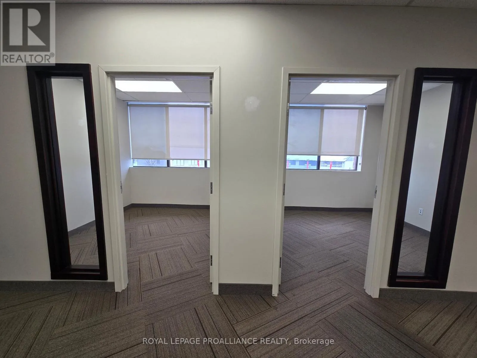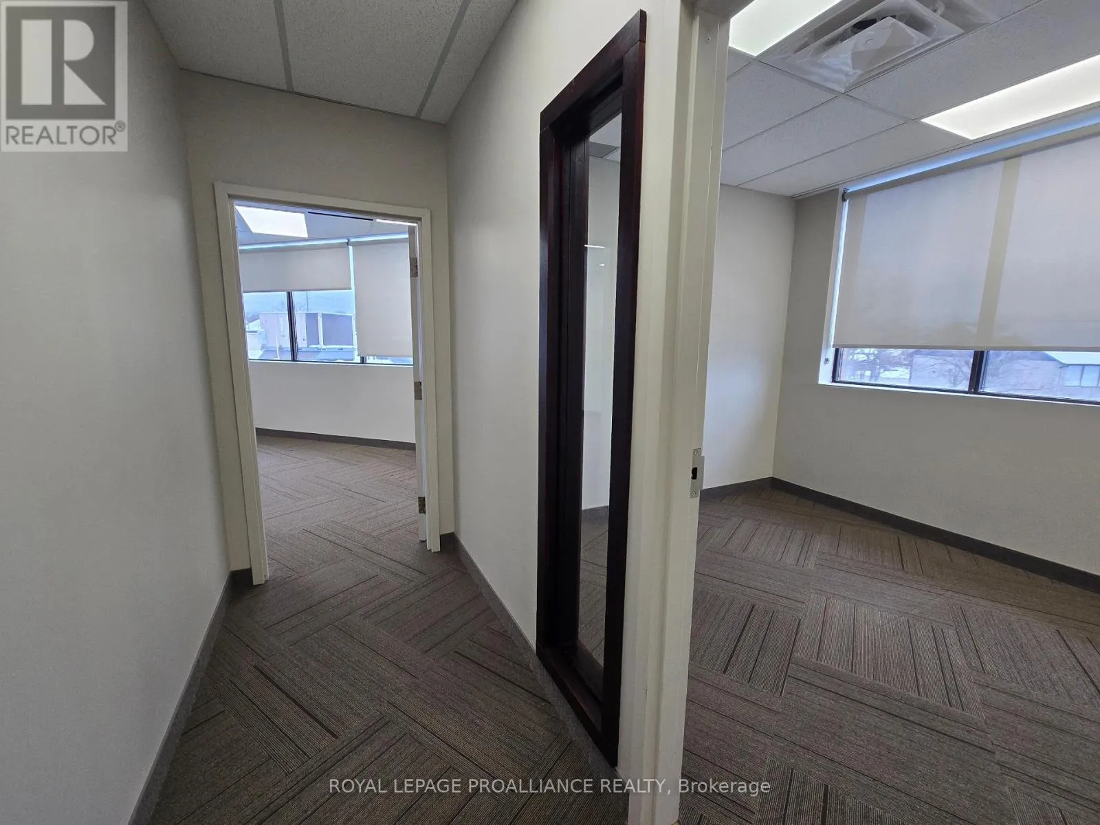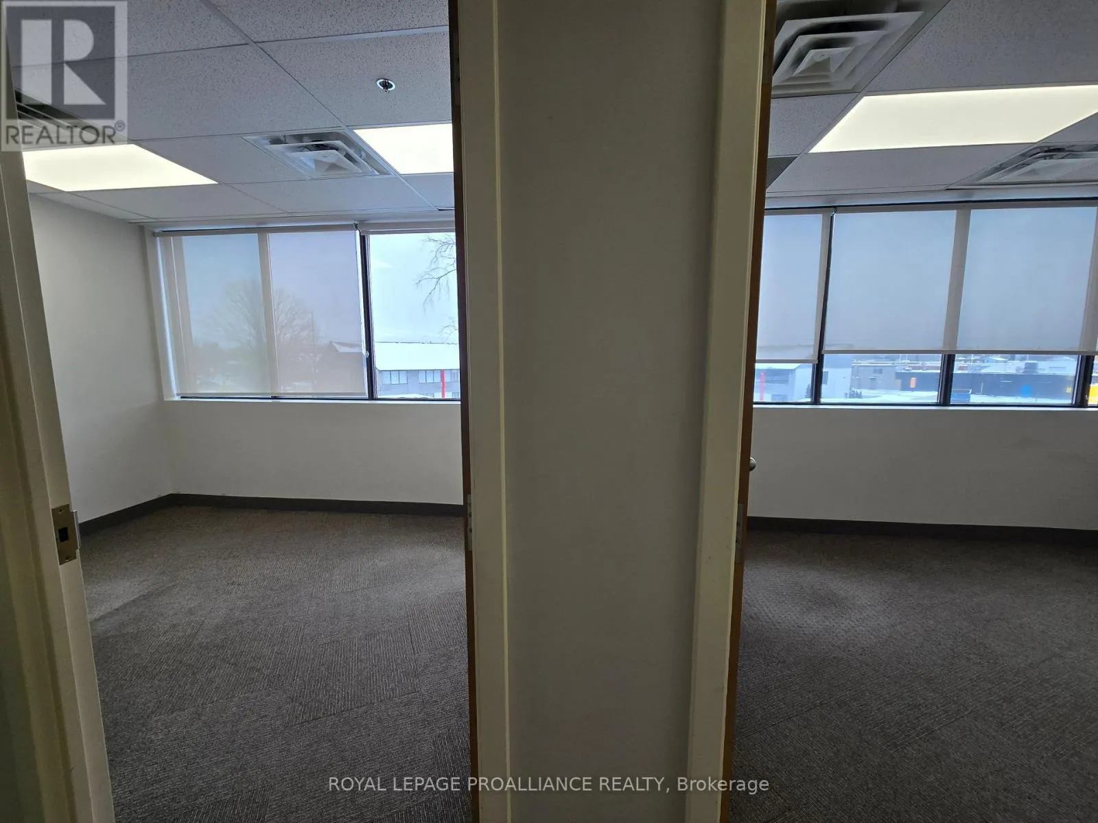 Bell Blvd This 3,400 sq. ft. professional office suite is located in Belleville's prestigious Bell Tower Shopping Centre, just seconds from Highway 401 at the city's busiest intersection. Situated on the second floor, the space features three separate entrances, offering flexible options for subdividing into smaller units. The suite includes two kitchenettes, dedicated tenant washrooms on the same floor, and convenient elevator access. Gross rent includes utilities and common area charges, and the property provides ample on-site parking. The building offers keyless entry and an automated locking system after hours for added security. Digital signage is available through a third-party contract. (id:27476)
