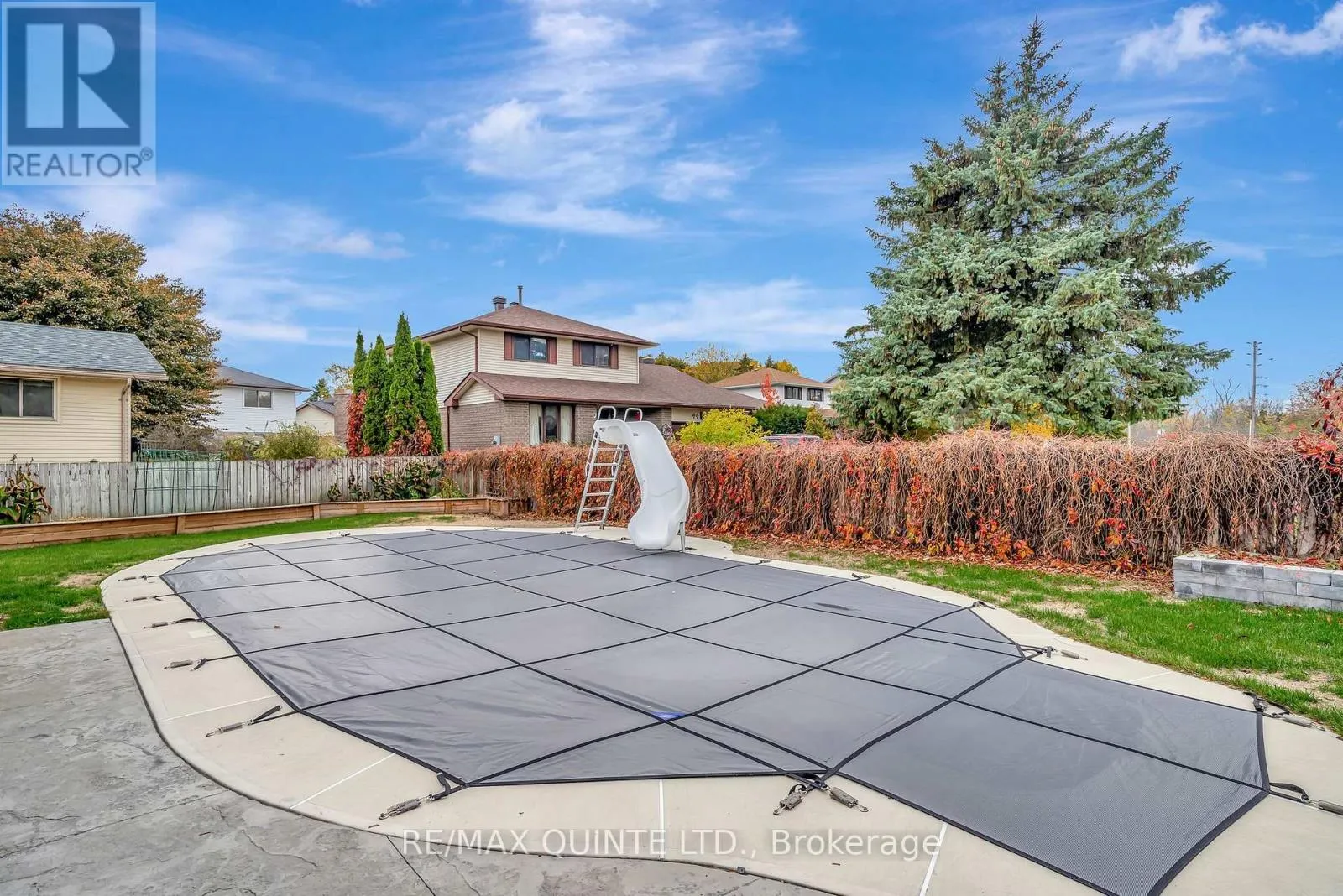 Cross Streets: Tracey Park Dr & Cascade. ** Directions: Sidney St , West on College, North on Alnet. Set on a premium corner lot in Belleville's beautiful West End, this 2023 Harmony Homes build offers the best of both worlds - the peacefulness of a mature, tree-lined neighborhood paired with the luxury of a brand-new home. Step inside to a bright, open layout designed for connection and comfort. The stunning kitchen flows seamlessly into the dining and living areas, creating the perfect gathering space for family and friends. The main floor features two spacious bedrooms, including a serene primary suite with a walk-in closet and spa-like ensuite, plus the convenience of main-floor laundry. Downstairs, discover incredible versatility where no detail was spared. With 8ft ceilings offering floods of natural light; this space offers two additional bedrooms, a stylish recreation room complete with a built-in bar, along with a separate kitchenette with walk-up access to the backyard; making it ideal for an in-law suite or guest retreat. Outside is your private paradise. The fully fenced backyard is an entertainer's dream, featuring an in-ground heated pool with slide, an enclosed hot tub for year-round relaxation, and a cabana hut perfect for BBQs, game nights, or lazy summer afternoons. Experience the ultimate blend of comfort, community, and modern luxury - welcome home to 56 Alnet Drive. (id:27476)
