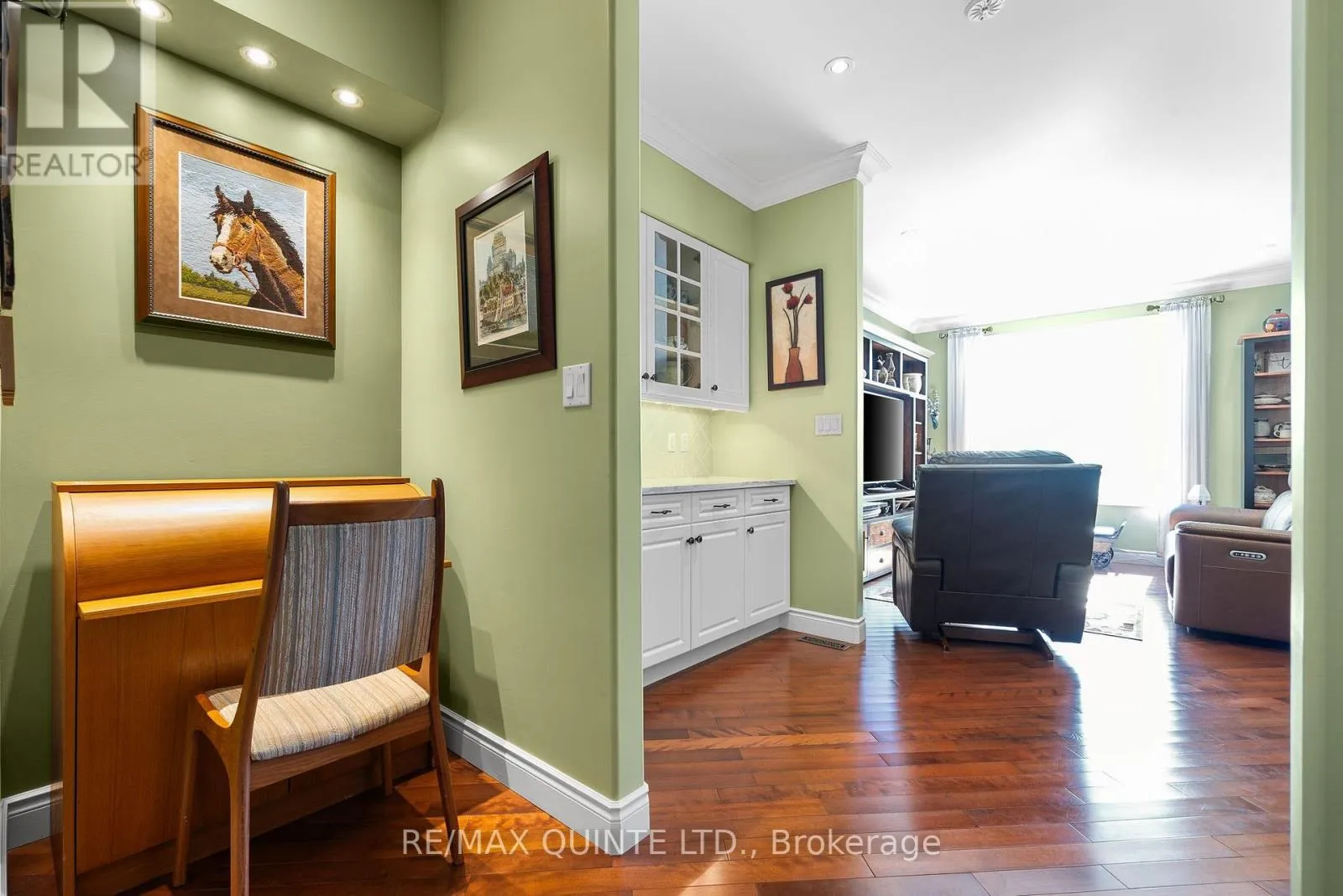 Cross Streets: Dundas St W / Avonlough Rd / Champagne Dr/Gracefield Ln. ** Directions: West on W Dundas St, South on Avonlough, South on Champagne Dr, East on Gracefield to 24. Welcome to 24 Gracefield Lane, where refined living meets the tranquility of waterfront life. Nestled in the highly sought-after community of St. James By The Bay, this stone townhome offers more than just a place to live, it's a lifestyle. Imagine waking up each morning in a serene enclave designed for adults who value comfort, connection, and ease. Step inside to over 1,800 sq ft above grade, thoughtfully designed with soaring ceilings, rich hardwood and ceramic floors, and an open-concept main level that seamlessly blends dining, entertaining, and everyday living. The kitchen has been refreshed with quartz countertops and stainless-steel appliances, while the living room walks out to a private deck overlooking lush green space, perfect for enjoying coffee in the morning sun or evening wine under the awning. Upstairs, retreat to a spacious primary suite complete with walk-in closet, spa-like ensuite, and a flexible loft space that could double as a cozy den, library, or TV lounge. The finished lower level extends your living area with a bright recreation room, guest bedroom, and full bath ideal for hosting friends and family. Beyond your door, discover manicured gardens, water features, and inviting common spaces where neighbours gather and friendships thrive. This adult lifestyle community is built around ease, offering waterfront access on the Bay of Quinte and a unique Right-To-Occupy ownership model that ensures a worry-free living experience. 24 Gracefield Lane isn't just a home its an invitation to slow down, enjoy, and truly live by the bay. (id:27476)