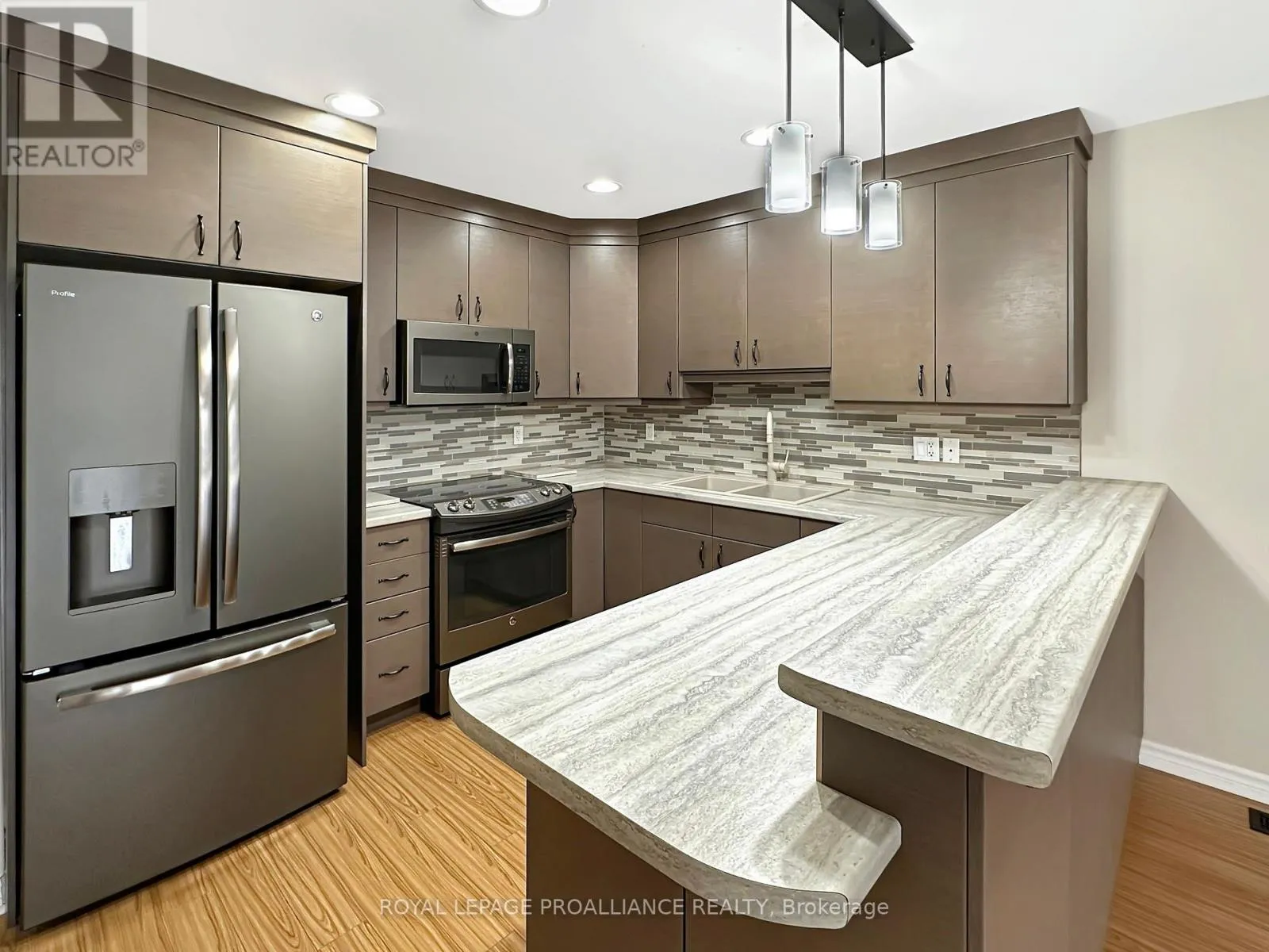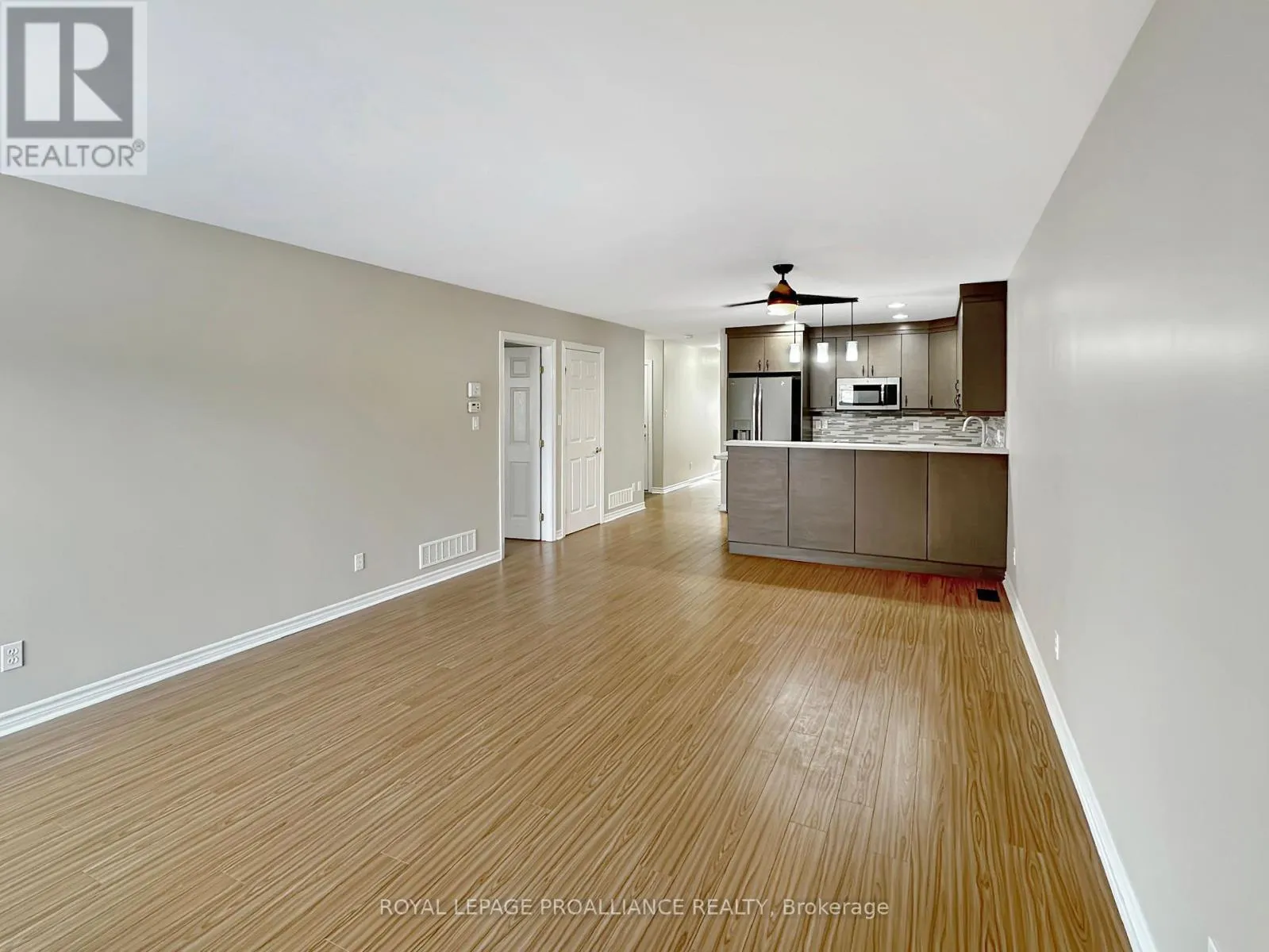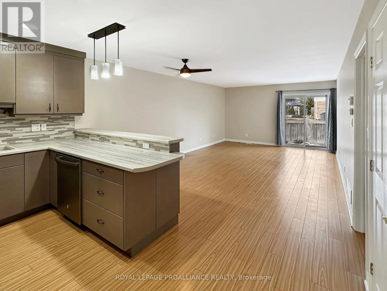 College St W to Sarah Crt Welcome to this charming townhouse bungalow offering low-maintenance living in a comfortable and well-designed layout. With an attached single-car garage and thoughtful updates throughout, this home is ideal for anyone seeking convenience and modern comfort. Step inside to a bright front bedroom, perfect for a guest room, home office, or cozy retreat. The main level continues with an open-concept kitchen, living, and dining area, ideal for both everyday living and entertaining. The updated kitchen features modern appliances and ample workspace, while the living room offers direct access to the rear yard for easy outdoor enjoyment. The spacious primary bedroom includes a walk-in closet and a cheater ensuite door to the well-appointed 4-piece main bathroom. Main floor laundry adds practicality and ease to daily routines. The fully finished lower level provides exceptional versatility with a generous recreation room, a second full bathroom, and a large third bedroom. An additional office/flex room offers the potential for a fourth bedroom or hobby space. A sizeable utility room and convenient under-stair storage ensure plenty of room for organization. (id:27476)