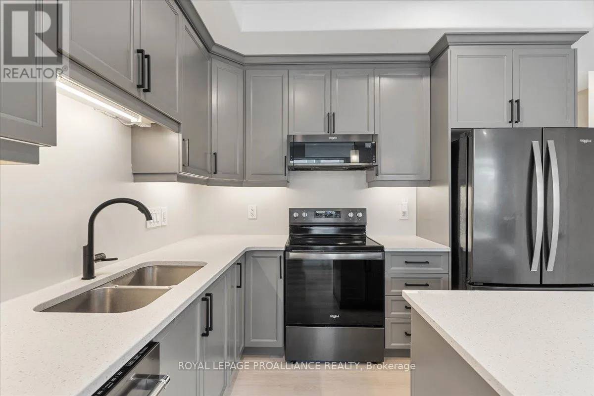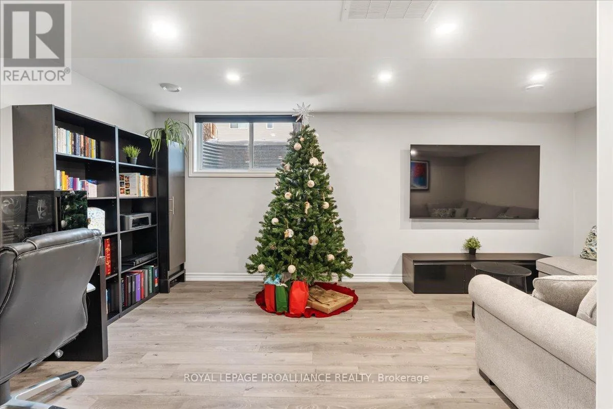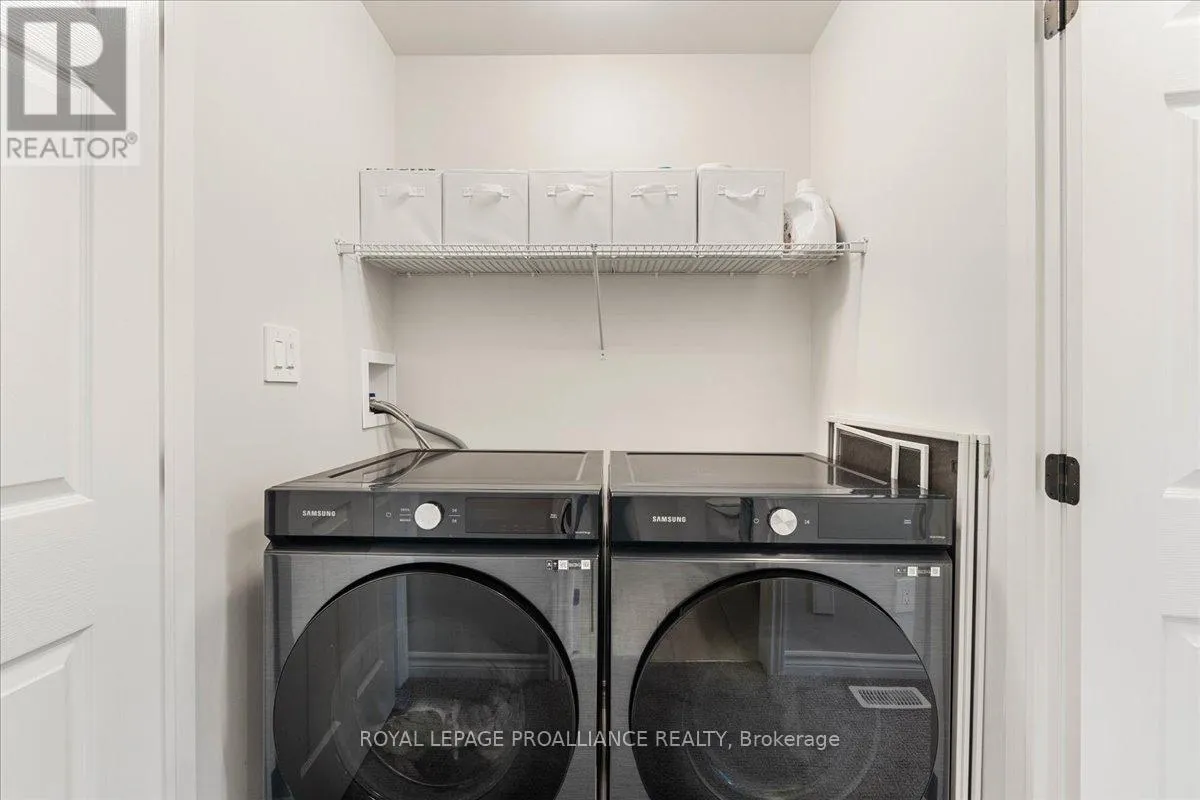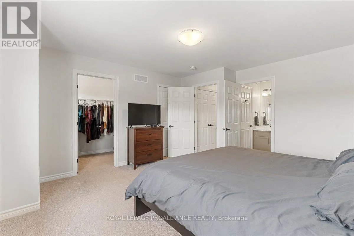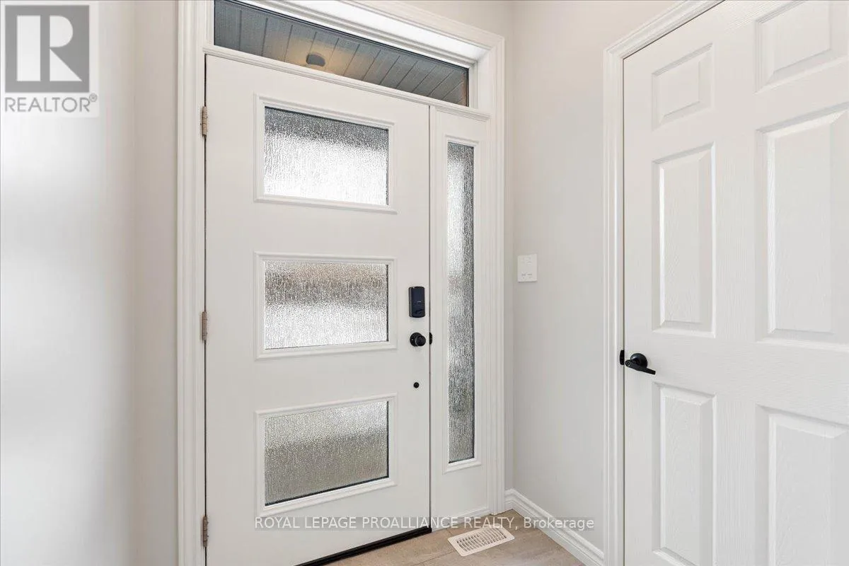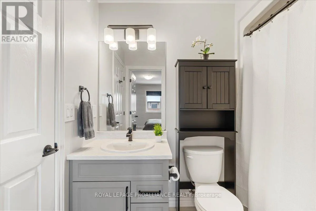 Riverstone Way & Miramichi Street Welcome to this quality built 2-storey townhouse, situated in Riverstone subdivision and built in 2023 by Geertsma Homes. With its attractive brick and vinyl exterior, attached single garage, and paved driveway, this home offers great curb appeal in a warm, family-friendly neighbourhood featuring a park close by, scenic walking trails, and close proximity to many amenities with quick access to the 401. Step inside to a bright and welcoming main floor, highlighted by 9-ft ceilings and large windows that fill the space with natural light. The open-concept kitchen, dining area, and living room create an ideal setting for everyday living and entertaining. Patio doors lead out to the deck and backyard, perfect for relaxing outdoors. A handy 2-piece powder room and inside entry to the garage add to the convenience. Upstairs, the primary bedroom offers a comfortable retreat with plenty of closet space as well as ensuite privileges to a shared 4-piece bathroom. Two additional bedrooms provide flexible space for family, guests, or a home office. The laundry room is conveniently located on the upper level, making daily routines that much easier. The lower level extends the living space with a cozy rec room, rough-in for a future bathroom, and additional storage options. A wonderful opportunity to settle into a thoughtfully designed home in a great neighbourhood. Perfect for those seeking comfort, convenience, and quality craftsmanship. (id:27476)