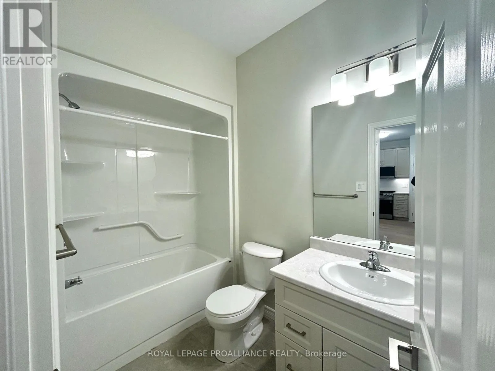 Cross Streets: Millennium PKW & Cloverleaf Dr. ** Directions: Sidney Street North to Cloverleaf. Welcome to Northgate Condominiums, a cozy community of townhome condominium units conveniently located just North of the 401 in Belleville, minutes from the Quinte Mall. This beautiful brand new bungalow townhome is now available. Featuring two bedrooms, two bathrooms and an attached one car garage with inside entry. The main floor is completed with 9ft ceilings and includes a well appointed kitchen with quartz countertops and corner pantry. The great room, located just off the kitchen, looks out to the 12' x 12' pressure treated wood deck. The bright primary bedroom includes a walk in closet as well as a 3-piece en-suite bathroom. The main floor is completed with an additional bedroom, main bathroom and a convenient laundry room. This home also includes a full unspoiled basement with basement bathroom rough in. (id:27476)