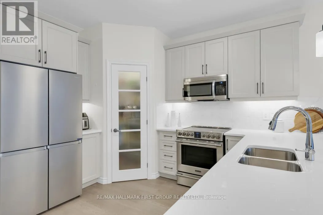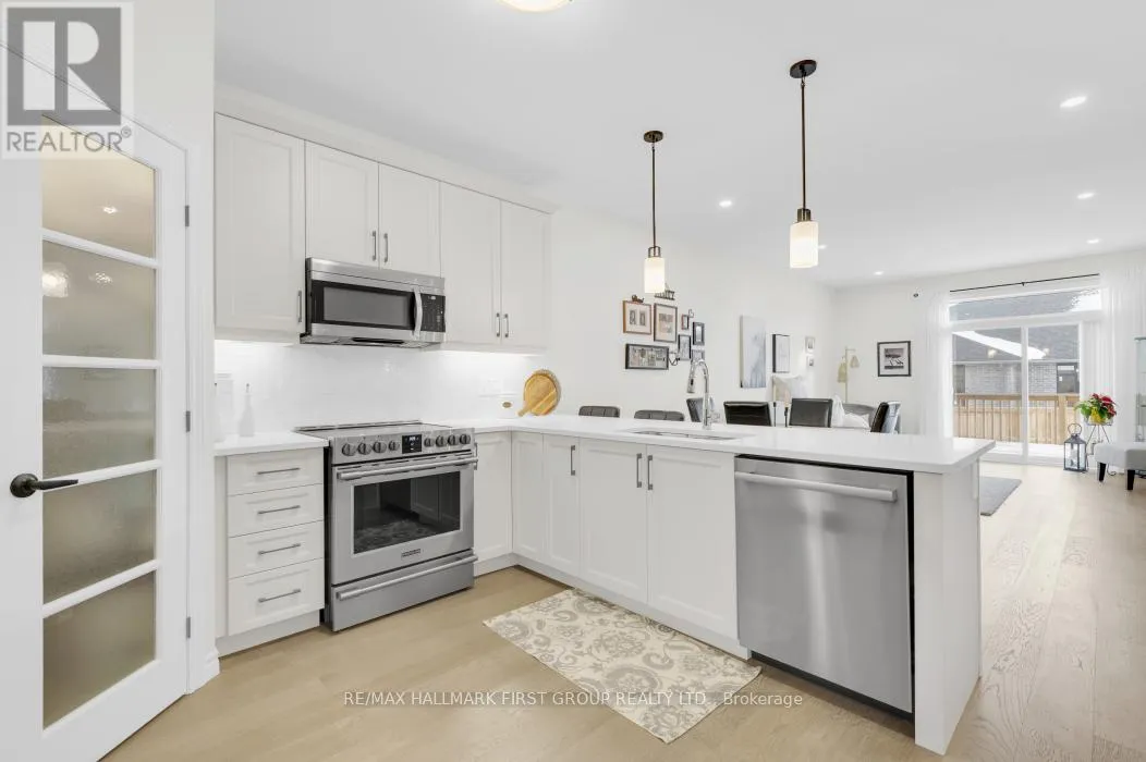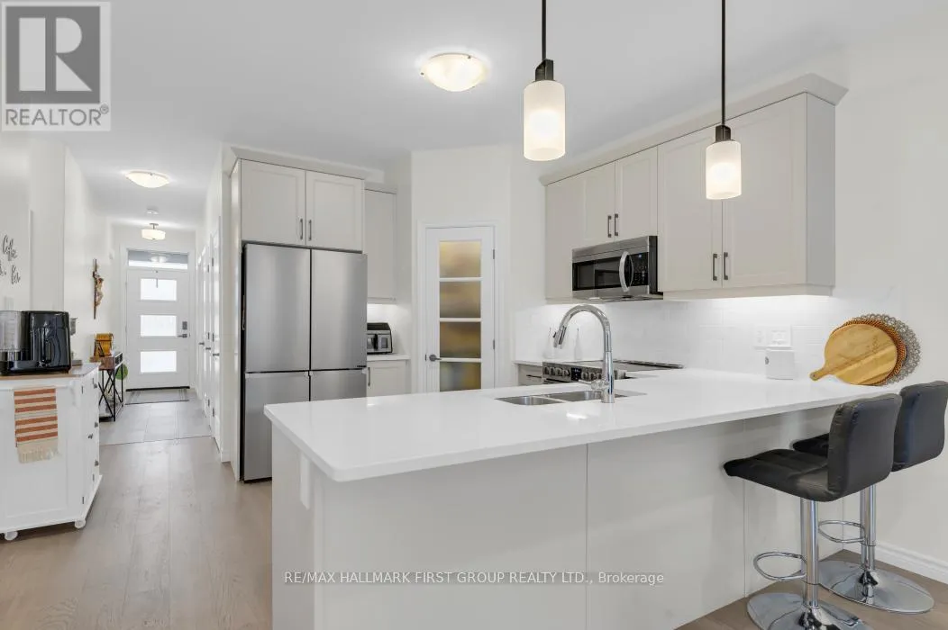 Farnham Rd/Athabaska Drive IMMACULATE MOVE IN READY Custom Built Townhouse in 2024! Modern Design with Stone & Stucco front, step inside from covered porch, lovely 9 ft ceilings throughout main floor. Bright and spacious open concept Kitchen, Dining and Living Room Area with sliding glass walkout to deck and access to back yard. Lovely engineered hardwood flooring. Stunning kitchen with quartz countertops, ample cupboards, pantry, peninsula seating and newer stainless steel appliances included. 1,181 sq ft main floor living with plenty of room for family or guests. 2 Bedrooms and 2 Baths, including a spacious primary suite featuring a walk in closet and 3 Pc Ensuite Bath. Convenient main floor laundry room. One car garage with inside entry. Full lower level, partial finished area with office/den featuring nice built in shelving. Lots of potential for extra bedroom and rec room area, plus rough in for 3rd bathroom. Endless possibilities! Efficient gas heating and central air. Very economical to heat. Nicely landscaped with paved driveway. This well maintained townhome shows to perfection. Excellent location 5 mins to Belleville amenities, shopping and 401. This is a -Must See! (id:27476)