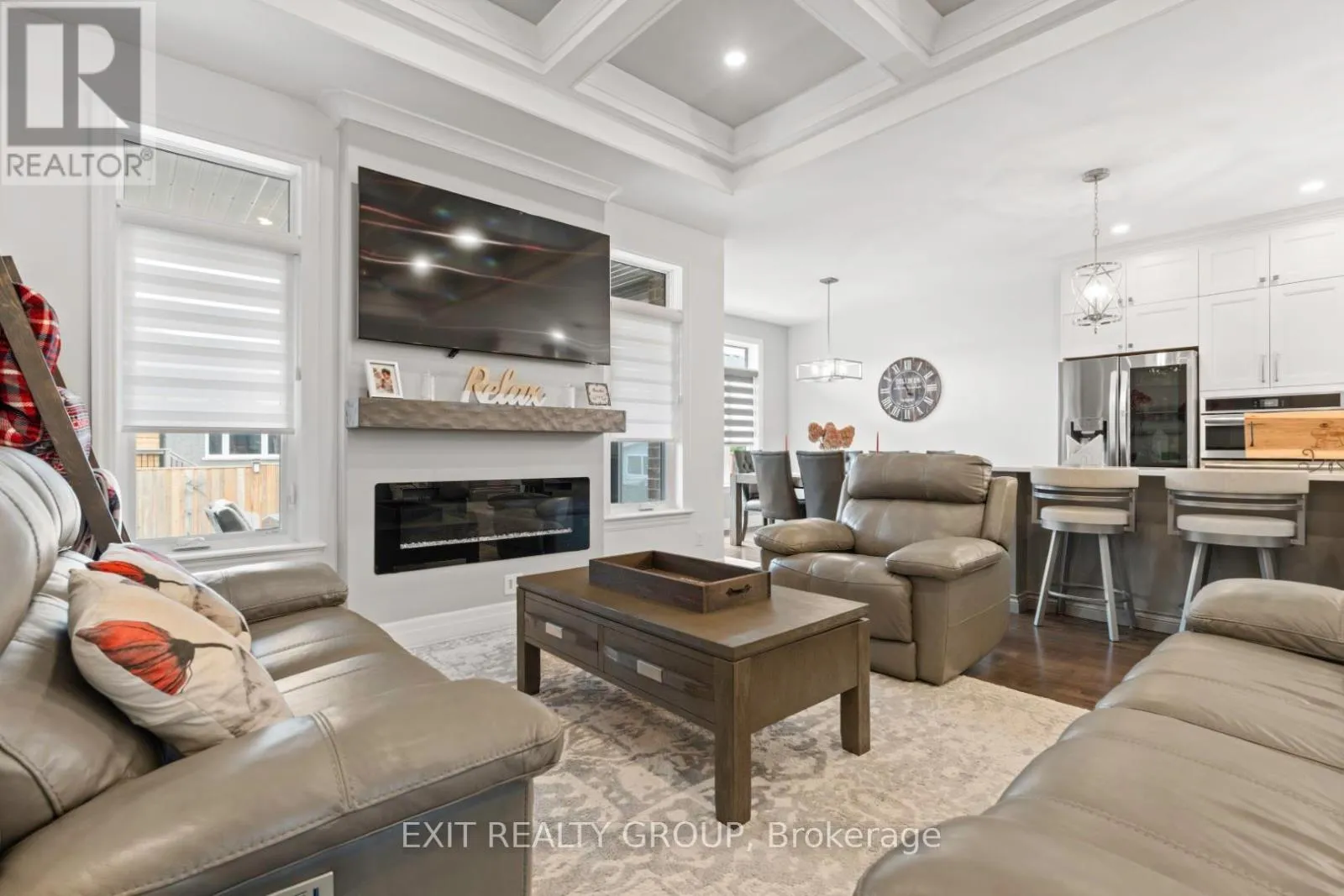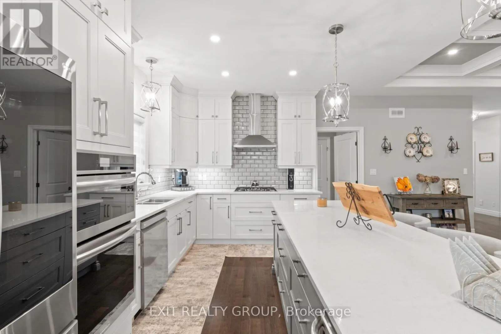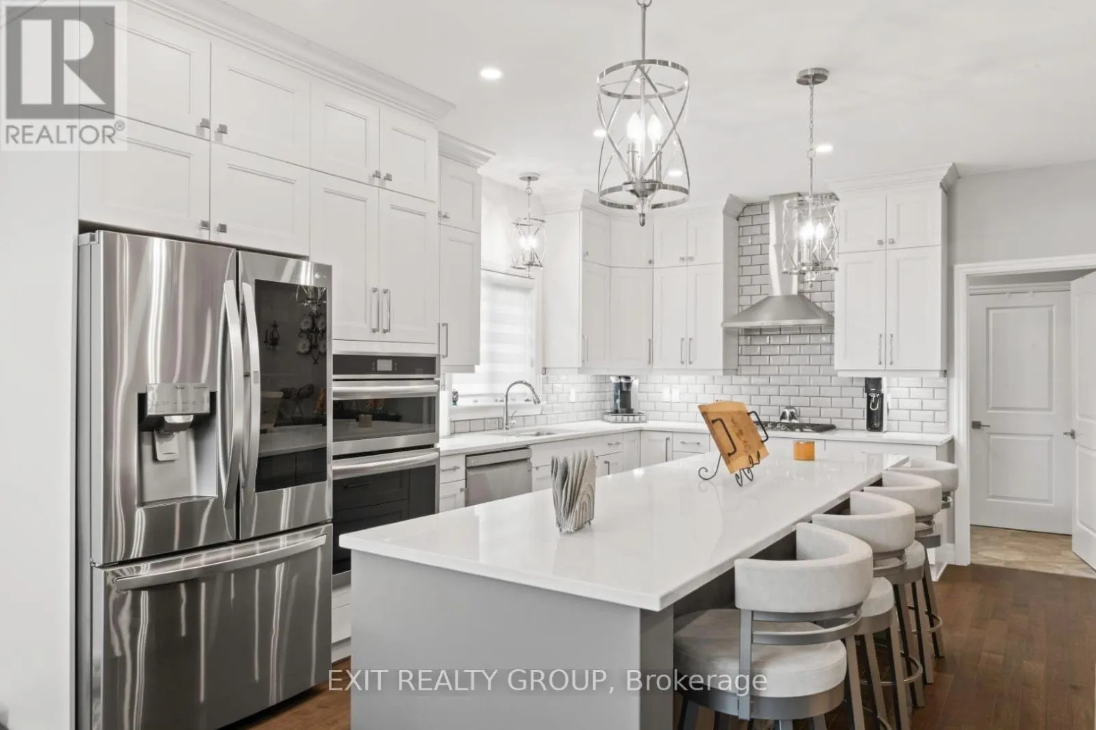 Cross Streets: Kipling Dr or Wims Way & Essex Dr. ** Directions: Farnham Rd to Kipling Dr to Essex Dr. Immaculate Staikos built three-year-old brick bungalow in Caniff Mills, Belleville. This four-bedroom, three-bathroom home features a high-quality kitchen with built in wall ovens, cooktop, pantry and built in wine cooler, Cambria quartz counters, Mirage hardwood flooring, custom powered blinds, phantom screen doors front and back for that perfect cross breeze, detailed coffered ceiling in the great room and built in electric fireplace with mantel. The Primary bedroom includes a walk-in closet and a 4-piece ensuite with tiled glass shower, double sink vanity with Cambria quartz counters. Full finished basement with large rec room, bar for entertaining, full bathroom with heated floors, 2 bedrooms, office area and lots of storage space. Relax in the maintenance-free interlock backyard, complete with hot tub with privacy screens, gas BBQ hookup, a composite deck, pergola, bistro area perfect for morning coffee and shed/workshop with hydro. Attached double car garage and triple wide driveway with interlock makes for lots of parking space. Conveniently located near all amenities, this home also provides easy access to the 401, subdivision playground park and the riverside trail. Harmony School District. School bus pickup available. (id:27476)