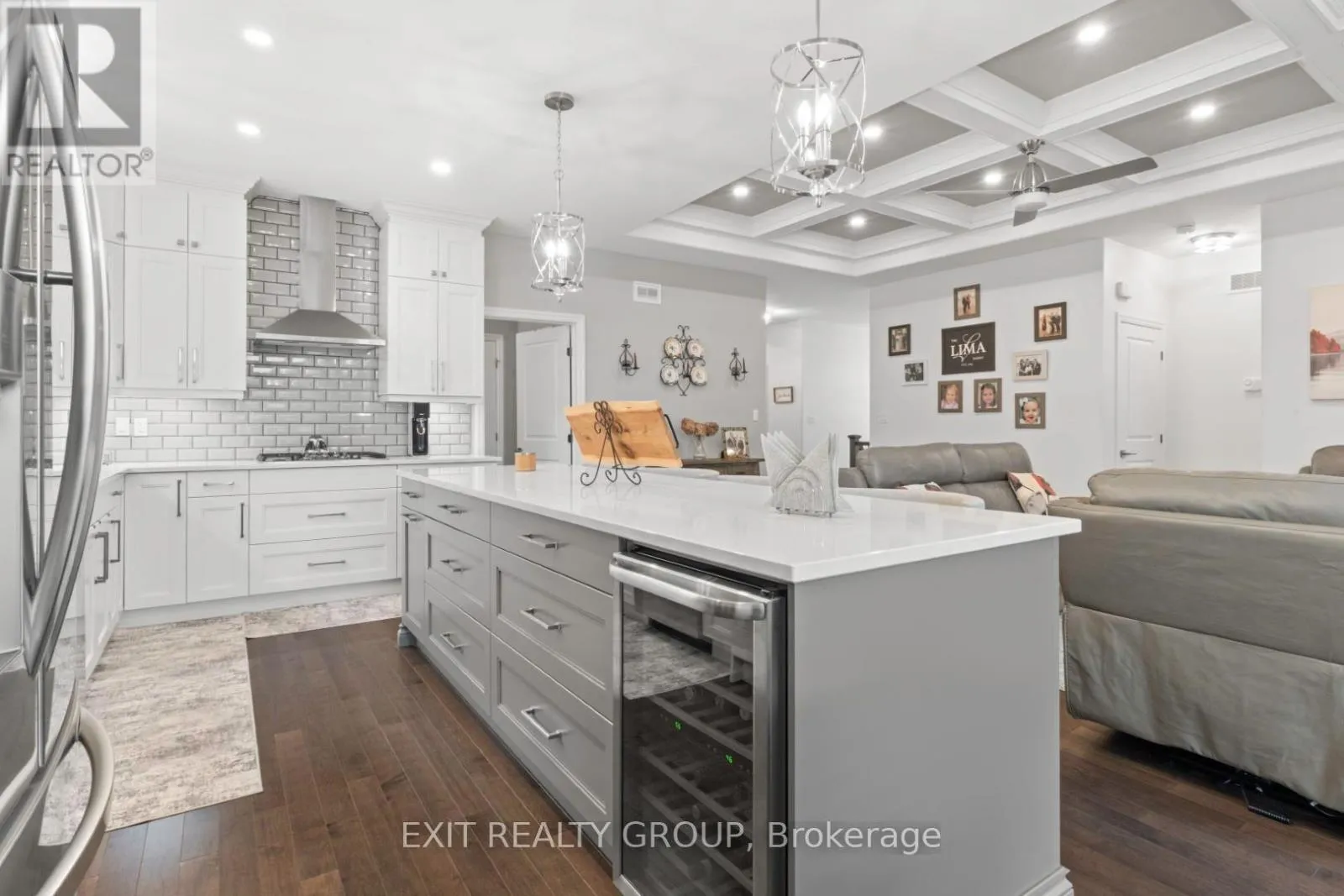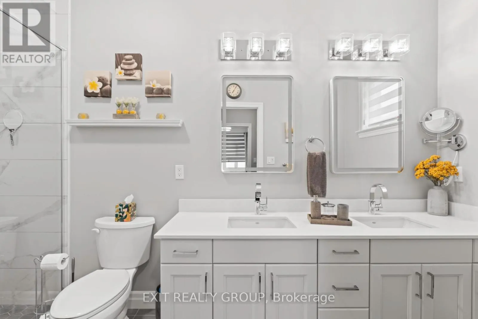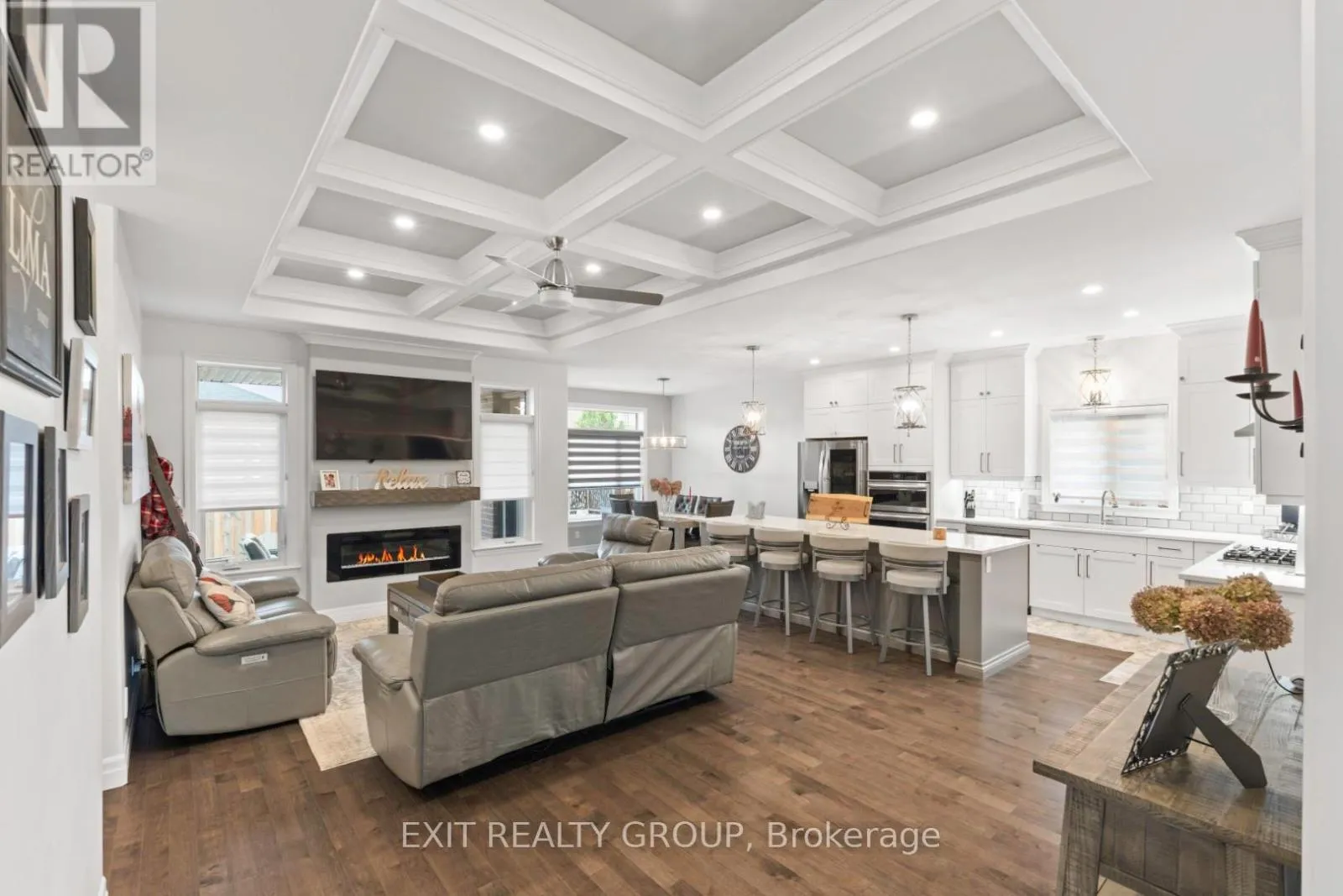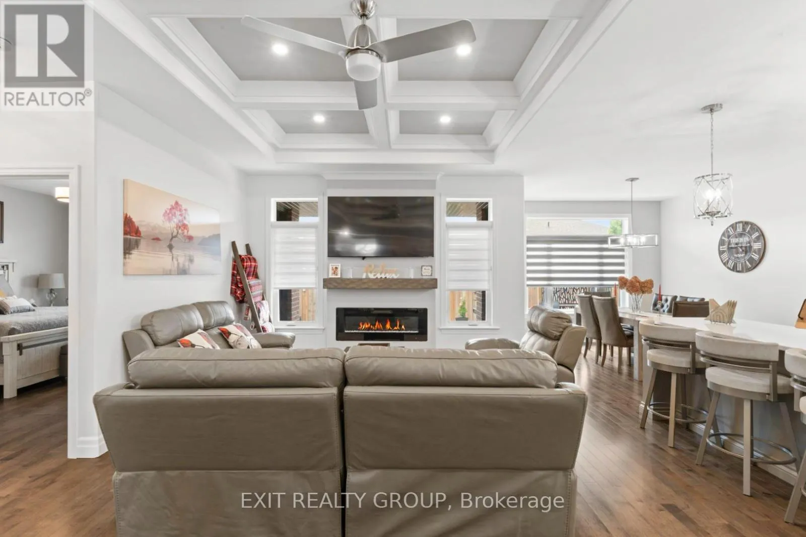 Cross Streets: Kipling Dr or Wims Way & Essex Dr. ** Directions: Farnham Rd to Kipling Dr to Essex Dr. Immaculate Staikos built three-year-old brick bungalow in Caniff Mills, Belleville. This four-bedroom, three-bathroom home features a high-quality kitchen with built in wall ovens, cooktop, pantry and built in wine cooler, Cambria quartz counters, Mirage hardwood flooring, custom powered blinds, phantom screen doors front and back for that perfect cross breeze, detailed coffered ceiling in the great room and built in electric fireplace with mantel. The Primary bedroom includes a walk-in closet and a 4-piece ensuite with tiled glass shower, double sink vanity with Cambria quartz counters. Full finished basement with large rec room, bar for entertaining, full bathroom with heated floors, 2 bedrooms, office area and lots of storage space. Relax in the maintenance-free interlock backyard, complete with hot tub with privacy screens, gas BBQ hookup, a composite deck, pergola, bistro area perfect for morning coffee and shed/workshop with hydro. Attached double car garage and triple wide driveway with interlock makes for lots of parking space. Conveniently located near all amenities, this home also provides easy access to the 401, subdivision playground park and the riverside trail. Harmony School District. School bus pickup available. (id:27476)