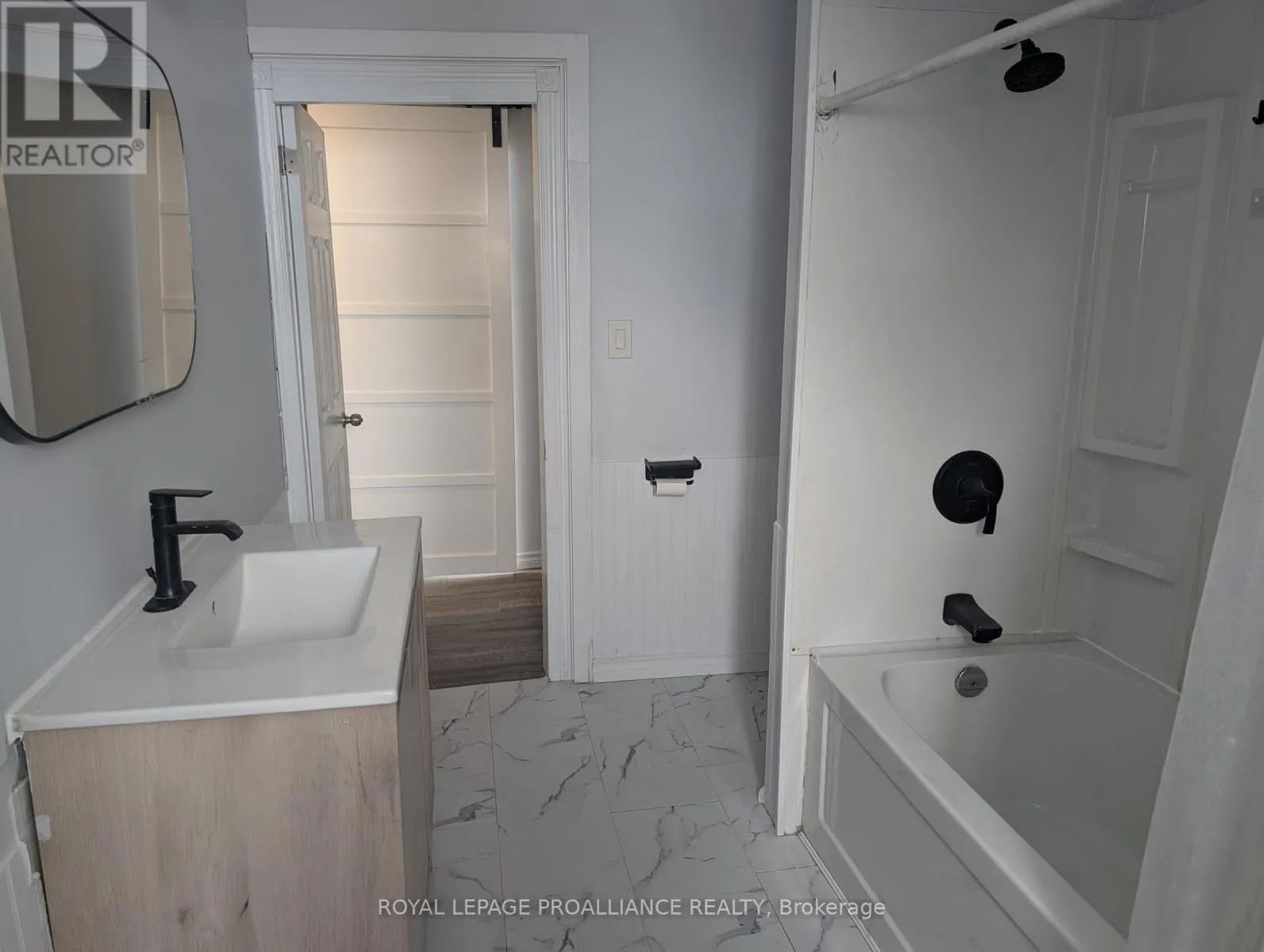 Cross Streets: Reid Street to Jones Street. ** Directions: Station St to Reid St to Jones St. FOR LEASE. Clean & updated 3 bedroom, 1 bath rental, backing directly on the Moira River. This semi-detached home offers a move-in ready 2 storey residence with one of the three bedrooms located on the first floor. Spacious yard with shed, parking for up to 3 cars & panoramic views of the Moira River waterfront. Centrally located with close proximity to town, amenities, Quinte Sport and Wellness plus easy access to Highway 401. The home has been completely refreshed top to bottom. Electric baseboard heat plus heat pump system in living room that does both heating & cooling. 2 entrances on the main level, one off the front into the living room & a second that enters into the kitchen. L-shaped eat-in kitchen has appliances included, modern grey cabinetry, tile backsplash & pantry. Large living room at front of house plus main floor bedroom at back of house overlooking the River behind. Upstairs has 2 additional bedrooms including a larger Primary bedroom with closet. Also on this level is a spacious 4-piece bathroom with laundry hookups (washer and dryer can be negotiable). Immediate possession available. 1 year lease preferred. First and last required. Rent is PLUS utilities (hydro and water/sewer only). Tenants to maintain grass & snow. Tenants will be required to provide the following: Rental application, recent full credit report, proof of employment and income, personal references. Enjoy a rental that is NOT located in a congested apartment complex. Private yard, private parking & ideally situated close to everything. (id:27476)