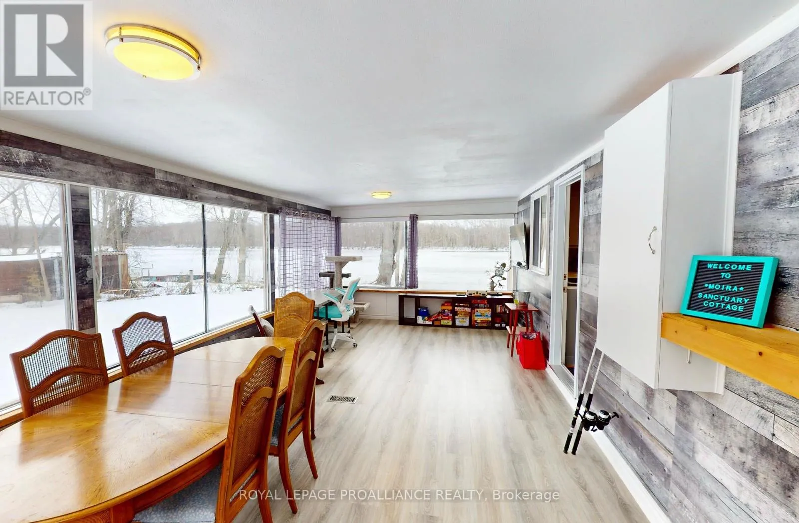 Cross Streets: Highway 62/Mudcat Road. ** Directions: Highway 62 North of Belleville to Foxboro to Mudcat Road to Sanctuary Lane to the end (stay to the right). Welcome to this beautifully updated and move-in-ready property, offering peace of mind with a long list of major upgrades and thoughtful improvements throughout. Ideal as a full-time residence or a low-maintenance getaway, this four bedroom, two bathroom home combines modern comfort with practical functionality. Situated on the Moira River, this property has seen significant mechanical updates including a brand-new propane furnace (2021), new heat pump with air conditioning (2023), hot water heater (2022), and two sump pumps added in 2022 with a second replacement in 2025. Enjoy lean, efficient water with a water softener and reverse osmosis system installed in 2021. The roof was replaced in 2015, and remains in great condition. The interior has been tastefully updated with new flooring throughout, a fully renovated kitchen (2022), and a newly added and renovated bathroom (2022). All appliances (2021) are included, making this home truly turnkey. Rough-in plumbing for a washer and dryer is already in place, with space available on the electrical panel for easy future installation. Additional upgrades include new windows and doors (2022), new eavestroughs (2022), and a Rubbermaid storage shed (2022) for added convenience. Stay connected with fibre-optic internet, perfect for remote work or streaming. Outdoor living is complete with a dock added in 2023, and for extra value, all major furniture is included, along with a boat (approx. $1,500 value) - just bring your personal items and start enjoying. (id:27476)