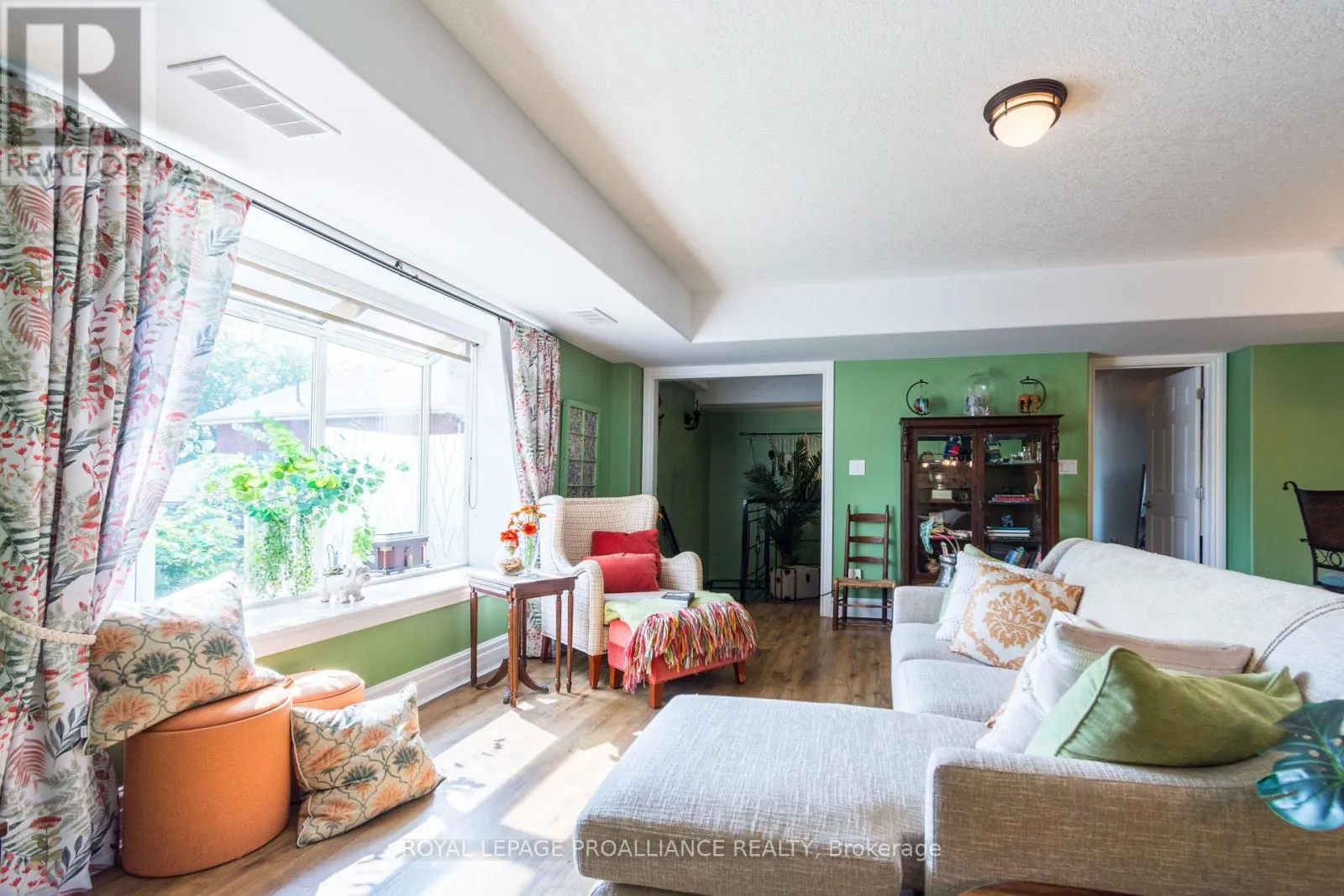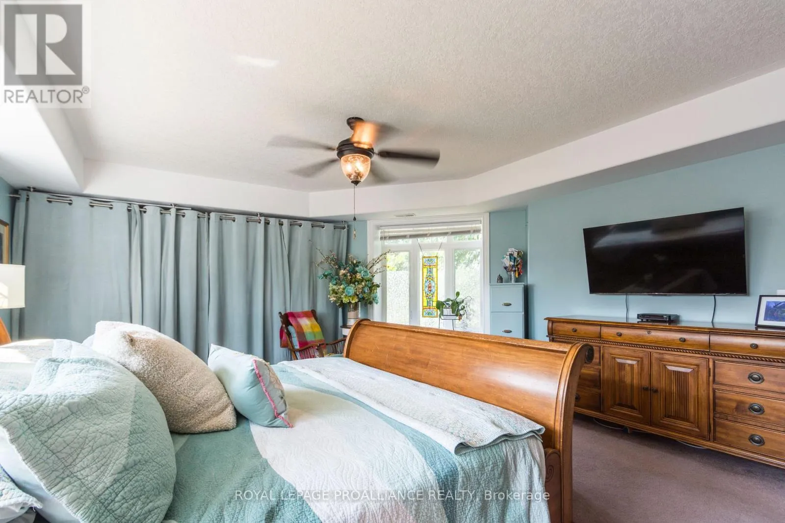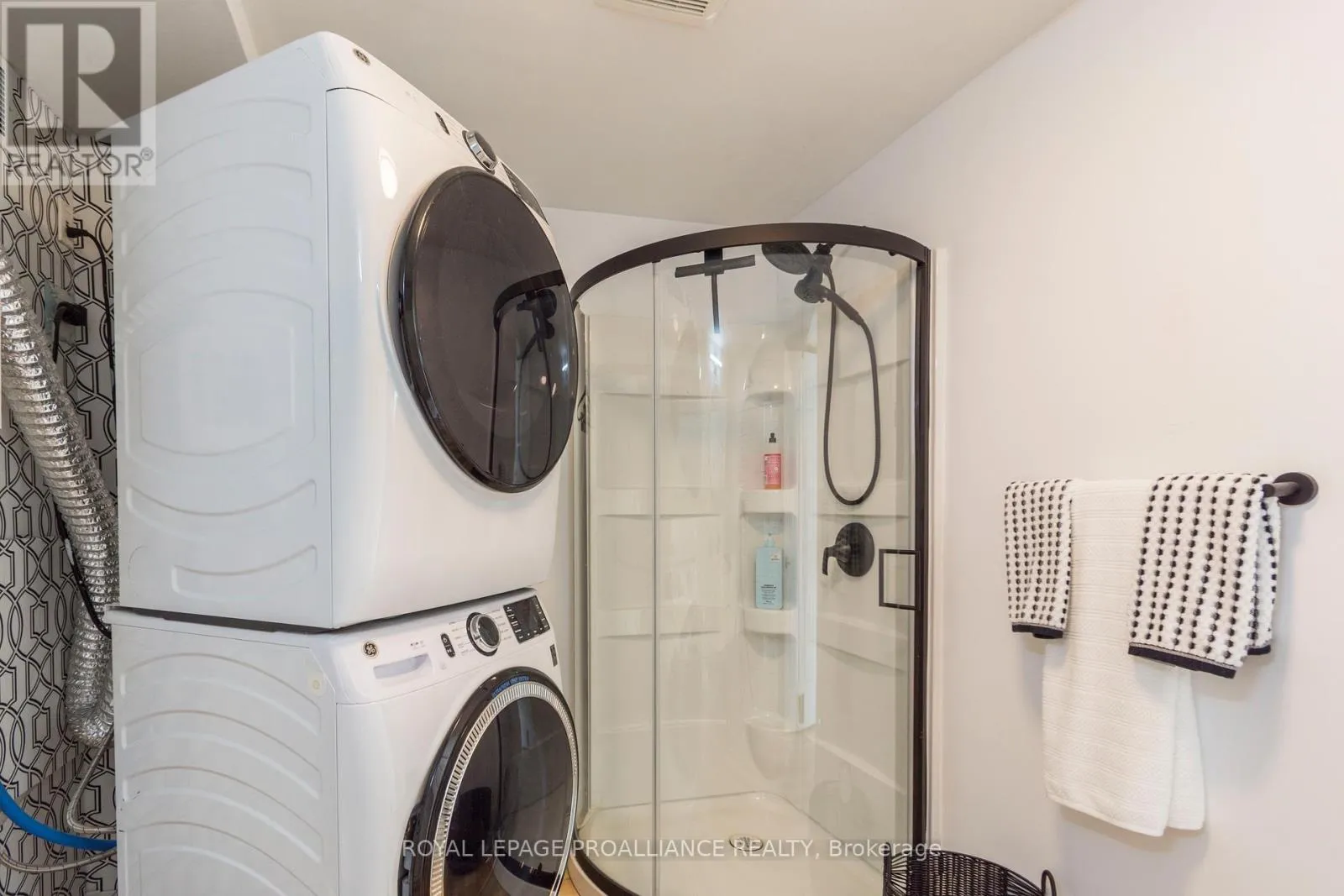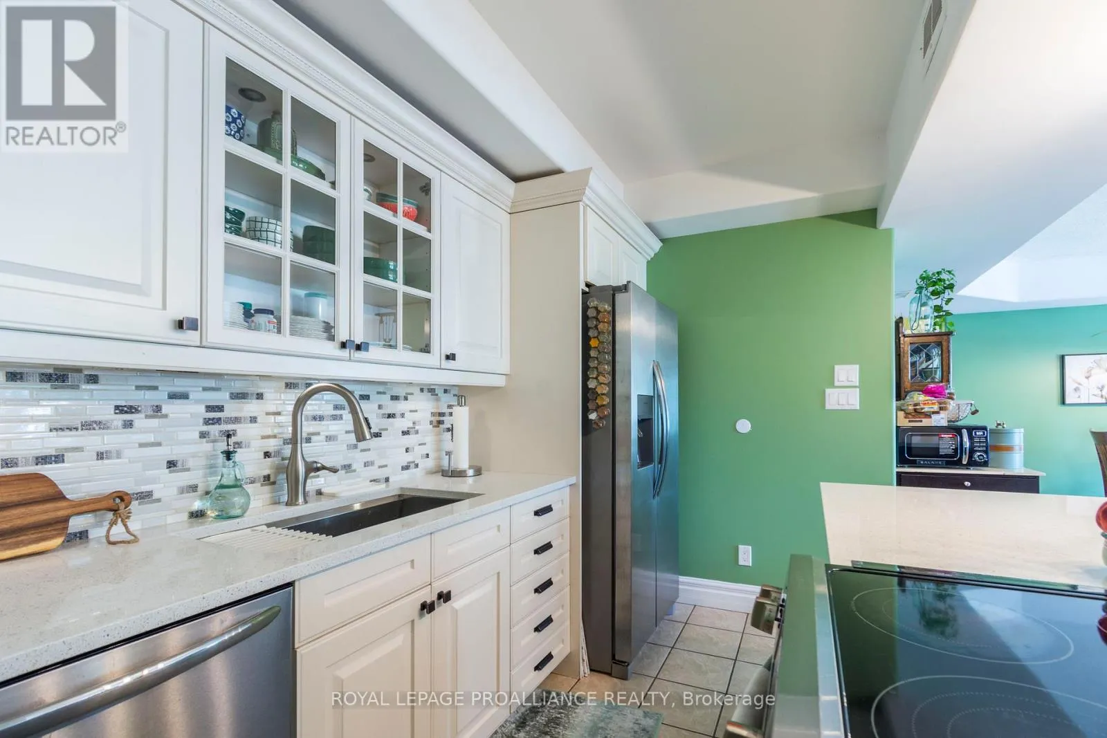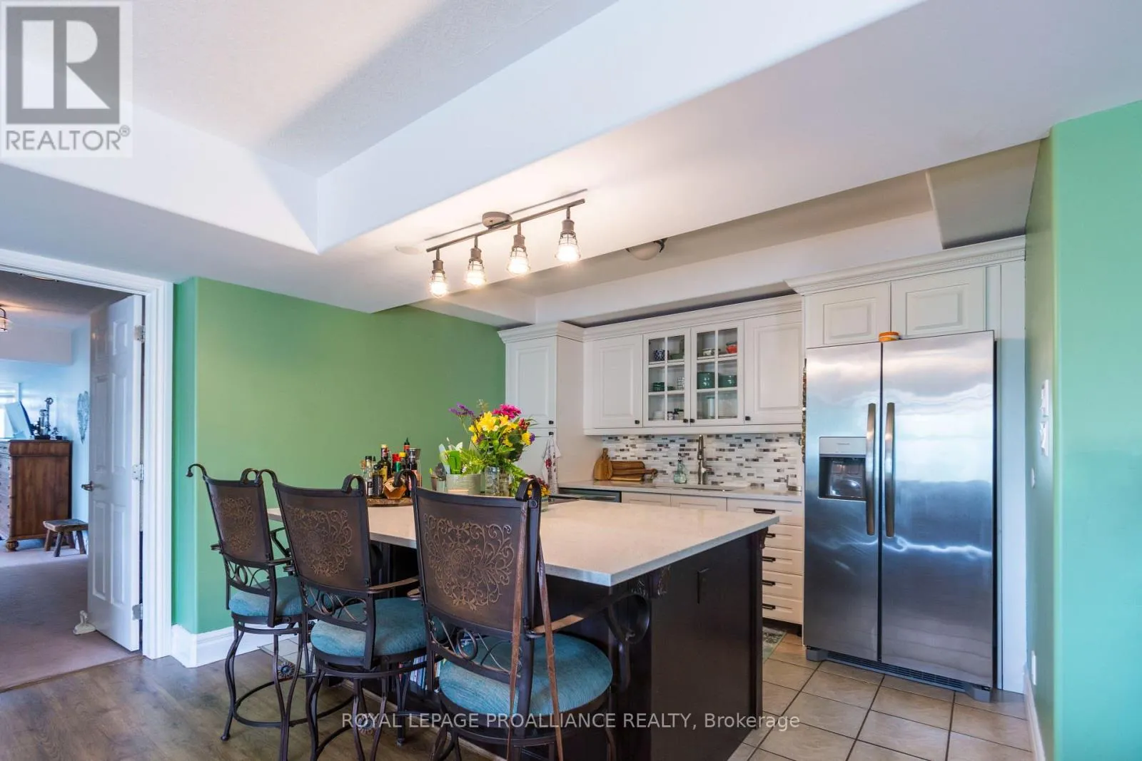 Highway 2 and Farley Avenue Discover a rare opportunity at the Trillium Grand - a spacious condominium offering nearly 3,000 sq. ft. of finished living space. Perfectly located in Belleville's desirable east end, this two-level unit provides the feel of a full-sized home with all the convenience of low-maintenance condo living. The main level (1,500 sq. ft.) is designed for easy living with a bright, open-concept layout, modern white kitchen, and generous living and dining areas filled with natural light. Two large bedrooms include a primary suite with dual closets and private en-suite bath, plus an additional full bathroom for family or guests. The lower level (1,440 sq. ft.) sets this home apart, offering endless possibilities with spacious rec room or hobby space, a three-piece bath, and a large storage/workshop area. Ideal for a home business, an extended family member, or hobby enthusiasts looking for room to create and store. Enjoy your own garden walkout, along with building amenities including an exercise room and party room. With two parking spaces, elevator access for comfort and accessibility, and stress-free upkeep, this unique home blends condo convenience with the expansive space of a house. (id:27476)