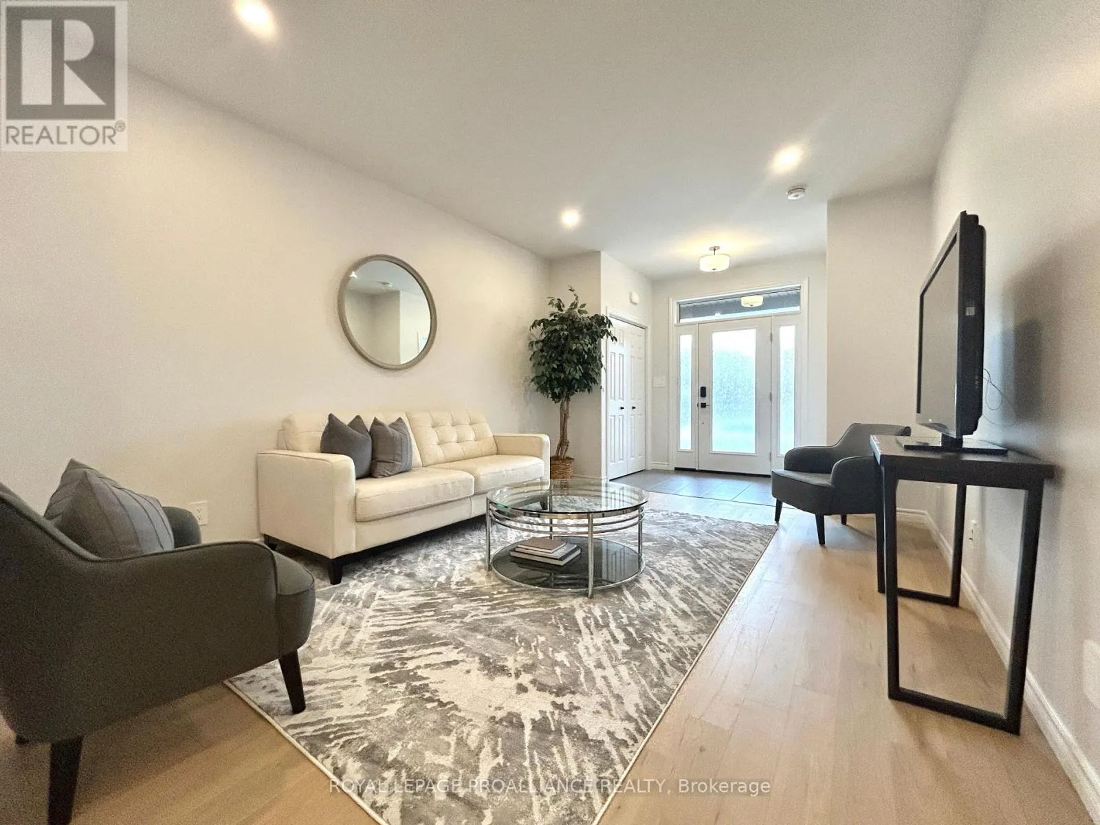 Cross Streets: Farnham Road & Riverstone Way. ** Directions: Farnham Road & Riverstone to Athabaska. Welcome to 33 Athabaska Drive, nestled in Belleville's beautiful Riverstone neighbourhood, conveniently located just North of the 401. This thoughtfully designed 2-bedroom, 2-bathroom bungalow town-home offers the perfect blend of quality craftsmanship and low-maintenance living. Walking in you will find the cozy living area with easy access to the spacious kitchen complete with pantry, stainless steel appliances and beautiful granite countertops. Just off the kitchen is the dining area and access to laundry, private interlock courtyard area and attached one car garage. This home is finished with a beautiful primary suite complete with 11ft ceiling, en-suite bathroom and walk-in closet. A secondary bedroom with convenient cheater access to the main bathroom as well as a large unspoiled basement with basement bathroom rough-in. (id:27476)