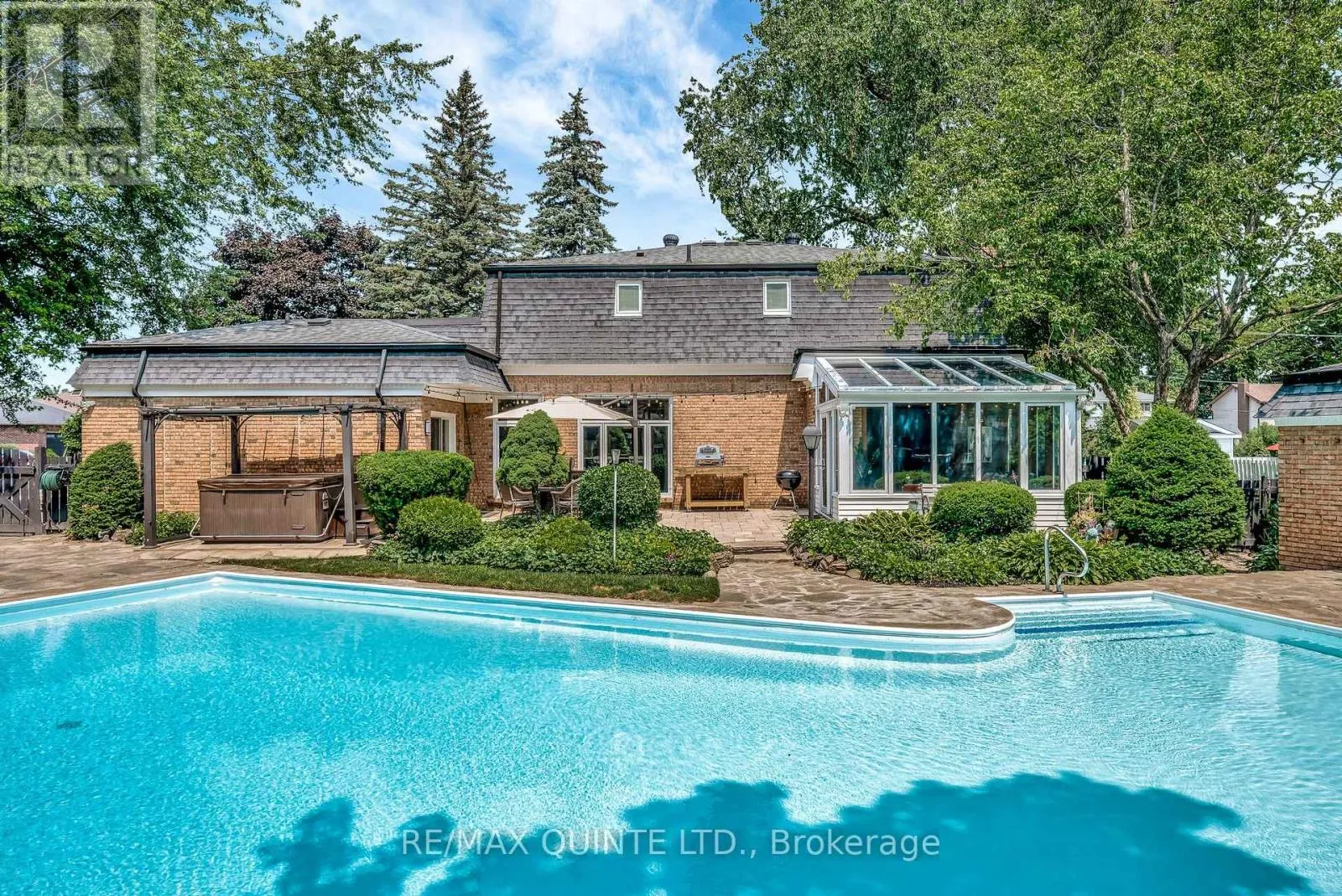 Cross Streets: Farley and Forest Hill. ** Directions: Farley to Forest Hill. On South-East corner. Space, privacy, and a true backyard retreat come together at 22 Forest Hill Crescent, one of the most unique executive homes in Belleville's East End. Set on a rare triple lot of approximately half an acre, this expansive two-storey home offers over 3,700 sq ft of living space, plus a two-car garage, a separate pool house with its own bathroom, and an outdoor setting that feels more like a private resort than a city property. The main floor has been thoughtfully updated while preserving the character that makes this home special. The kitchen features granite countertops, a large centre island with seating, generous cabinetry, and views of the pool and patio, making it ideal for everyday living and entertaining. A spacious dining room easily hosts large gatherings, while the formal living room and lounge offer multiple places to relax. The lounge includes a wood-burning fireplace and a wet bar, creating a comfortable space for hosting or relaxing with a glass of wine and your favourite book. A bright four-season sunroom with floor-to-ceiling windows connects the indoors to the backyard. Throughout all seasons, this room is a showstopper. The main level also includes a home office, powder room, laundry closet, and direct access to the oversized garage. Upstairs, the primary suite spans over 400 sq ft, with a walk-in closet, two additional closets, and a six-piece ensuite bathroom. Two more generously sized bedrooms and an updated five-piece bath complete the upper level. The finished basement provides over 700 sq ft of rec room space, a three-piece bathroom, and a large unfinished storage area. Outside, enjoy mature trees, landscaped gardens, an in-ground pool, a hot tub, an interlock patio, a gazebo for outdoor dining, a natural gas BBQ hookup, and space to truly enjoy the outdoors. A rare East End Belleville home close to schools, shopping, and amenities, offering space, privacy, and features that are increasingly hard to find. (id:27476)