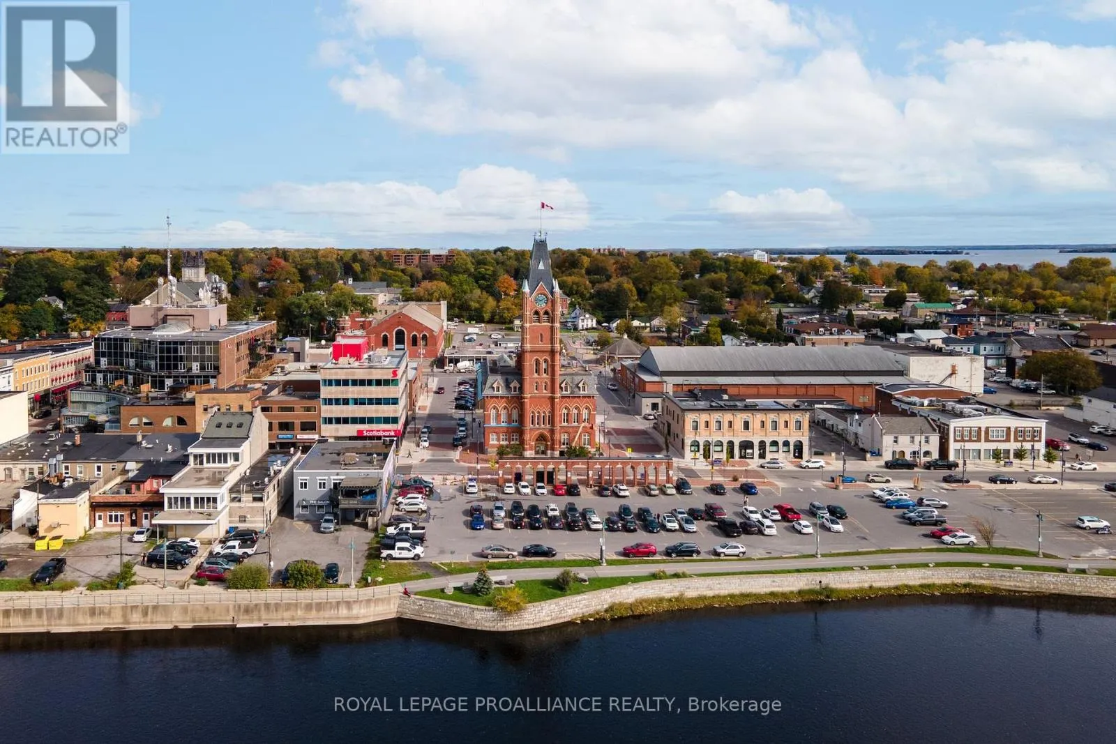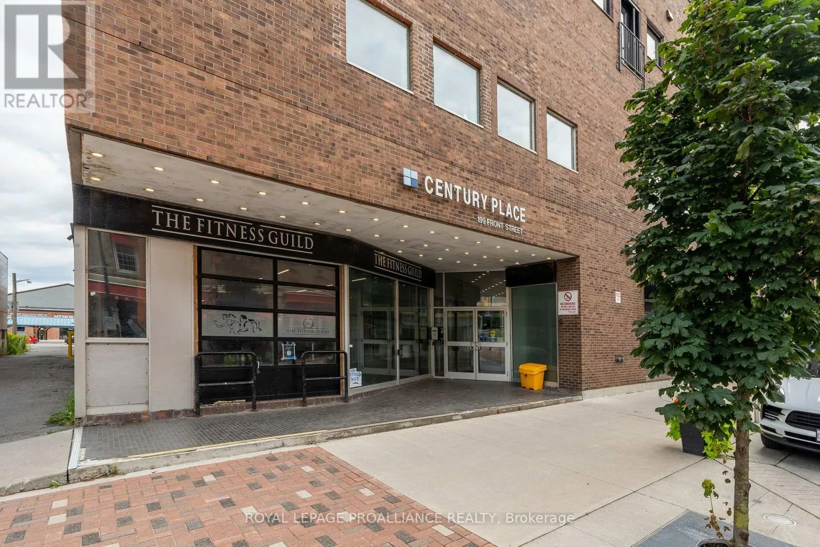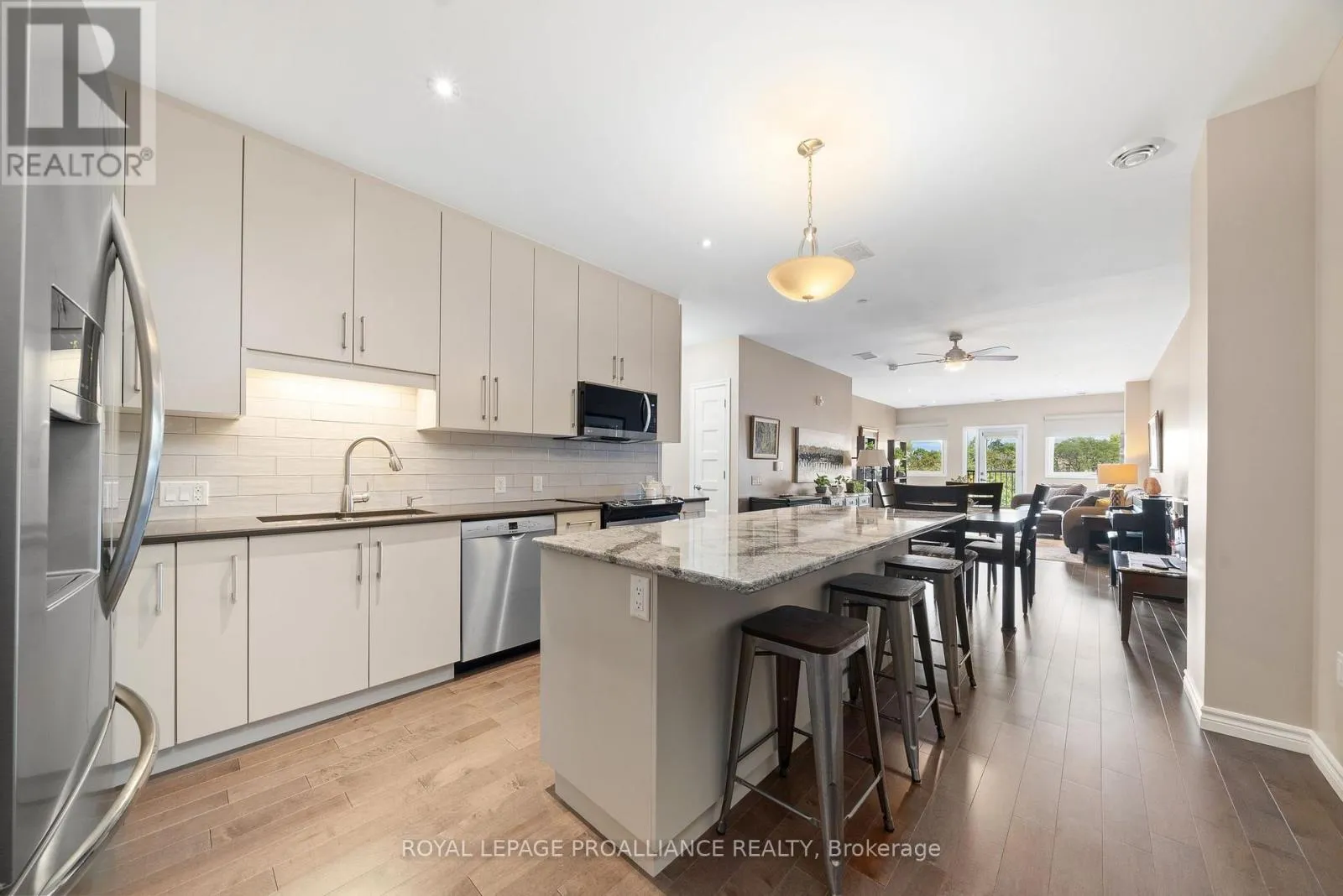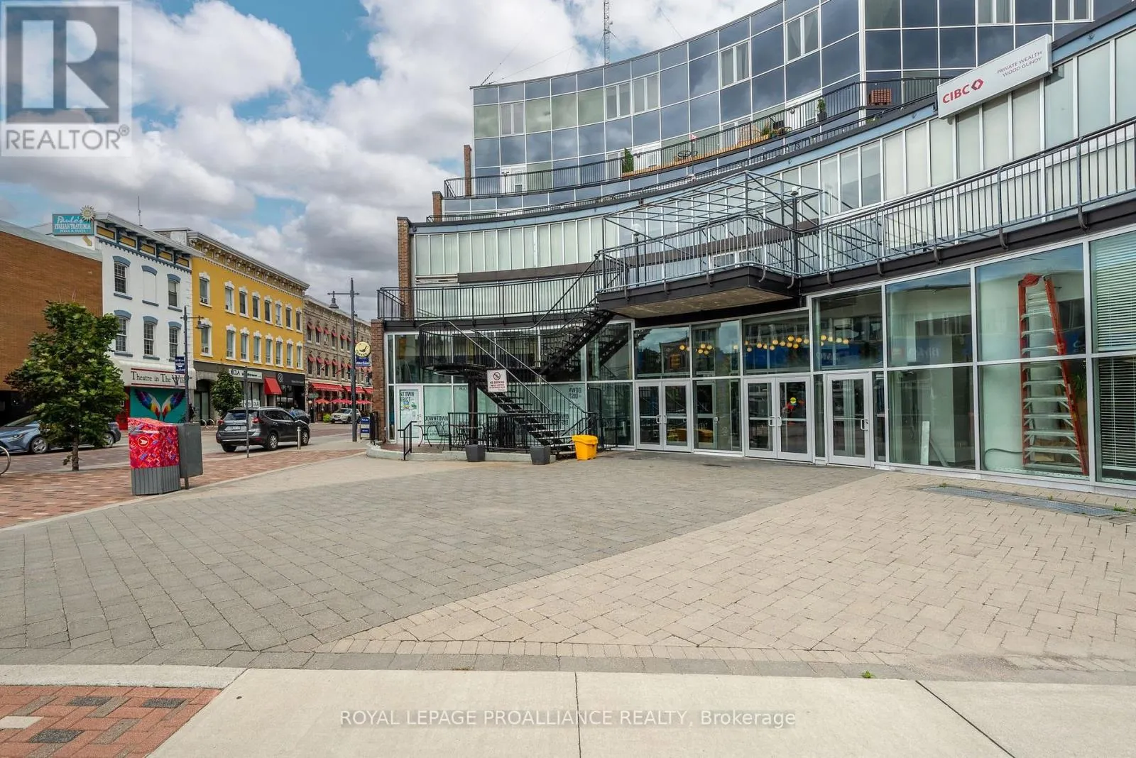Cross Streets: Bridge Street/ Front Street. ** Directions: Corner of Bridge Street & Front Street. Welcome to Century Place/Village, where urban luxury meets effortless living in the heart of Belleville. This beautifully maintained fourth-floor condo offers a bright, open- concept layout with one bedroom plus den, featuring a spacious primary suite with a stylish ensuite. The modern kitchen boasts quartz countertops, sleek cabinetry, and a large island, flowing seamlessly into sun-filled dining and living areas with views of Belleville's vibrant downtown. Enjoy the convenience of in-suite laundry and premium upgrades throughout. Residents of Century Place/Village enjoy exceptional amenities including a 3rd floor rooftop patio with BBQ and city views, adjoining common room with kitchen, main floor fully equipped fitness center with cafe (fee), secure access, heated underground parking, and a wine bar on the main level. Ideally located near the revitalized market place armories with restaurants, shops, and entertainment, this condo is perfect for young professionals or retirees seeking a sophisticated, low-maintenance lifestyle. Compliments of the current owner, enjoy a 3 month membership to the gym upon closing. (id:27476)