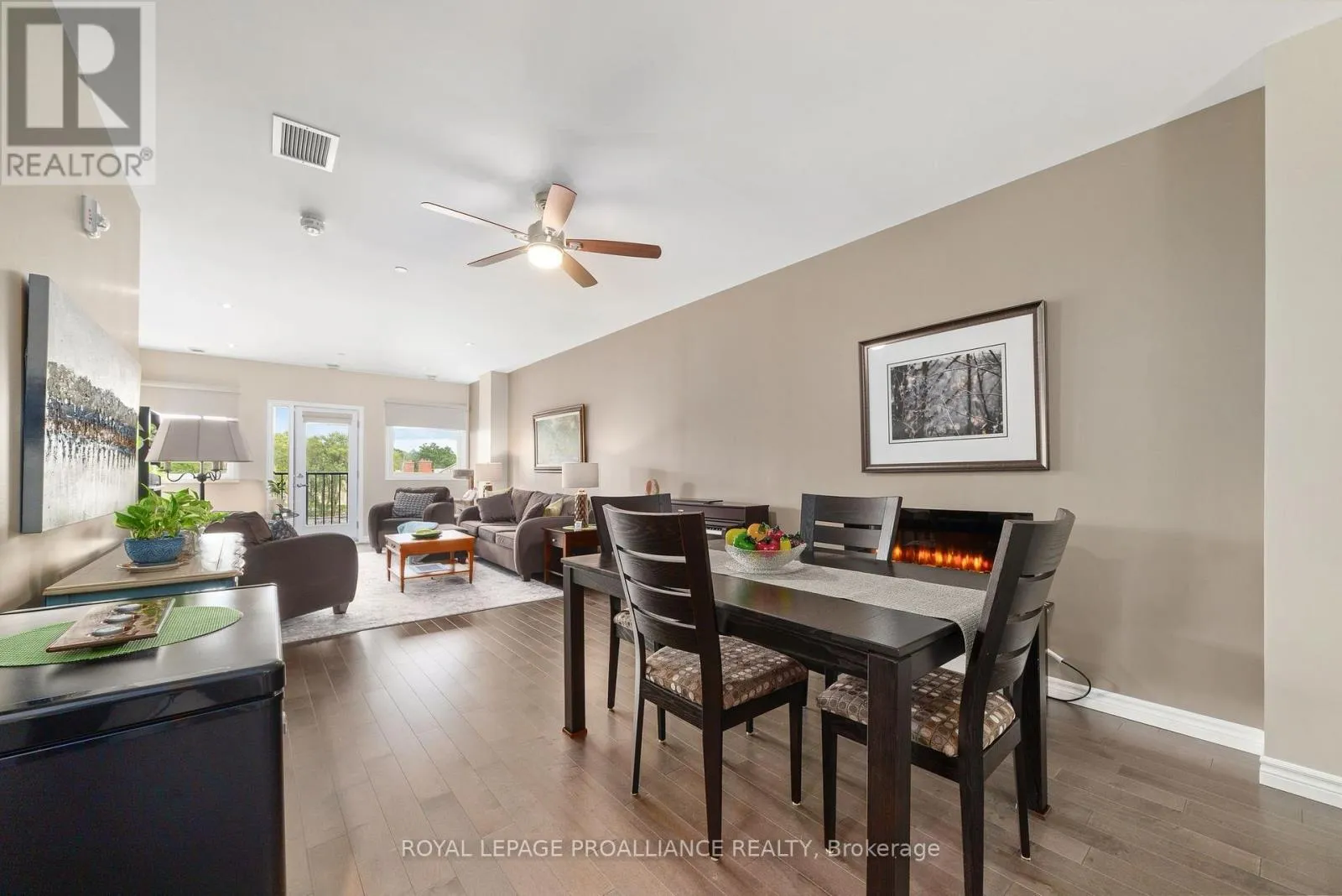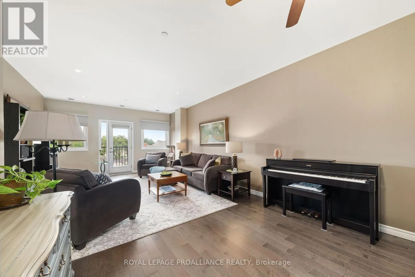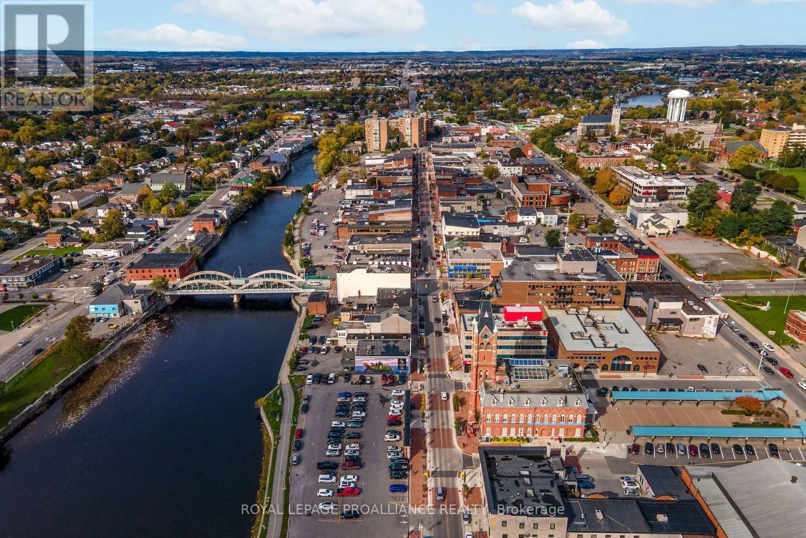Cross Streets: Bridge Street/ Front Street. ** Directions: Corner of Bridge Street & Front Street. Welcome to Century Place/Village, where urban luxury meets effortless living in the heart of Belleville. This beautifully maintained fourth-floor condo offers a bright, open- concept layout with one bedroom plus den, featuring a spacious primary suite with a stylish ensuite. The modern kitchen boasts quartz countertops, sleek cabinetry, and a large island, flowing seamlessly into sun-filled dining and living areas with views of Belleville's vibrant downtown. Enjoy the convenience of in-suite laundry and premium upgrades throughout. Residents of Century Place/Village enjoy exceptional amenities including a 3rd floor rooftop patio with BBQ and city views, adjoining common room with kitchen, main floor fully equipped fitness center with cafe (fee), secure access, heated underground parking, and a wine bar on the main level. Ideally located near the revitalized market place armories with restaurants, shops, and entertainment, this condo is perfect for young professionals or retirees seeking a sophisticated, low-maintenance lifestyle. Compliments of the current owner, enjoy a 3 month membership to the gym upon closing. (id:27476)