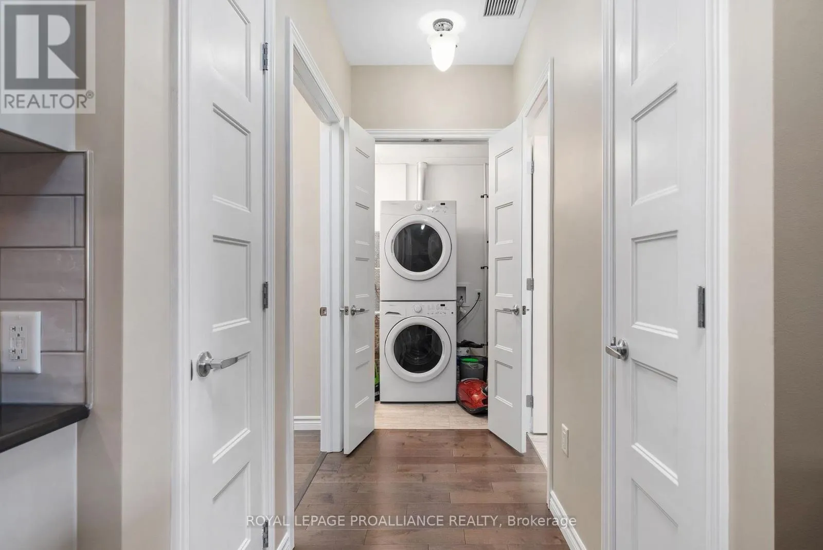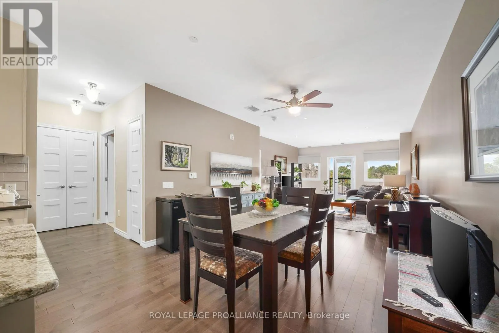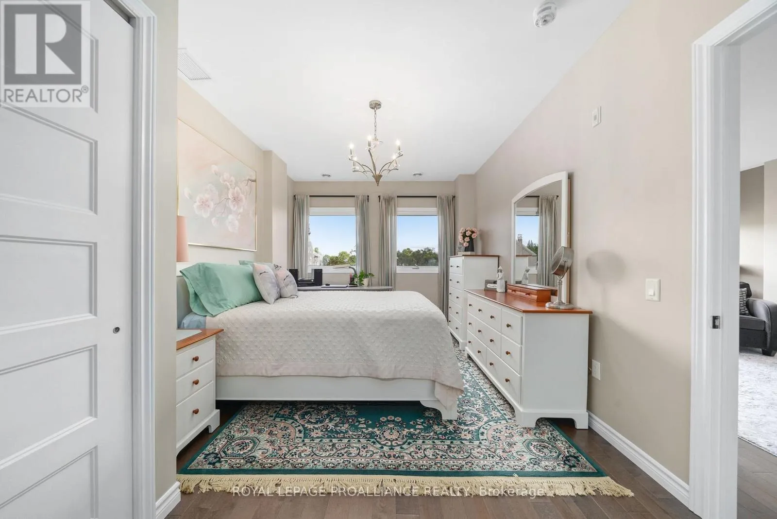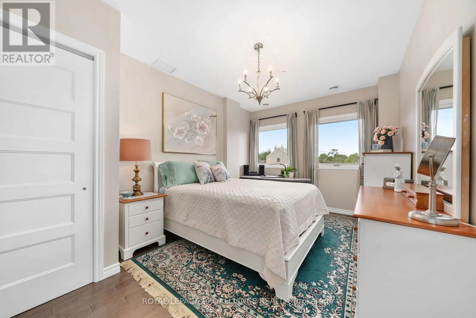 Cross Streets: Bridge Street/ Front Street. ** Directions: Corner of Bridge Street & Front Street. Welcome to Century Place/Village, where urban luxury meets effortless living in the heart of Belleville. This beautifully maintained fourth-floor condo offers a bright, open- concept layout with one bedroom plus den, featuring a spacious primary suite with a stylish ensuite. The modern kitchen boasts quartz countertops, sleek cabinetry, and a large island, flowing seamlessly into sun-filled dining and living areas with views of Belleville's vibrant downtown. Enjoy the convenience of in-suite laundry and premium upgrades throughout. Residents of Century Place/Village enjoy exceptional amenities including a 3rd floor rooftop patio with BBQ and city views, adjoining common room with kitchen, main floor fully equipped fitness center with cafe (fee), secure access, heated underground parking, and a wine bar on the main level. Ideally located near the revitalized market place armories with restaurants, shops, and entertainment, this condo is perfect for young professionals or retirees seeking a sophisticated, low-maintenance lifestyle. Compliments of the current owner, enjoy a 3 month membership to the gym upon closing. (id:27476)