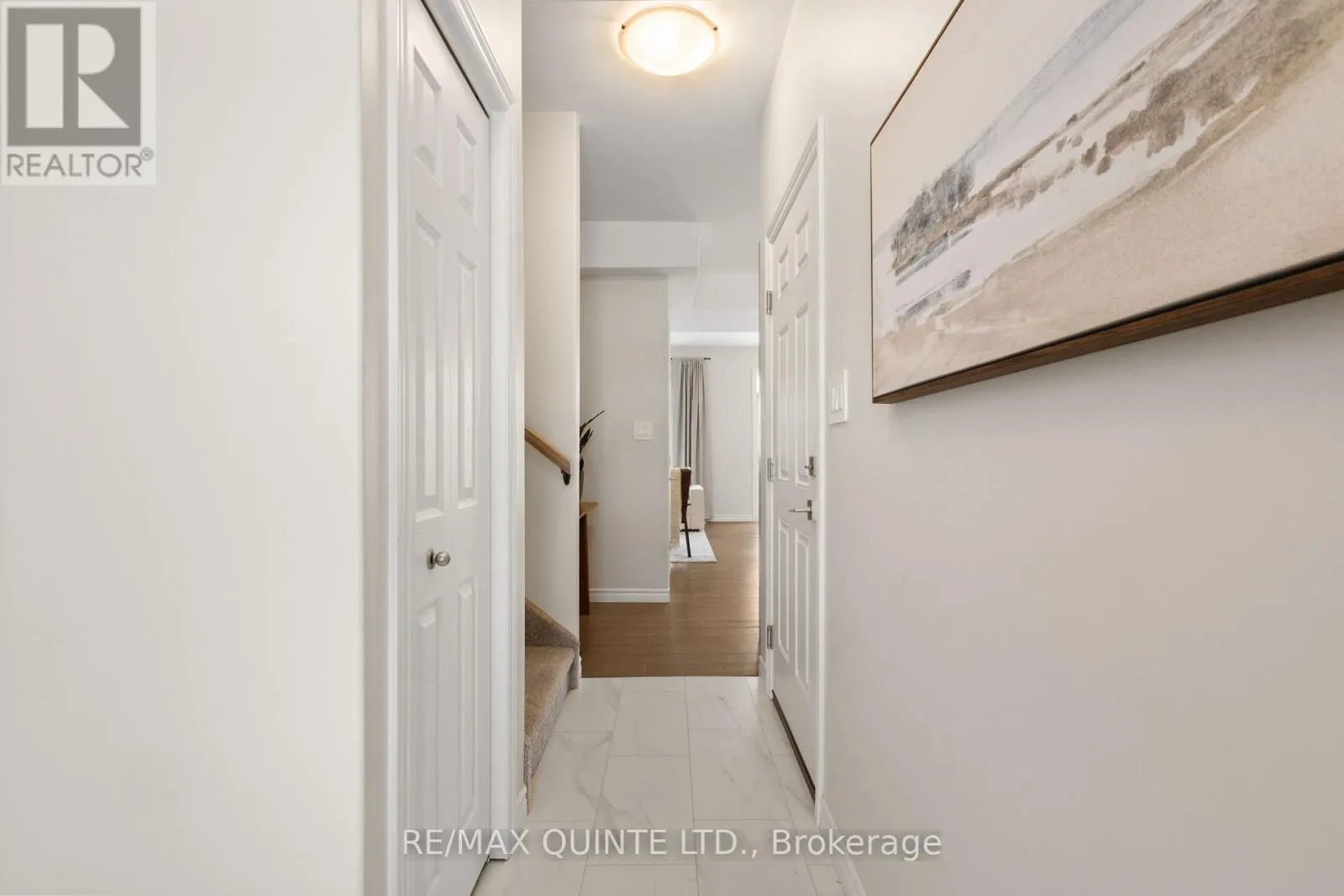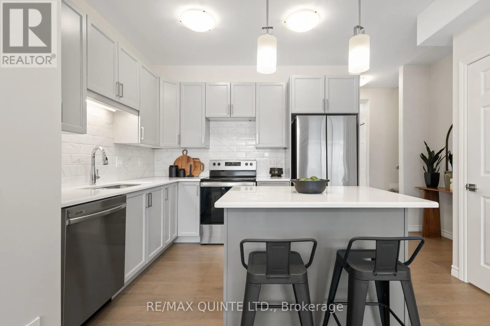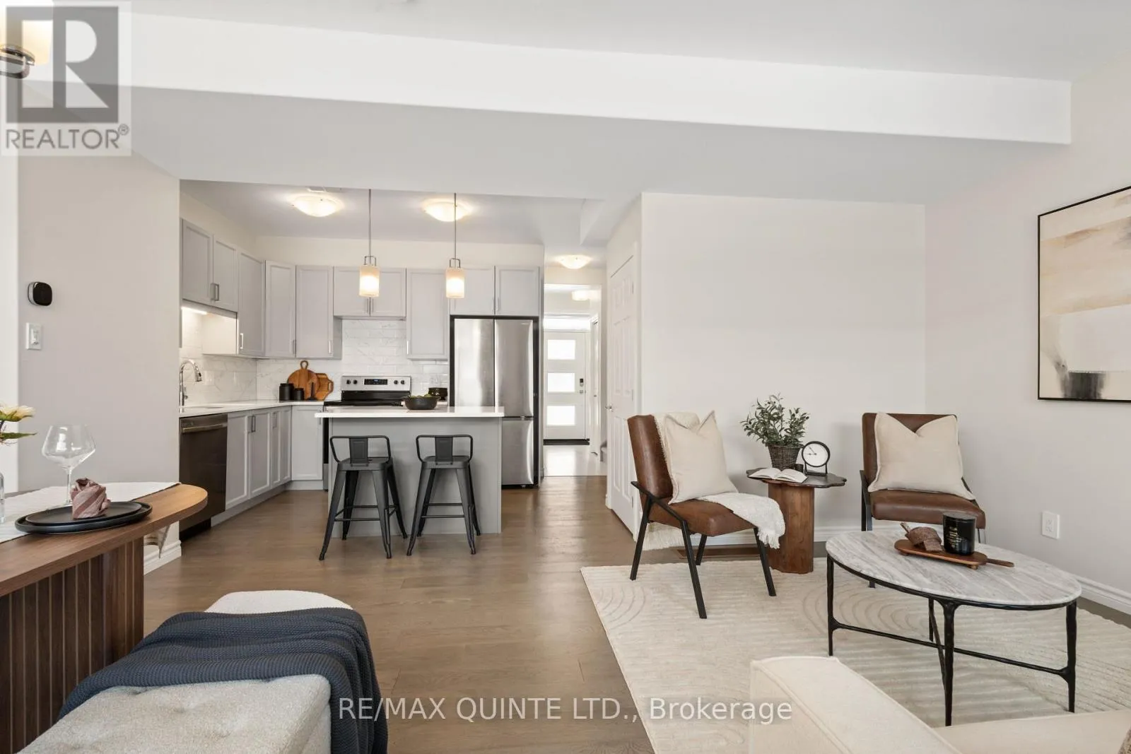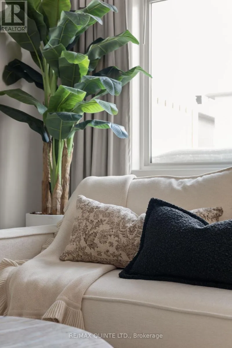 Cross Streets: Riverstone/Otonabee. ** Directions: Farnham Road to Riverstone Way to Otonabee St. Quality two-storey Geertsma townhome featuring 3 bedrooms and 2.5 bathrooms in the growing Riverstone community. The main floor offers an open-concept layout with 9ft ceilings, a powder room, and a bright kitchen equipped with stainless steel appliances, a large island, quartz countertops, and a matching backsplash. The second level includes a laundry closet and a primary bedroom with a walk-in closet and private three-piece ensuite, alongside two additional bedrooms and a full main bathroom. Outside, a 10x10 deck provides space for outdoor relaxation, complemented by an attached one-car garage with inside entry and an extended driveway with interlock. The unfinished basement includes a bathroom rough-in, offering potential for future living space. Ideally located near shopping, local amenities, and easy access to Highway 401, this home provides a functional design in a prime North Belleville location. (id:27476)