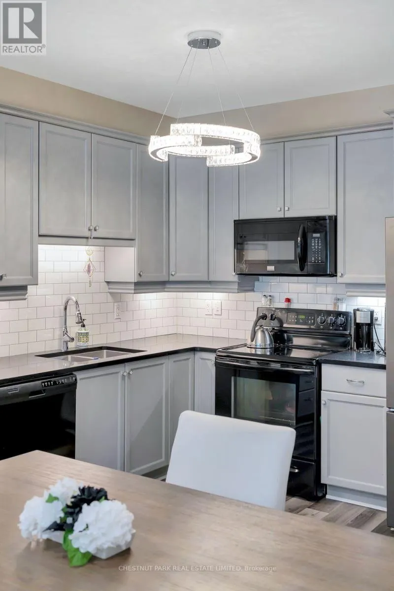 Cross Streets: Haig Rd and Janlyn Cres. ** Directions: Bridge St E or Dundas St E to Haig Road. Welcome to East Gate, where this beautifully updated bungalow-style townhome makes life simple in the best way. On the main floor you will find two spacious bedrooms with two full bathrooms,and the primary suite comes with a spacious walk-in closet because storage matters.The kitchen is fresh and inviting with updated cabinetry and a sleek backsplash, and main-floor laundry is upgraded with a new washer and dryer. Need more space? The finished basement delivers: kitchenette, big rec room, den, and a 3-piece bath making the space ideal for guests,extended family, or your own private getaway zone. Step out to your private backyard deck for relaxing or entertaining, and enjoy being minutes to the hospital, shopping, and transit. (id:27476)
