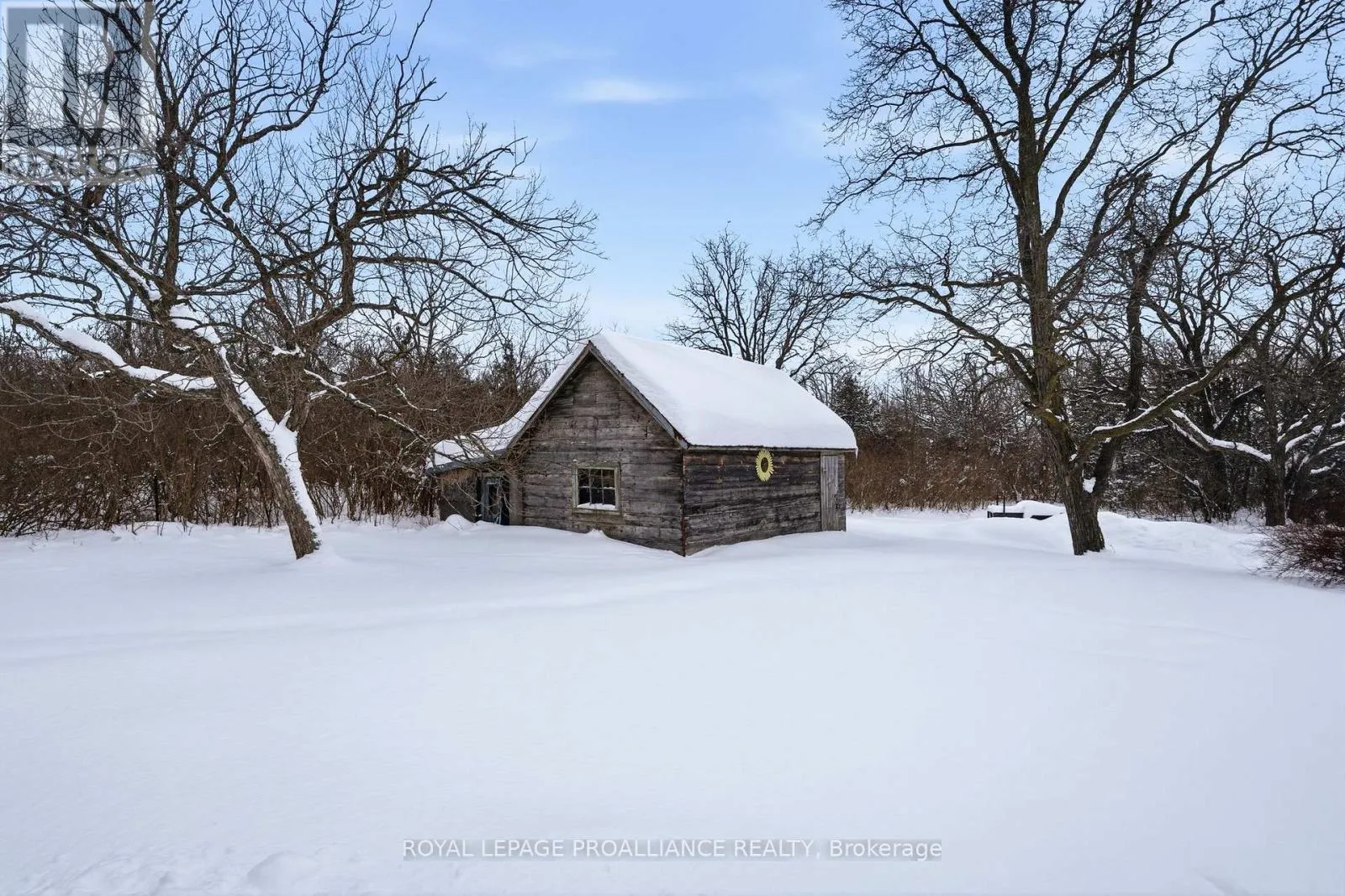 Cross Streets: Point Anne Rd & Manley Drive. ** Directions: Highway #2 East to Point Anne Rd to Manley Drive. Step back in time while enjoying modern comfort in this absolutely adorable 1-storey country home, ideally located just minutes east of the City of Belleville. Built in 1907, this two-bedroom home is full of character and warmth, tastefully decorated to preserve its classic farm charm while incorporating modern touches. The bright and spacious living room features a cozy propane fireplace, while the inviting eat-in kitchen and convenient main-floor laundry make everyday living both comfortable and functional. Step out from the dining area onto a deck overlooking the just-over-half-acre lot-perfect for enjoying peaceful country views. Relax on the old-style front porch or explore the original garage and shed that truly evoke days gone by. If country living is what you've been searching for in a first-time home, you've found it. (id:27476)