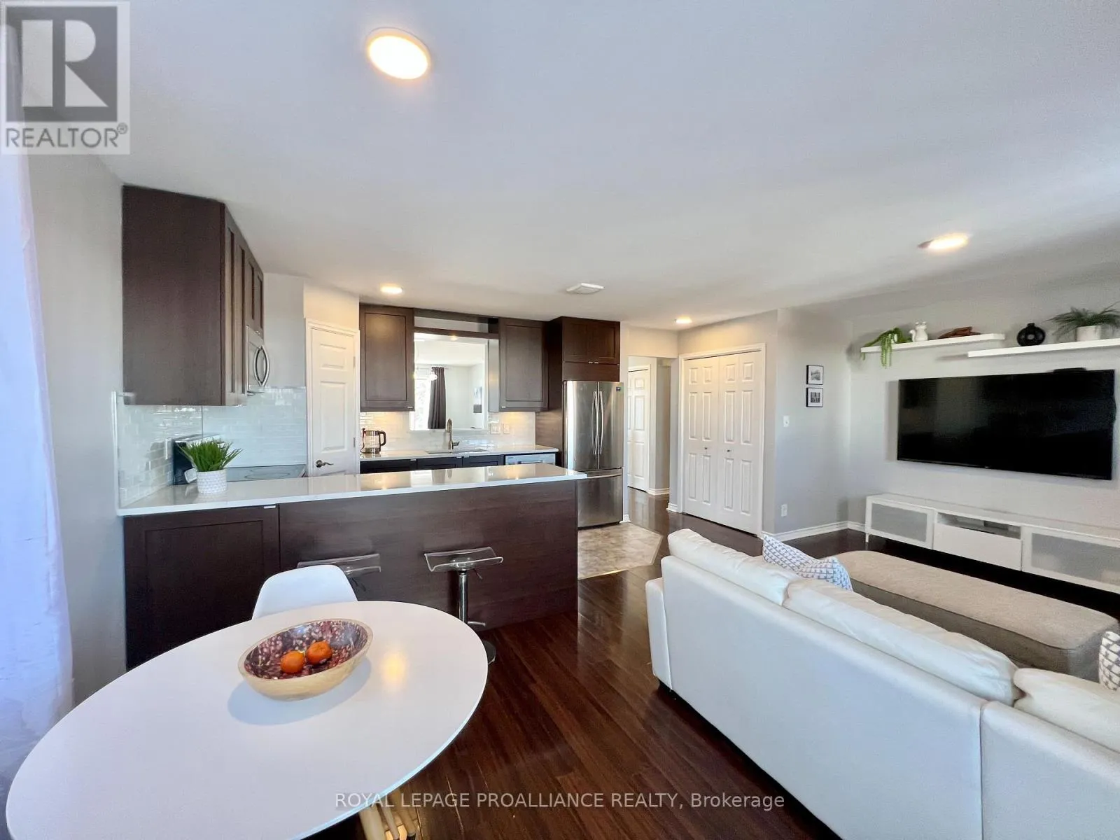 Cross Streets: Oak Ridge Blvd/Hickory Grove. ** Directions: Dundas St E., north on Farley Ave, Hickory Grove to Oak Ridge Blvd. Searching for rental income or space for multi-generational living? This all-brick detached home with an in-law suite in the highly regarded Stanley Park neighbourhood offers versatility and an excellent east-end Belleville location close to schools, parks, the hospital, and public transit just steps away. The layout offers 2+2 bedrooms and 3 full baths, 2 full kitchens and ensuite laundry in both units, making it easy to live in one unit while accommodating family or generating income in the other. The upper unit spans the entire main floor plus a portion of the basement and includes three bedrooms and two baths, highlighted by a primary suite with walk-in closet and ensuite. The updated kitchen features quartz countertops and stainless steel appliances, overlooking the living room with a gas fireplace and walkout to the back deck. A dining room with pass-through adds everyday convenience and functionality. The lower unit offers one bedroom, one bath, a functional eat-in kitchen, living room, and den, along with a separate entrance to the side yard. Large windows throughout the lower level provide an airy, above-ground feel. Both units showcase engineered hardwood flooring, updated kitchens, baths, and modern light fixtures. Prefer a single-family setup? Simply leave the connecting doors open and use the lower level as guest space or a teen hangout. Outside, enjoy a fully fenced yard with multi-tier decks offering plenty of space for entertaining, play, or pets. The home also enjoys a partial view of the greenspace across the street. Thoughtfully updated, well located, and designed to offer options-this is a home that simply works. (id:27476)