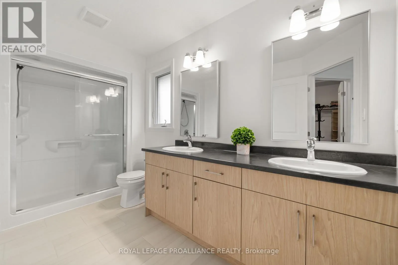 Cross Streets: FARLEY AVE/LANARK DR. ** Directions: Dundas St E to Farley, to Lanark. Smoke free and pet free since it was built! Welcome to this beautifully maintained 2-storey home nestled on a peaceful cul-de-sac. Offering 4 spacious bedrooms and 4 bathrooms, this home is perfect for families and entertainers alike. The main floor features an inviting open-concept layout, combining the living and dining areas, complete with a garden door leading to a private deck, ideal for indoor-outdoor living. The kitchen is a true highlight, boasting sleek quartz countertops, a stylish tile backsplash, and plenty of cabinetry. Also on the main level, you'll find a bright office or optional fifth bedroom, convenient main floor laundry, and access to the attached double garage. Upstairs, the primary suite includes a generous walk-in closet and a private 4-piece ensuite. Two additional bedrooms offer double closets and share a full bathroom. The fully finished basement expands your living space with a large rec room, an additional bedroom, another 4-piece bath, and abundant storage options. A perfect blend of comfort, functionality, and style, this home is a must-see! (id:27476)