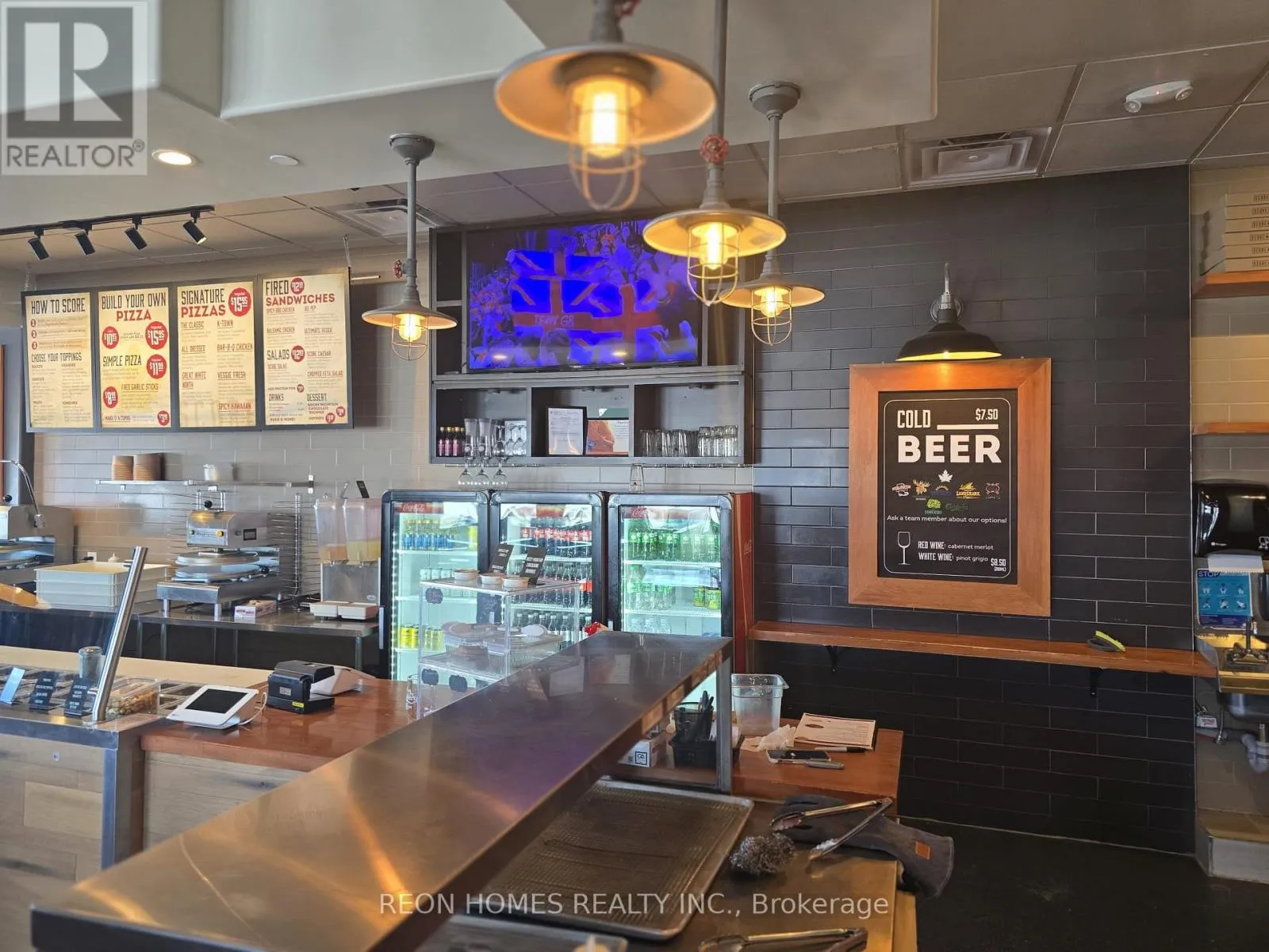 Cross Streets: North Front & Tracey. ** Directions: -. "OPTION TO REBRAND IT TO YOUR OWN CONCEPT." Pizza restaurant for sale in a prime, high-traffic location on Front Street in Belleville. This 2,500 sq ft space is beautifully set up and fully equipped with quality equipment, making it a true turnkey opportunity. It features an LLBO license for 70 indoor seats plus an approved patio with 40 seats. Located in a busy plaza with strong anchor tenants and plenty of parking, the location offers steady customer flow. Rent is $8,136 (TMI & HST included), with 4.5 years remaining on the lease and a 5-year renewal option. (id:27476)