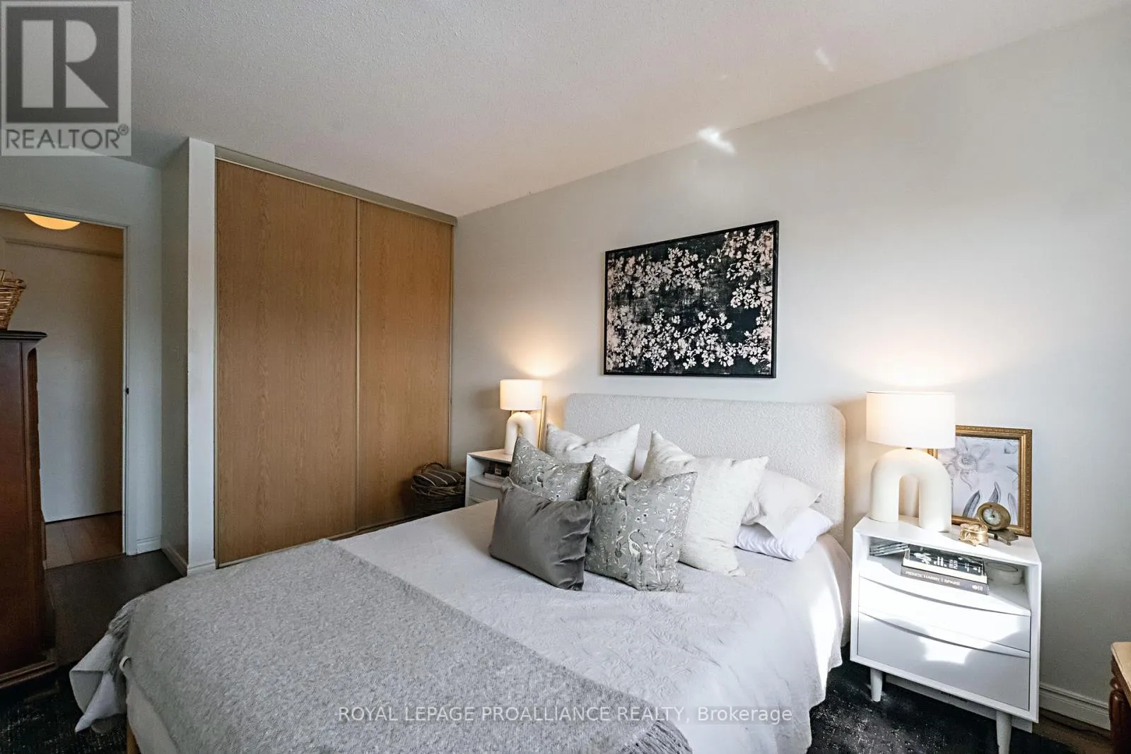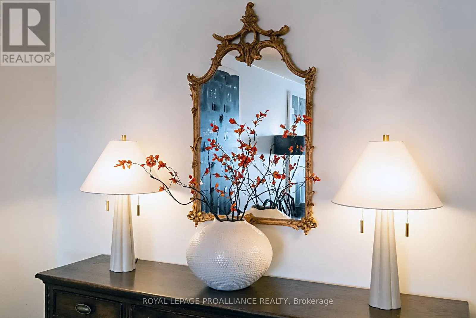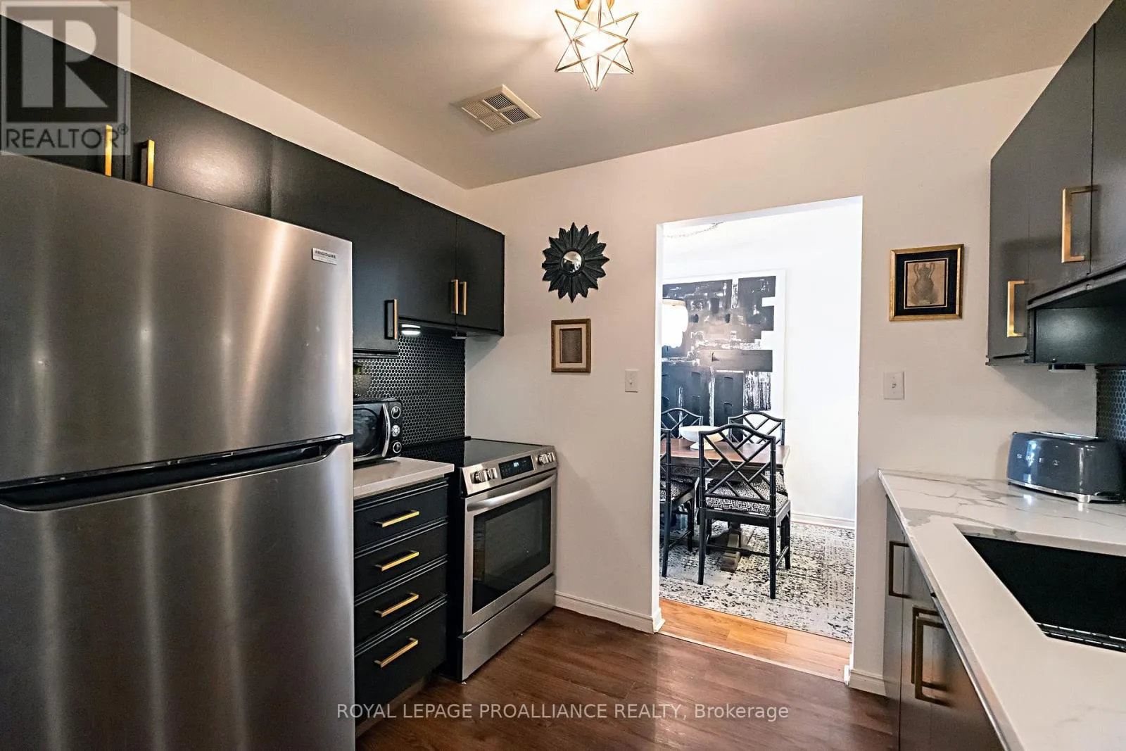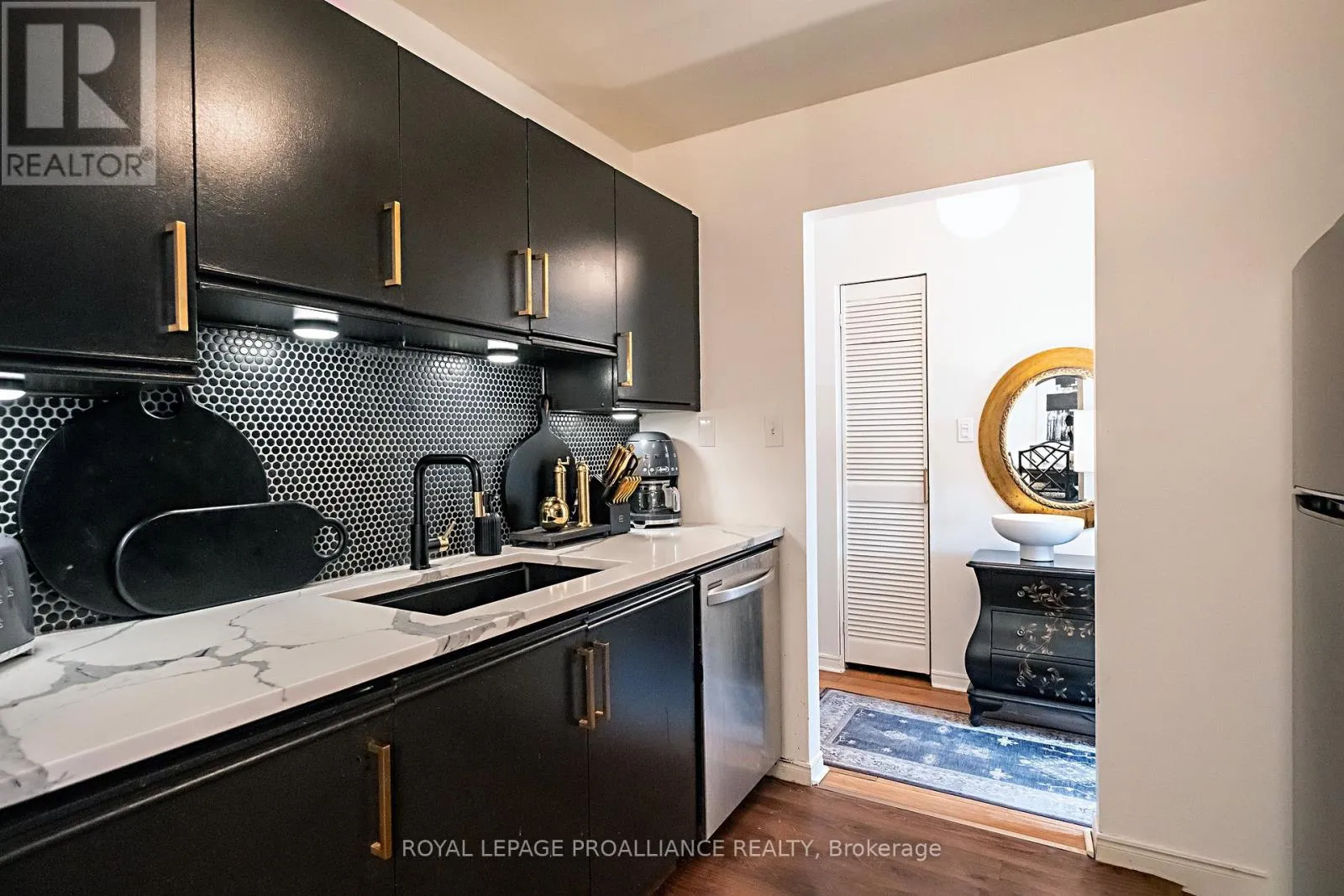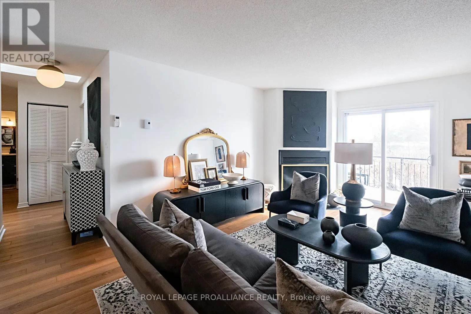Cross Streets: North Park Street and Bell Boulevard/Veterans Bridge. ** Directions: College Street, North on North Park or Bell Blvd, South on North Park. This is not your ordinary top floor unit. With all of its class and elegance, one might think they have stepped into a BIG city condo. Let's begin with the spacious foyer featuring a skylight which adds an abundance of natural lighting in the hallway. Moving into the magnificent kitchen with so many upgrades. Stunning black cabinets; antique gold hardware; under cabinet motion lighting; large farmers sink with designer faucet and gorgeous quartz countertops. The kitchen appliances are included , per the Inclusions list. The formal dining room offers plenty of space for a large table and buffet open to the generous living room which is complemented by a wood burning fireplace and patio doors to the balcony, overlooking the pool. We have included some summer pictures so you can feel the warmth. Both bedrooms offer plenty of floor and closet space and are serviced by a lovely 4 piece bathroom also with gold hardware. This unit includes an in-suite laundry room. The washer and dryer are both included. Looking at the pictures , I am sure you will note the neutral palette and how well this unit has been loved and cared for with charming lighting, some fresh paint and flooring. The complex itself is a very popular one with its close proximity to many amenities and secured front entrance. Visitors will need to be buzzed in. The inground pool is a nice summer treat. Nothing to do here but move in and Enjoy ! Some measurements less jogs. (id:27476)