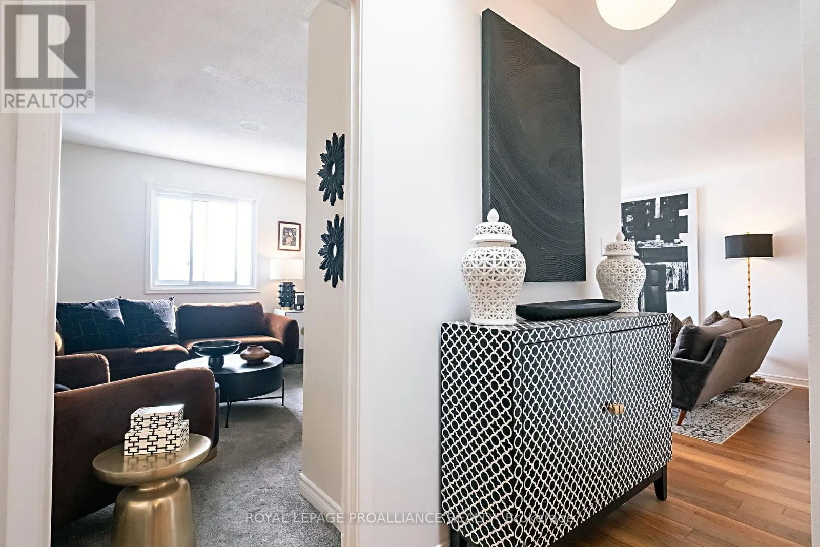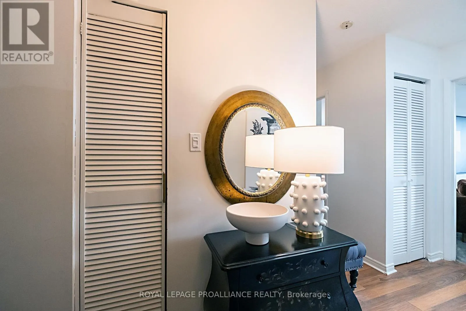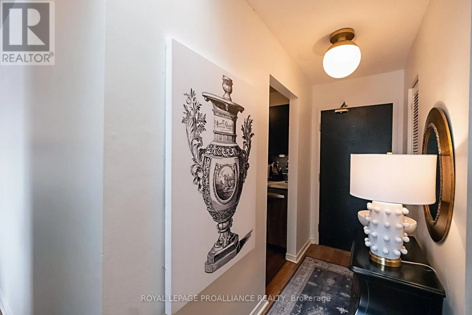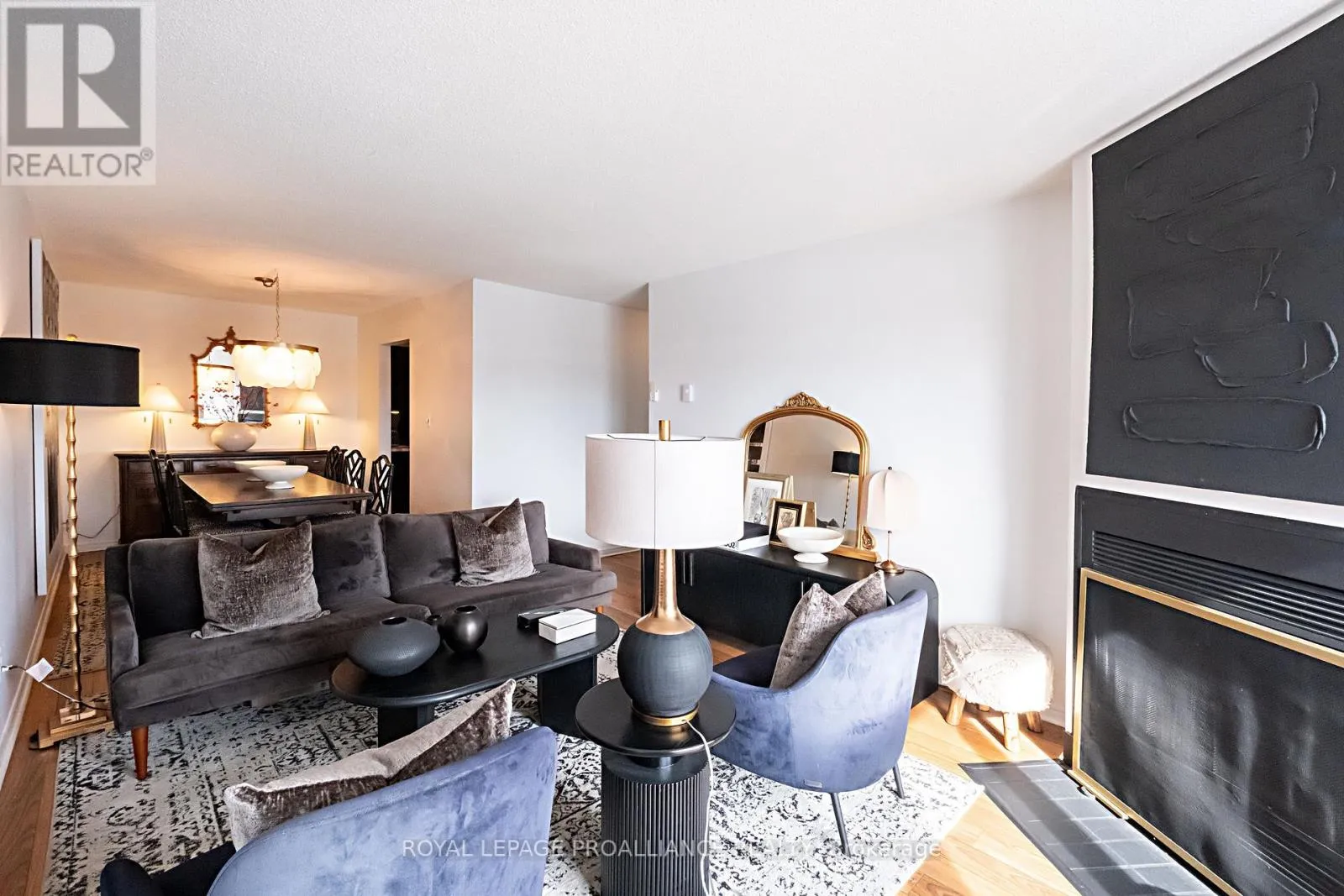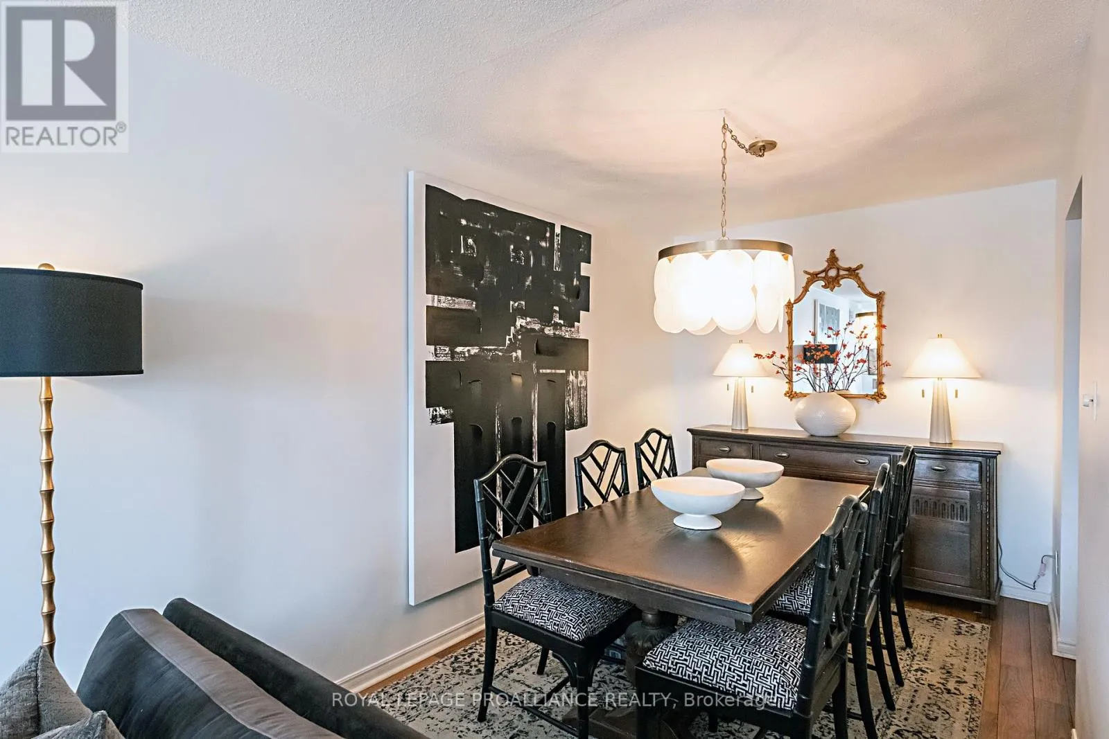 Cross Streets: North Park Street and Bell Boulevard/Veterans Bridge. ** Directions: College Street, North on North Park or Bell Blvd, South on North Park. This is not your ordinary top floor unit. With all of its class and elegance, one might think they have stepped into a BIG city condo. Let's begin with the spacious foyer featuring a skylight which adds an abundance of natural lighting in the hallway. Moving into the magnificent kitchen with so many upgrades. Stunning black cabinets; antique gold hardware; under cabinet motion lighting; large farmers sink with designer faucet and gorgeous quartz countertops. The kitchen appliances are included , per the Inclusions list. The formal dining room offers plenty of space for a large table and buffet open to the generous living room which is complemented by a wood burning fireplace and patio doors to the balcony, overlooking the pool. We have included some summer pictures so you can feel the warmth. Both bedrooms offer plenty of floor and closet space and are serviced by a lovely 4 piece bathroom also with gold hardware. This unit includes an in-suite laundry room. The washer and dryer are both included. Looking at the pictures , I am sure you will note the neutral palette and how well this unit has been loved and cared for with charming lighting, some fresh paint and flooring. The complex itself is a very popular one with its close proximity to many amenities and secured front entrance. Visitors will need to be buzzed in. The inground pool is a nice summer treat. Nothing to do here but move in and Enjoy ! Some measurements less jogs. (id:27476)