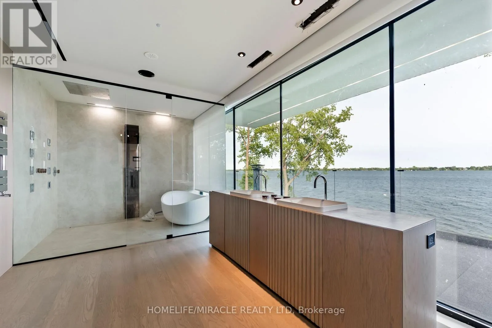 Old Highway 2/Wallbridge loaylist Rd Experience modern luxury in this nearly 5,000 sq. ft. architectural masterpiece overlooking the stunning Bay of Quinte. Offering approximately 6 bedrooms and 5 bathrooms, this exceptional waterfront residence blends striking design with everyday functionality-all just 1.5 hours from. Toronto.Soaring floor-to-ceiling windows flood the home with natural light, highlighting a dramatic floating staircase, curated European lighting, and imported designer countertops. The expansive chef's kitchen is an entertainer's dream, complete with premium finishes, abundant workspace, and seamless flow into the principal living and dining areas.Step onto private balconies and take in panoramic water views, or relax indoors with heated porcelain floors underfoot and spa-inspired designer bathrooms. Every detail reflects thoughtful craftsmanship and elevated architectural style.Additional features include a heated two-car garage with direct interior access and a durable heated concrete driveway that enhances both curb appeal and convenience.Whether hosting unforgettable gatherings or enjoying peaceful waterfront sunsets, this one-of-a-kind smart home offers a refined lifestyle defined by luxury, comfort, and breathtaking natural beauty. (id:27476)