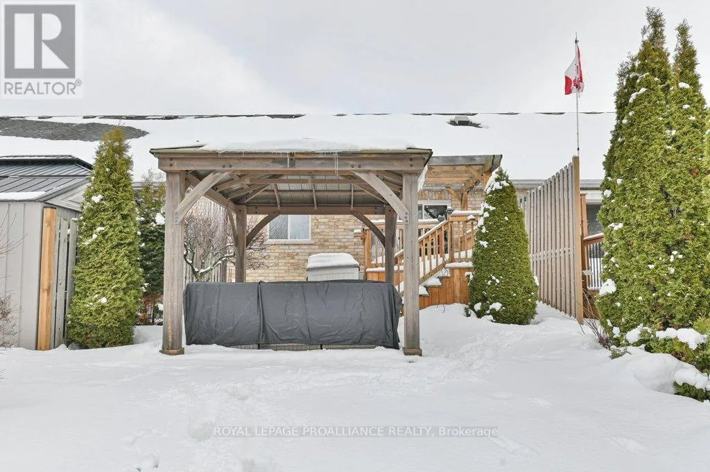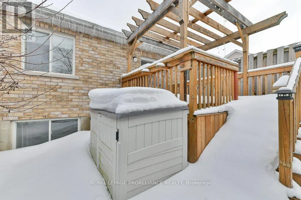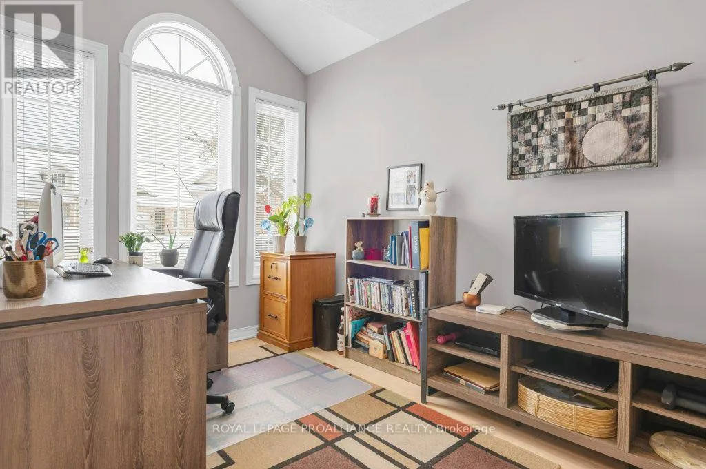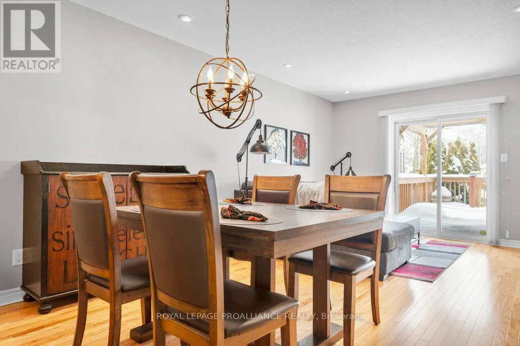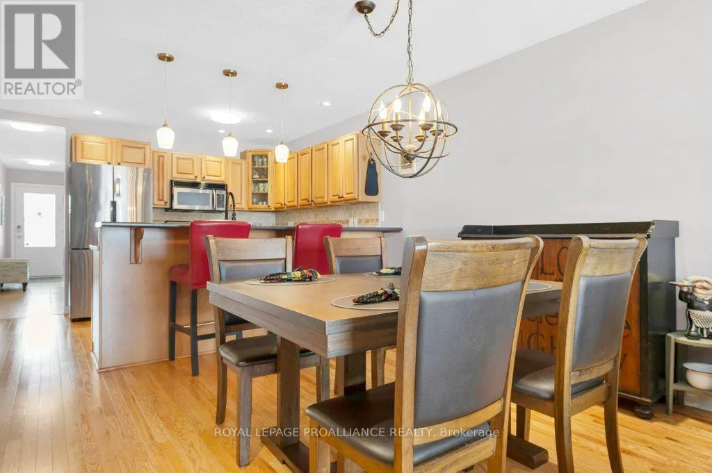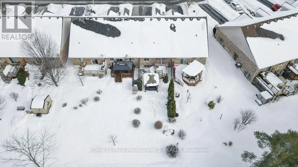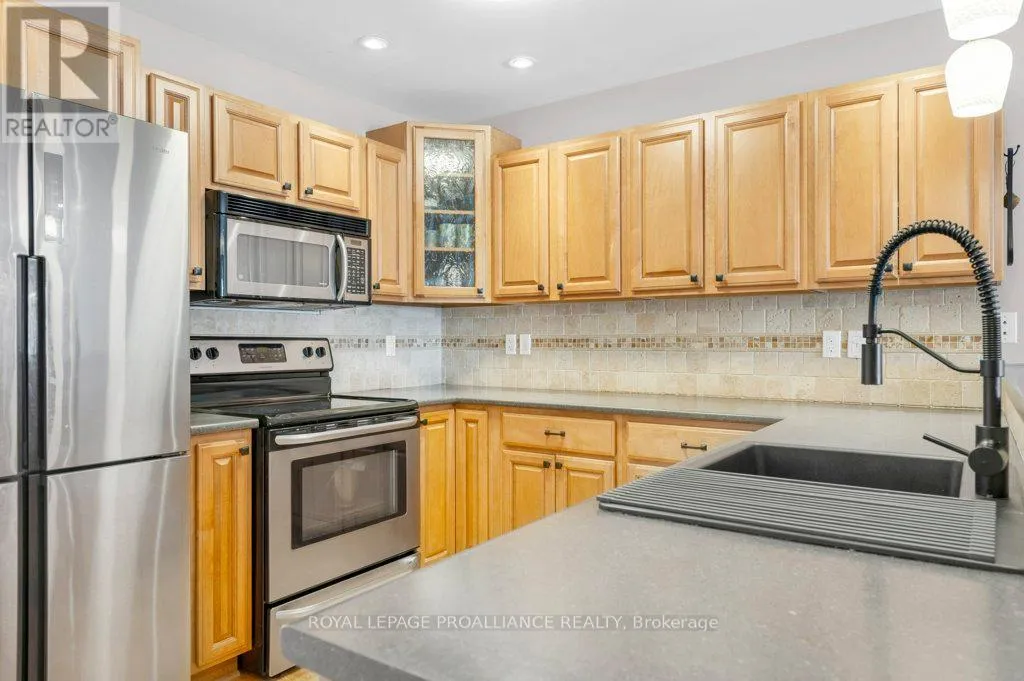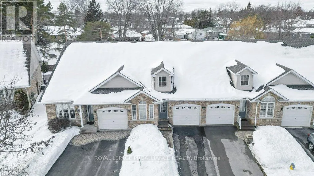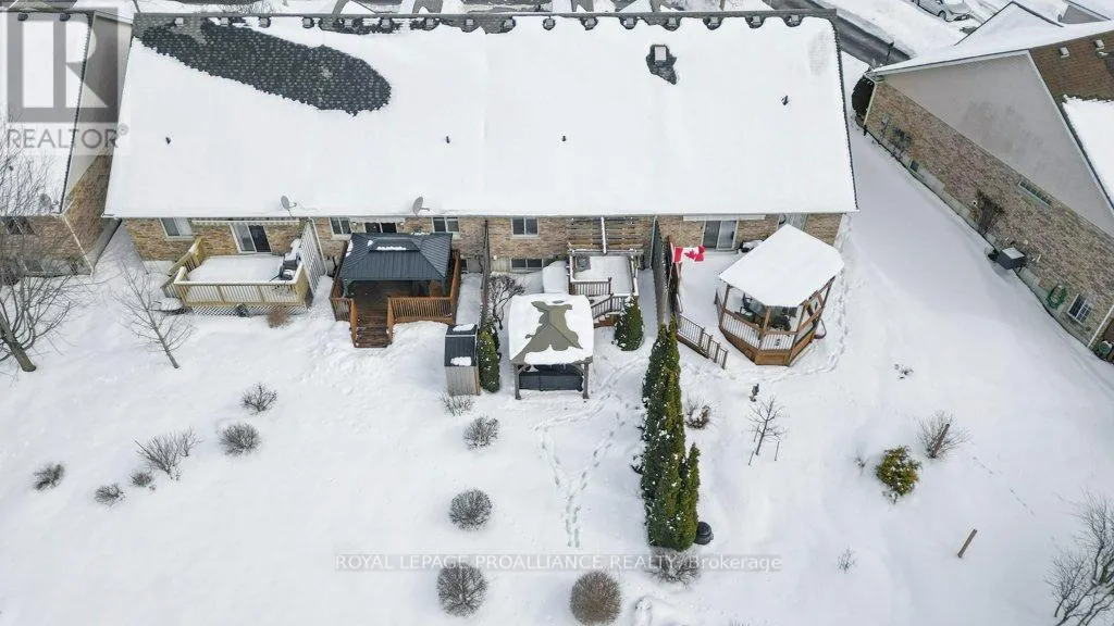 College St W / Sarah Crt Beautiful Freehold Bungalow Townhome in the Heart of Belleville! This immaculate 2+1 bedroom bungalow townhome with a single-car garage offers the perfect blend of comfort, style, and convenience. Ideally located just 10 minutes to the 401, minutes to the hospital, and a short drive to Prince Edward County-renowned for its wineries, culinary hotspots, and beautiful beaches. The main floor features hardwood floors throughout, a new maple kitchen with an island and matching appliances, and an open-concept living/dining area. Includes all appliances. The front bedroom is currently being used as an office, offering great versatility. Patio doors off the living room open to a beautifully landscaped backyard with tiered decking, a large patio, and a gazebo-perfect for entertaining or relaxing. The updated main floor bathroom offers a walk-in shower, and the convenience of main floor laundry is an added bonus. The fully finished lower level features a cozy family room with an electric fireplace, a large den, an additional bedroom, a three-piece bath, and an oversized storage/laundry area. With its excellent layout and separate spaces, the lower level could easily be converted into an in-law suite. This move-in-ready home checks all the boxes-prime location, thoughtful updates, flexible layout options, and exceptional outdoor living. (id:27476)
