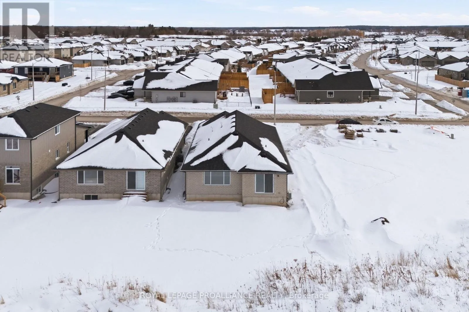 Cross Streets: Hastings Park Drive/Sienna Avenue. ** Directions: West on Dundas St, right on Sienna Avenue, right on Hastings Park Drive. A purpose built DUPLEX by Duvanco Homes is complete and ready for occupancy! This bungalow offers two fully independent living suites, ideal for multi-generational living or rental income. The main floor unit features a bright great room with coffered ceilings, a custom kitchen with corner pantry and generous island, a primary bedroom complete with a walk in closet and ensuite with double sinks and a glass and tile shower, two more guest bedrooms, a full bath and laundry/utility room. The lower level includes its own separate entrance, a large living room, a generous kitchen, two bedrooms, a full bath, large storage room and a laundry/utility room. The upper unit is serviced by a forced air gas furnace and A/C while the lower unit has an energy efficient heat pump, both units share municipal, hydro and gas meters. Every Duvanco home undergoes a rigorous Holmes Approved three-stage inspection, giving you peace of mind with certification and detailed reporting. Outside, enjoy the fully sodded yard, professional landscaping, and double-wide driveway. The neighbourhood shines with walking paths, pickle ball courts, Potter's Creek Playground, and proximity to Loyalist College and Potters Creek Conservation area. (id:27476)
