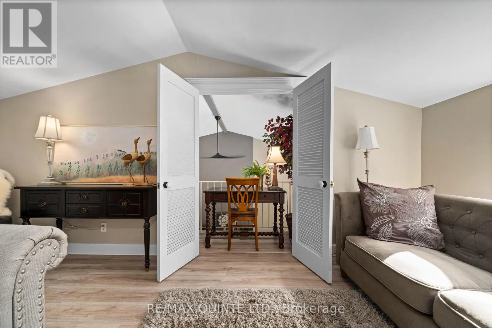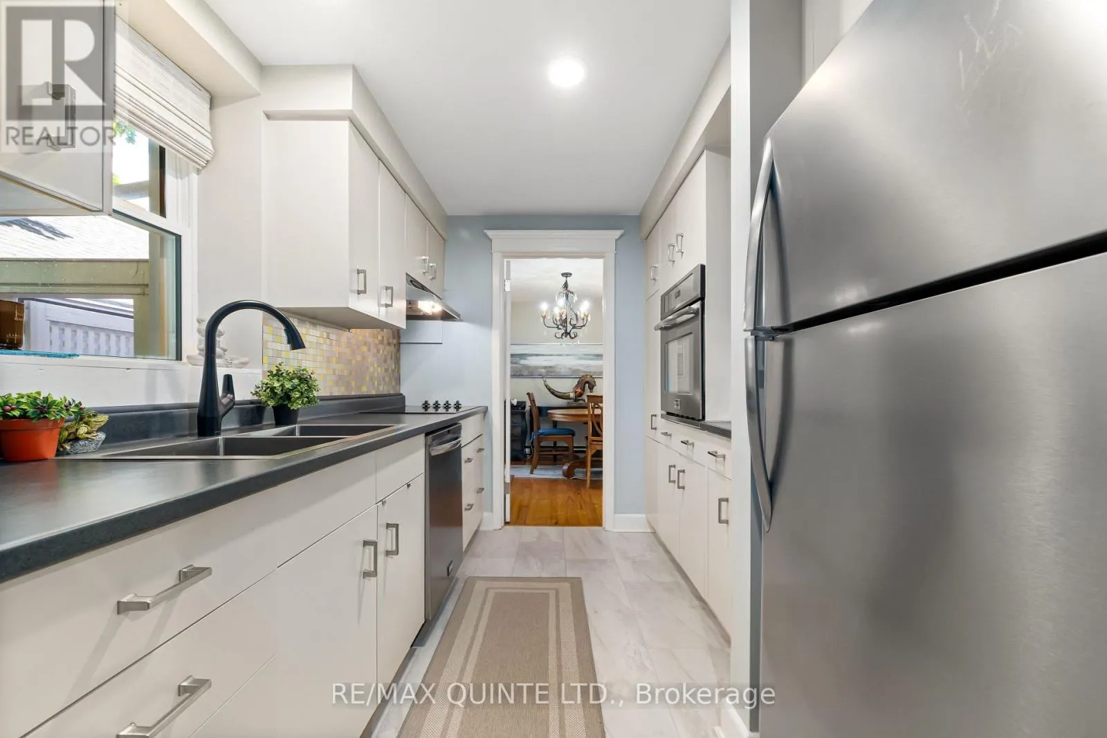 Cross Streets: Bridge St E/John. ** Directions: From Bridge St E, South on John St. Discover the Carriage House at Faulkonbridge Estate - a truly one-of-a-kind residence that blends timeless character with modern convenience. Whether you're a young professional, a first-time buyer, or someone looking to downsize without giving up charm or comfort, this home offers a versatile space designed to fit your lifestyle. Step inside to a stunning family room featuring a soaring cathedral ceiling, an impressive stone fireplace, and a dramatic picture window that floods the space with natural light. Three sets of garden doors open onto a private, full-length patio - a peaceful outdoor retreat with its own secondary entrance. The dining area flows seamlessly into the galley kitchen, equipped with built-in appliances and ample storage. A main-floor powder room adds to the everyday practicality. Up the charming spiral staircase, a loft-style bedroom awaits, complete with an ensuite bath, laundry, and a balcony overlooking the great room. The primary suite features two closets, a generous linen closet, and additional storage tucked into the laundry space. Perfectly located just steps from Belleville General Hospital and Downtown Belleville, you'll enjoy easy access to shops, restaurants, theatres, parks, trails, and the waterfront. Picture weekends wandering through Corby Rose Garden, browsing the farmers market, or taking leisurely strolls along the waterfront. Additional perks include a storage locker and exclusive garage space. Don't miss this rare opportunity to own a piece of Belleville's history while enjoying the comfort and convenience of modern condo living in an unbeatable location. (id:27476)
