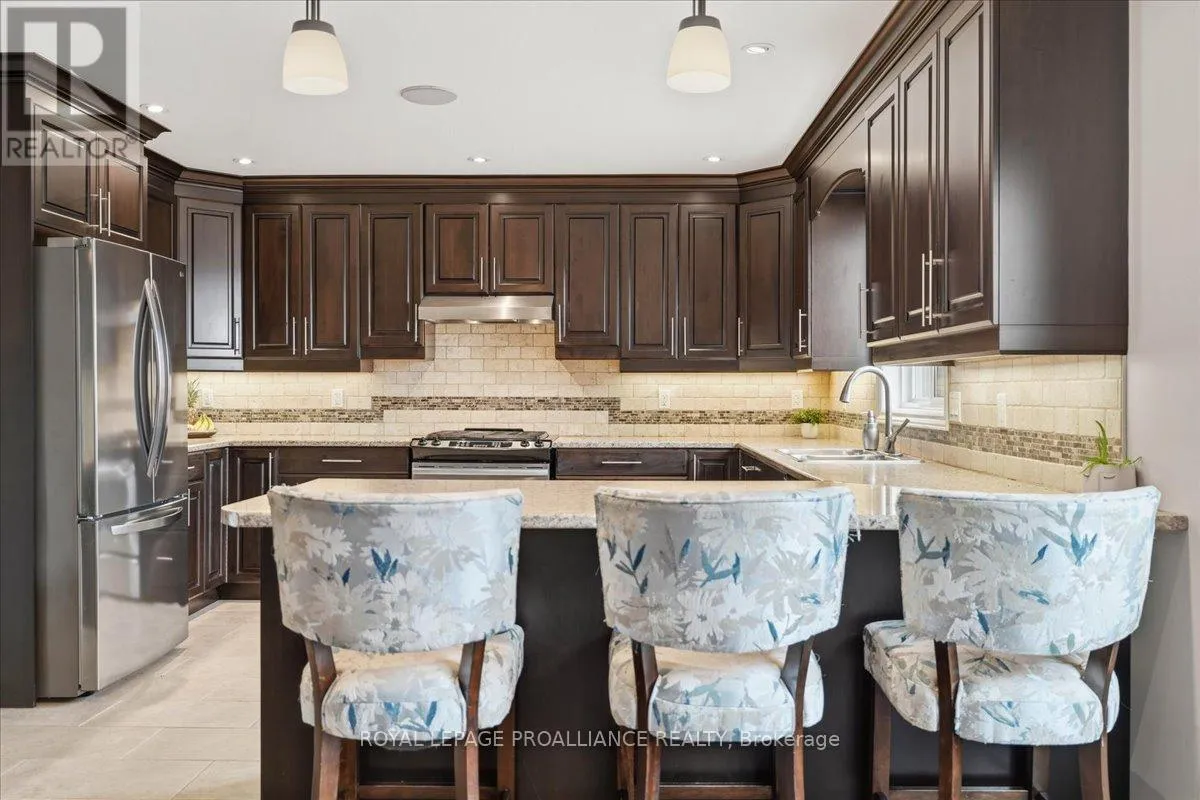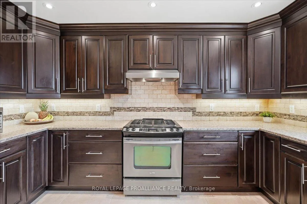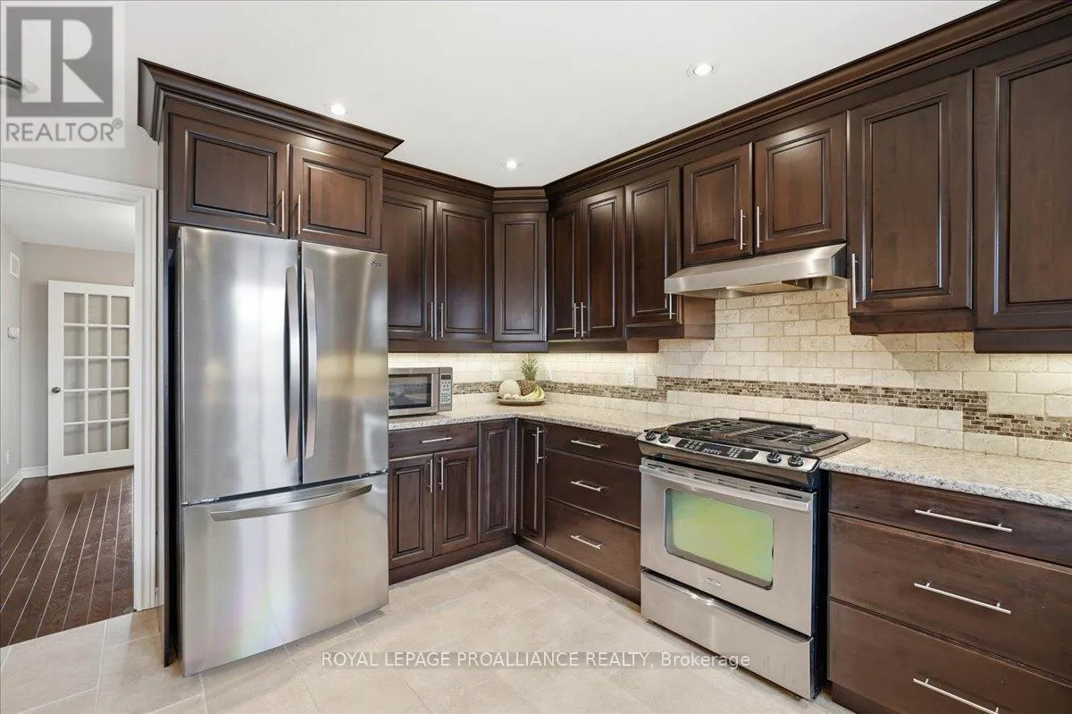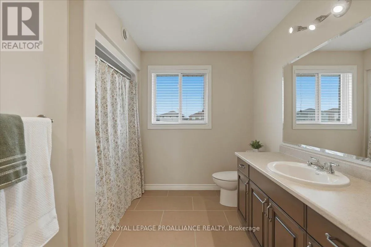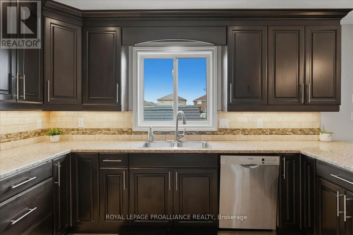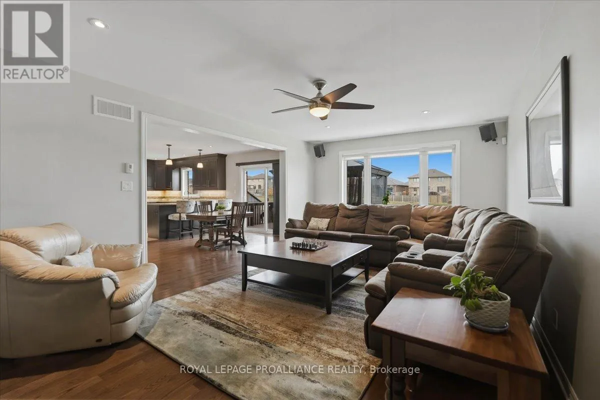 Cross Streets: Farnham Rd & Kipling Drive. ** Directions: Farnham Rd to Kipling Dr. Welcome to this stunning two-storey, all-brick executive home backing onto tranquil green space in a highly sought-after, upscale, family-friendly subdivision. Just minutes from Highway 401 and close to a wide range of amenities, this quality-built Staikos home offers exceptional curb appeal with its charming covered front porch and beautiful exterior.Step into the spacious foyer, where you are greeted by a warm and inviting layout. The foyer flows seamlessly into the formal living and dining rooms, perfect for hosting gatherings, or leads directly into the well-appointed kitchen,featuring abundant cabinetry, a large peninsula, and a bright eating area. The open-concept family room, adjacent to the kitchen, provides a comfortable and airy space for everyday living. Patio doors from the eating area open onto a generous deck overlooking the private backyard, ideal for outdoor dining or relaxation. Large windows throughout the main level fill the home with natural light, highlighting the hardwood and ceramic flooring. A beautiful stair case leads to the second level, where you'll find the generous primary suite, complete with a walk-in closet and a stunning en-suite showcasing a glass and tile shower. Three additional spacious bedrooms and a well-appointed 4-piece main bathroom provide plenty of room for family or guests. The convenience of second-level laundry completes this floor. The fully finished lower level offers exceptional additional living space, including a large recreation room, two sizeable bedrooms, a full bathroom, and ample storage-ideal for extended family, teens, or guests. Additional features include a two-car garage with inside entry to the mudroom, perfect for busy family life.The subdivision itself offers wonderful lifestyle perks, including a large community park and scenic walking trails for residents to enjoy. This impressive home offers comfort, space, and style in a premier location-everything your family has been looking for! (id:27476)