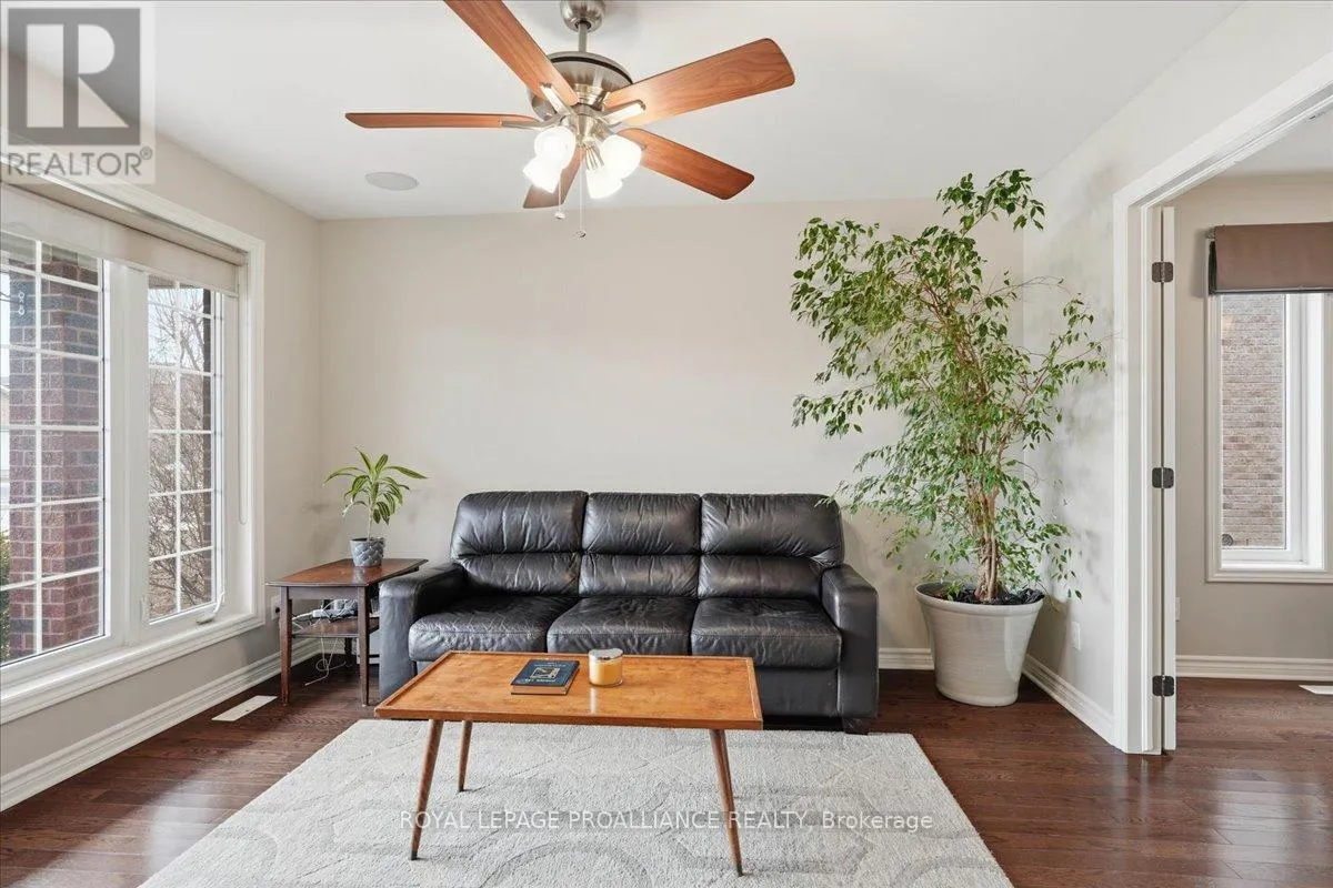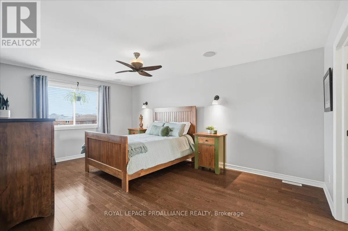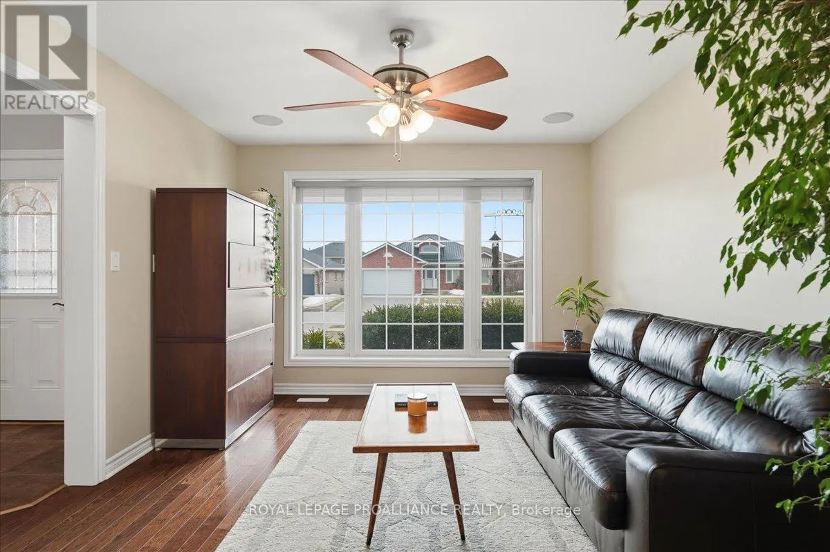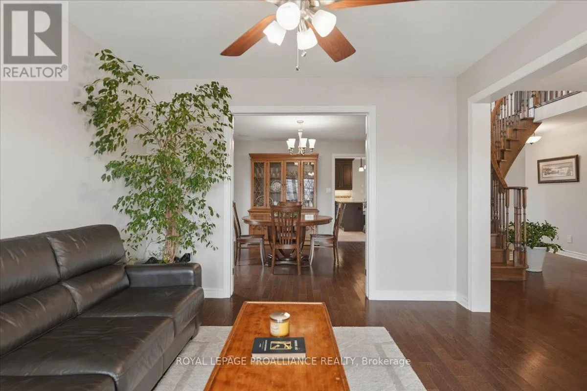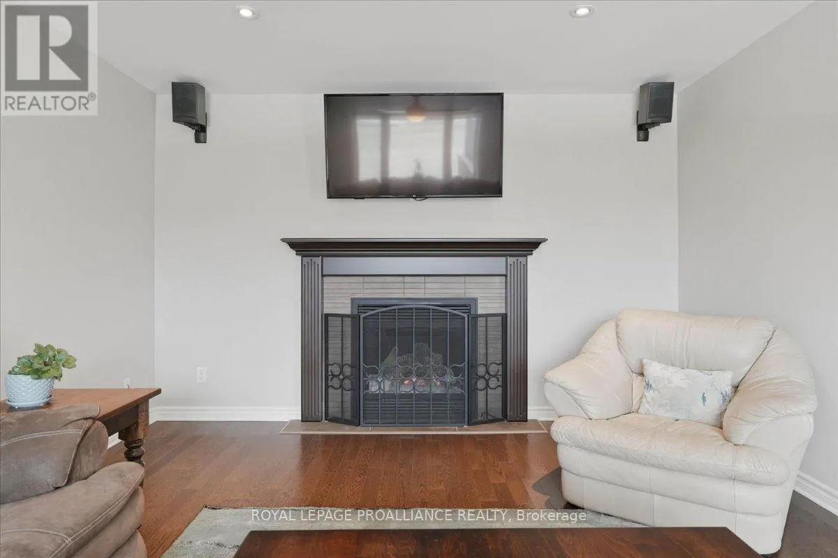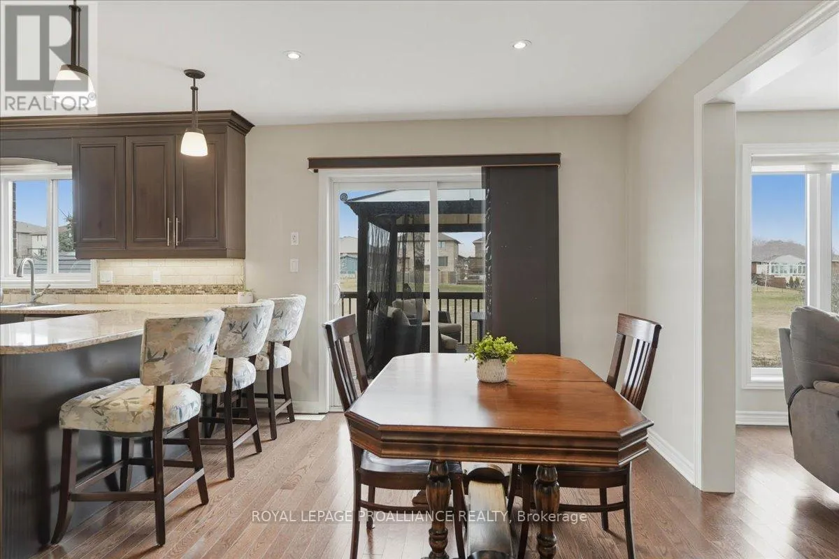 Cross Streets: Farnham Rd & Kipling Drive. ** Directions: Farnham Rd to Kipling Dr. Welcome to this stunning two-storey, all-brick executive home backing onto tranquil green space in a highly sought-after, upscale, family-friendly subdivision. Just minutes from Highway 401 and close to a wide range of amenities, this quality-built Staikos home offers exceptional curb appeal with its charming covered front porch and beautiful exterior.Step into the spacious foyer, where you are greeted by a warm and inviting layout. The foyer flows seamlessly into the formal living and dining rooms, perfect for hosting gatherings, or leads directly into the well-appointed kitchen,featuring abundant cabinetry, a large peninsula, and a bright eating area. The open-concept family room, adjacent to the kitchen, provides a comfortable and airy space for everyday living. Patio doors from the eating area open onto a generous deck overlooking the private backyard, ideal for outdoor dining or relaxation. Large windows throughout the main level fill the home with natural light, highlighting the hardwood and ceramic flooring. A beautiful stair case leads to the second level, where you'll find the generous primary suite, complete with a walk-in closet and a stunning en-suite showcasing a glass and tile shower. Three additional spacious bedrooms and a well-appointed 4-piece main bathroom provide plenty of room for family or guests. The convenience of second-level laundry completes this floor. The fully finished lower level offers exceptional additional living space, including a large recreation room, two sizeable bedrooms, a full bathroom, and ample storage-ideal for extended family, teens, or guests. Additional features include a two-car garage with inside entry to the mudroom, perfect for busy family life.The subdivision itself offers wonderful lifestyle perks, including a large community park and scenic walking trails for residents to enjoy. This impressive home offers comfort, space, and style in a premier location-everything your family has been looking for! (id:27476)