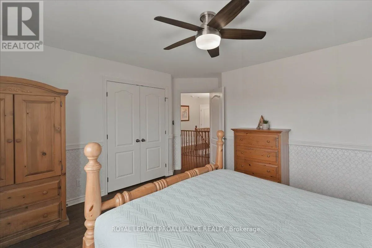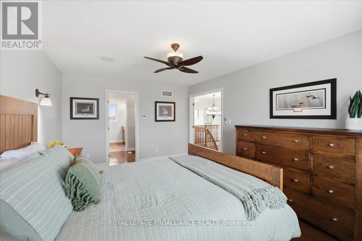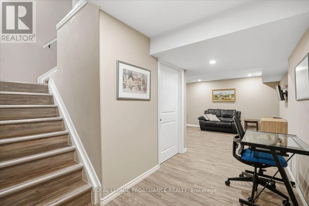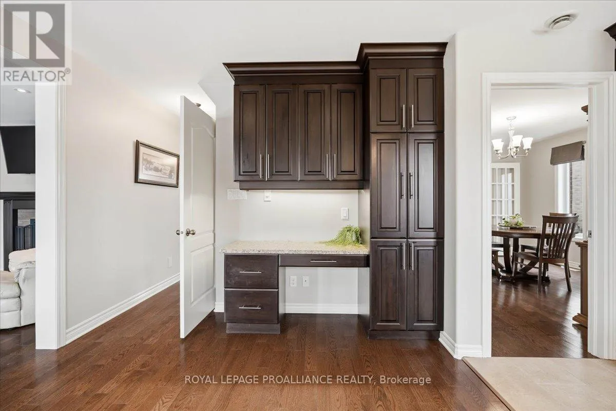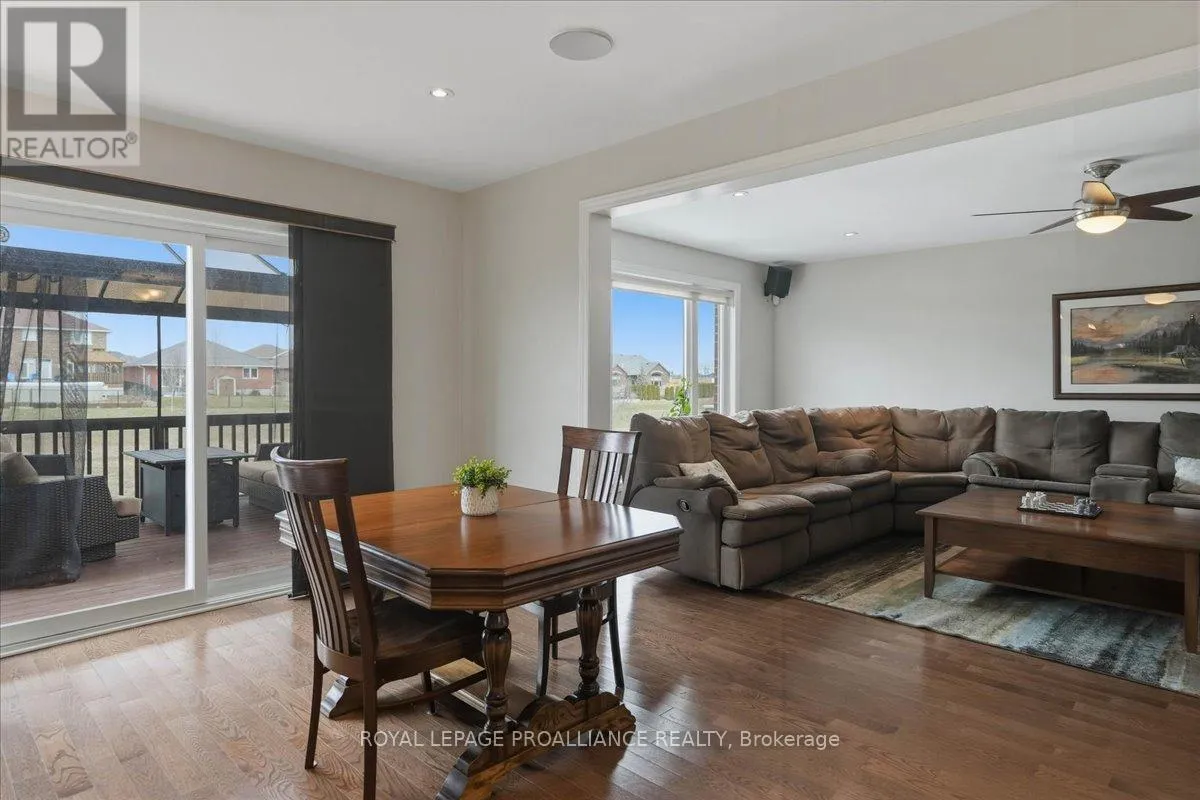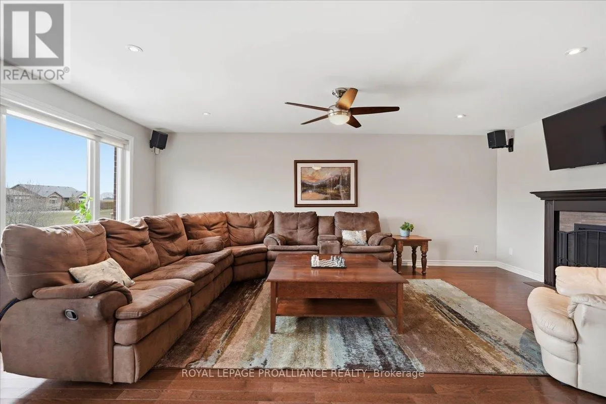 Cross Streets: Farnham Rd & Kipling Drive. ** Directions: Farnham Rd to Kipling Dr. Welcome to this stunning two-storey, all-brick executive home backing onto tranquil green space in a highly sought-after, upscale, family-friendly subdivision. Just minutes from Highway 401 and close to a wide range of amenities, this quality-built Staikos home offers exceptional curb appeal with its charming covered front porch and beautiful exterior.Step into the spacious foyer, where you are greeted by a warm and inviting layout. The foyer flows seamlessly into the formal living and dining rooms, perfect for hosting gatherings, or leads directly into the well-appointed kitchen,featuring abundant cabinetry, a large peninsula, and a bright eating area. The open-concept family room, adjacent to the kitchen, provides a comfortable and airy space for everyday living. Patio doors from the eating area open onto a generous deck overlooking the private backyard, ideal for outdoor dining or relaxation. Large windows throughout the main level fill the home with natural light, highlighting the hardwood and ceramic flooring. A beautiful stair case leads to the second level, where you'll find the generous primary suite, complete with a walk-in closet and a stunning en-suite showcasing a glass and tile shower. Three additional spacious bedrooms and a well-appointed 4-piece main bathroom provide plenty of room for family or guests. The convenience of second-level laundry completes this floor. The fully finished lower level offers exceptional additional living space, including a large recreation room, two sizeable bedrooms, a full bathroom, and ample storage-ideal for extended family, teens, or guests. Additional features include a two-car garage with inside entry to the mudroom, perfect for busy family life.The subdivision itself offers wonderful lifestyle perks, including a large community park and scenic walking trails for residents to enjoy. This impressive home offers comfort, space, and style in a premier location-everything your family has been looking for! (id:27476)