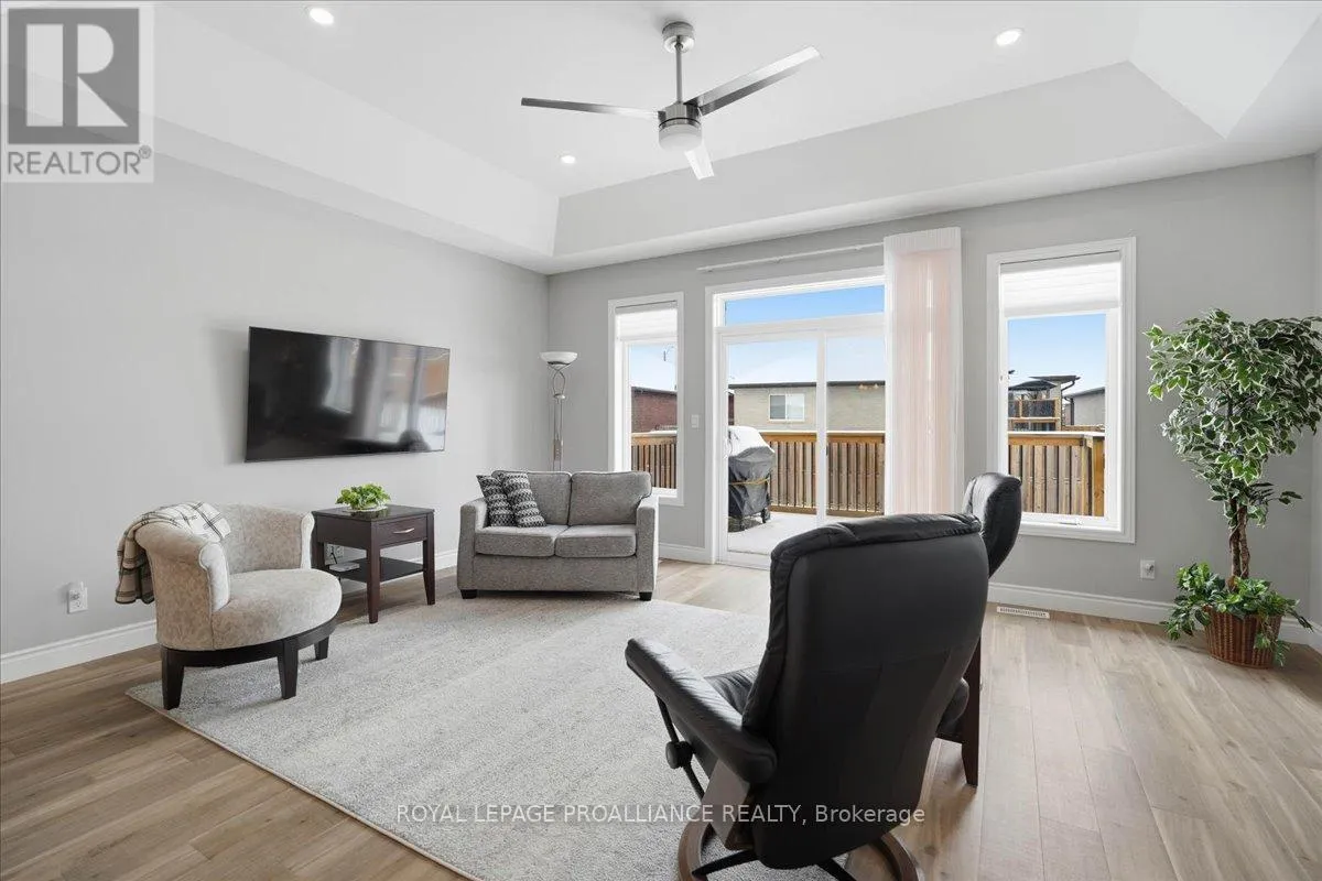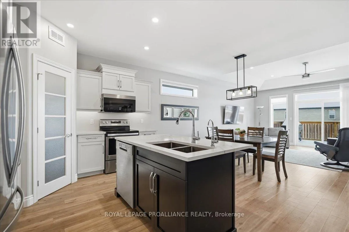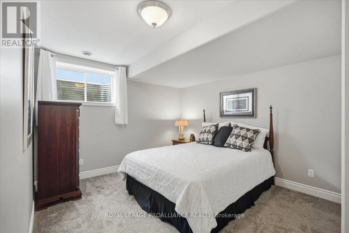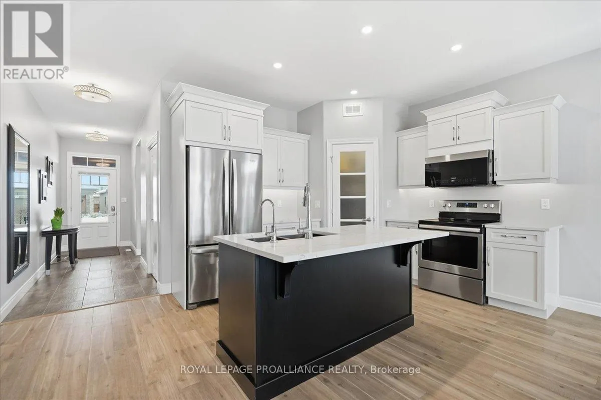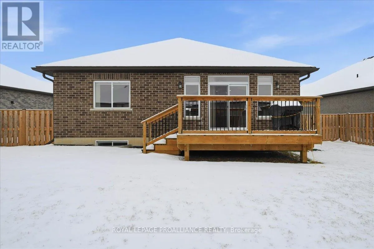 Cross Streets: Hampton Ridge Dr & Covington Crescent. ** Directions: Maitland Dr to Hampton Ridge Dr, left on Covington Cres then right to stay on Covington Cres or Sidney St to Kempton Ave to Hartford St/Corrigan St then left on Covington Cres. Welcome to easy living in the sought after Settlers Ridge subdivision. This spacious 4 bedroom, 3 bath brick bungalow with double garage, built in 2020, offers modern design, quality finishes, and a fully finished layout ideal for down sizers, families or anyone seeking low maintenance living - with no construction zone hassle. The beautifully landscaped front entry, framed by lilac and sunburst locust trees, along with the covered porch, creates a warm welcome for guests and the perfect spot to relax with your favourite beverage. Inside, the bright open concept main floor features a spacious kitchen with island and pantry, a dining area that flows effortlessly into the living room with coffered ceiling, and patio doors leading to the back deck - perfect for both everyday living and entertaining. Two bedrooms are located on the main level, including a generous primary suite with walk-in closet and 3-piece en-suite featuring a tile and glass shower. The second bedroom which would also make a great home office has its own walk-in closet. A 4-piece bathroom, plus convenient inside entry from the insulated garage into the laundry room, add to the home's thoughtful and functional design. The builder finished basement extends the living space with two additional bedrooms, a 4-piece bathroom, a spacious rec room, and a large storage/utility/workshop room - ideal for teens, guests,hobbies, or a growing family. Outside, the irrigation system helps make maintenance a breeze, while the fully fenced backyard with gas line for the BBQ offers plenty of room to relax, garden, or let children and pets play. Move-in ready and impeccably maintained, with all appliances and BBQ included, this beautiful home delivers modern comfort in a fantastic neighbourhood close to parks, shopping, and all the amenities Belleville has to offer. (id:27476)