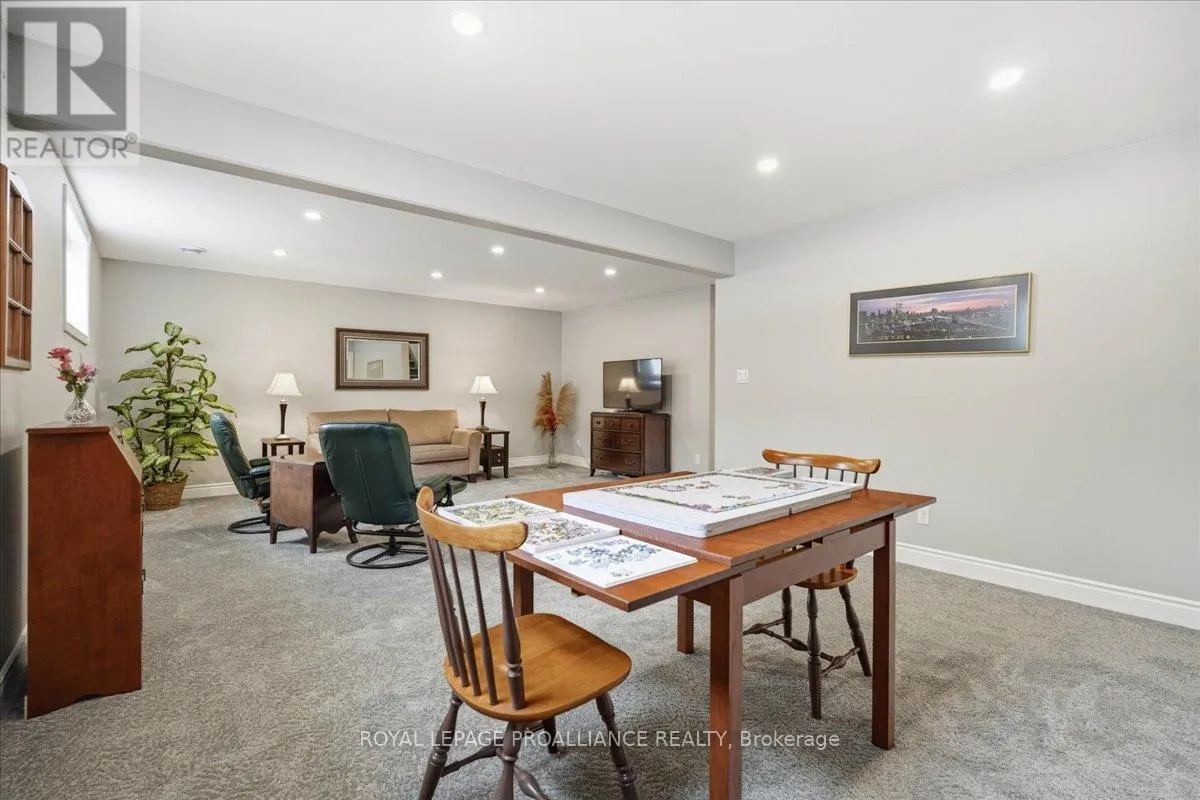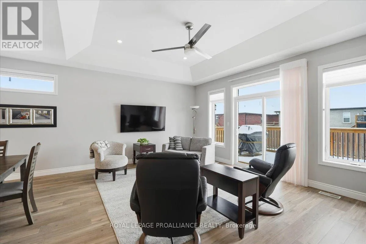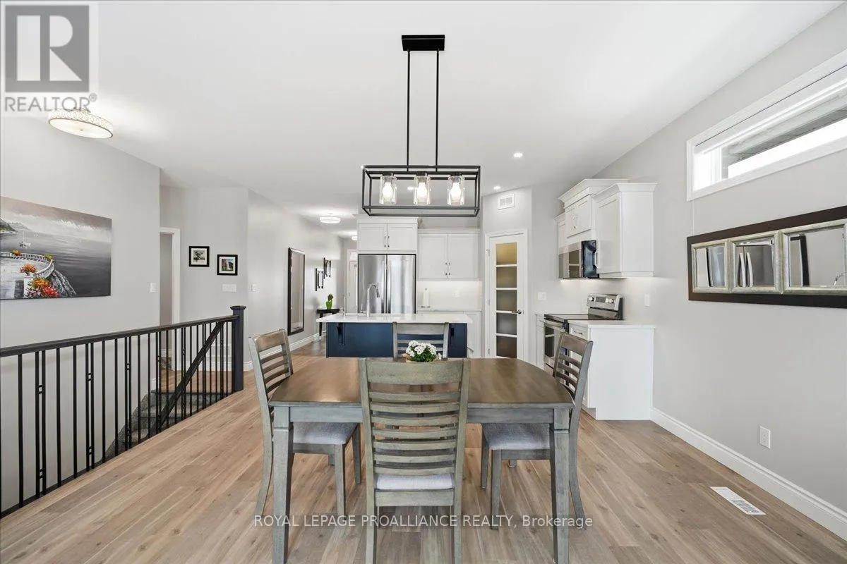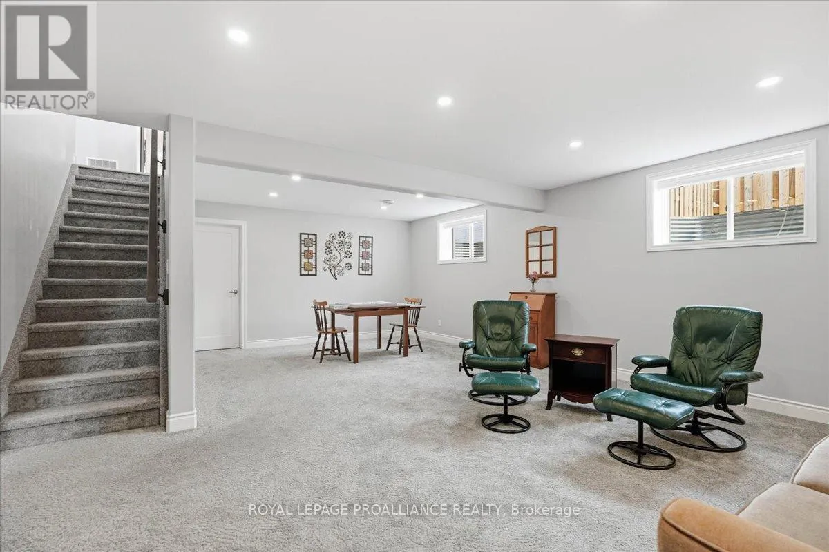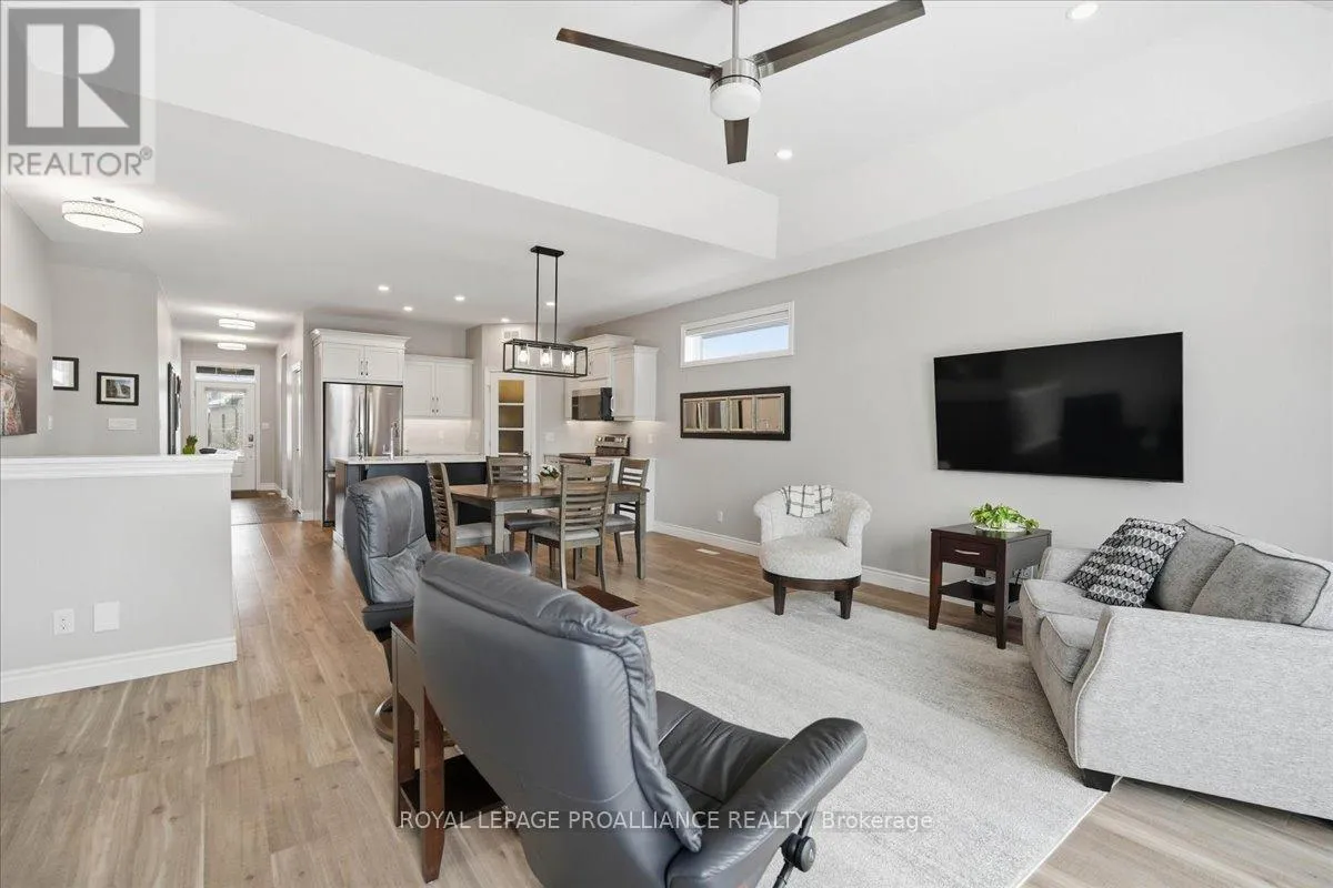 Cross Streets: Hampton Ridge Dr & Covington Crescent. ** Directions: Maitland Dr to Hampton Ridge Dr, left on Covington Cres then right to stay on Covington Cres or Sidney St to Kempton Ave to Hartford St/Corrigan St then left on Covington Cres. Welcome to easy living in the sought after Settlers Ridge subdivision. This spacious 4 bedroom, 3 bath brick bungalow with double garage, built in 2020, offers modern design, quality finishes, and a fully finished layout ideal for down sizers, families or anyone seeking low maintenance living - with no construction zone hassle. The beautifully landscaped front entry, framed by lilac and sunburst locust trees, along with the covered porch, creates a warm welcome for guests and the perfect spot to relax with your favourite beverage. Inside, the bright open concept main floor features a spacious kitchen with island and pantry, a dining area that flows effortlessly into the living room with coffered ceiling, and patio doors leading to the back deck - perfect for both everyday living and entertaining. Two bedrooms are located on the main level, including a generous primary suite with walk-in closet and 3-piece en-suite featuring a tile and glass shower. The second bedroom which would also make a great home office has its own walk-in closet. A 4-piece bathroom, plus convenient inside entry from the insulated garage into the laundry room, add to the home's thoughtful and functional design. The builder finished basement extends the living space with two additional bedrooms, a 4-piece bathroom, a spacious rec room, and a large storage/utility/workshop room - ideal for teens, guests,hobbies, or a growing family. Outside, the irrigation system helps make maintenance a breeze, while the fully fenced backyard with gas line for the BBQ offers plenty of room to relax, garden, or let children and pets play. Move-in ready and impeccably maintained, with all appliances and BBQ included, this beautiful home delivers modern comfort in a fantastic neighbourhood close to parks, shopping, and all the amenities Belleville has to offer. (id:27476)