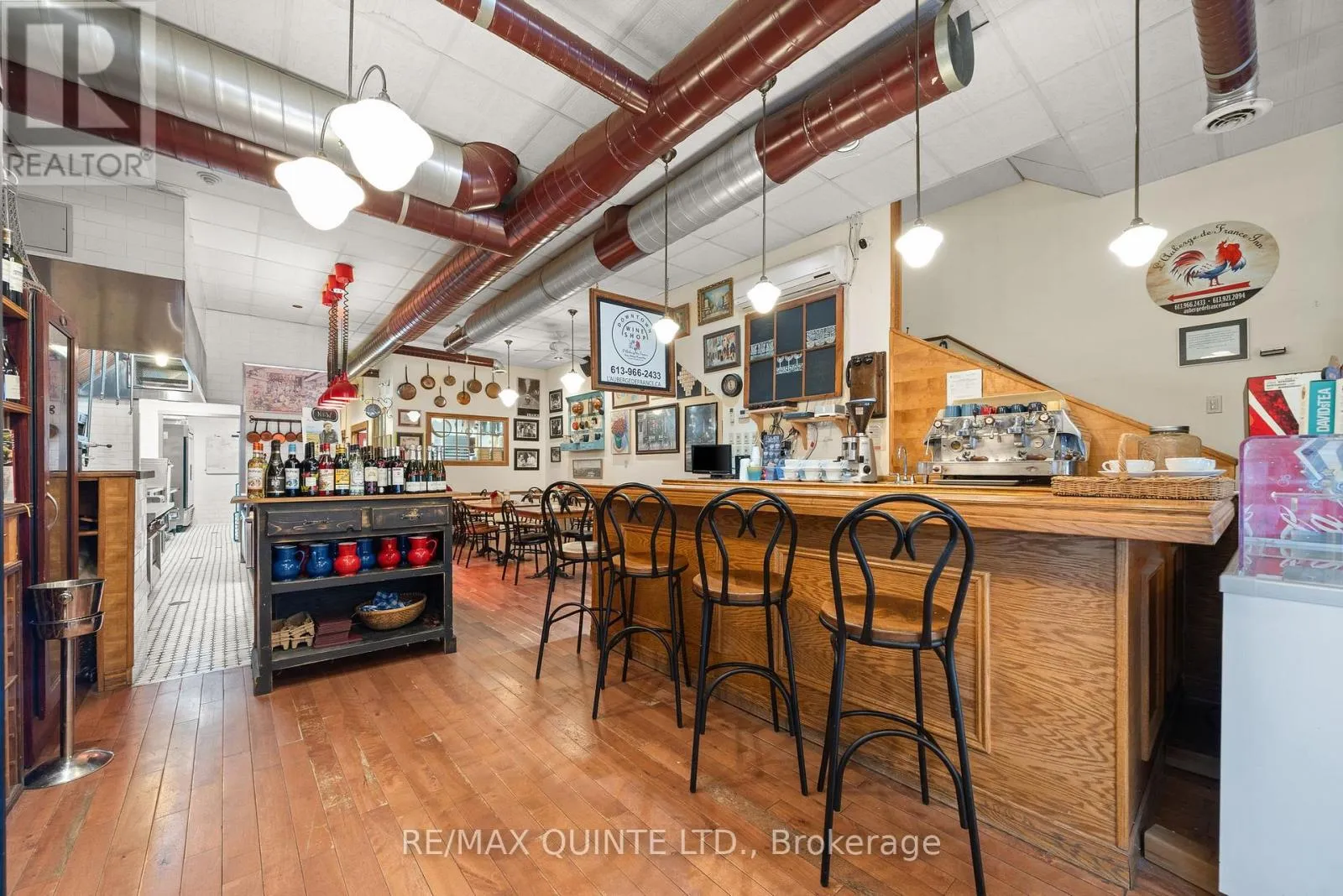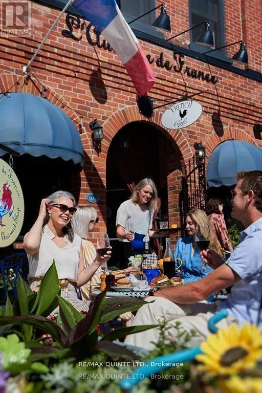 Front Street Very rarely does a flawlessly renovated building that contains not one, but two incredible businesses become available for sale. This 6700 square foot building contains not only one of the most well known restaurants in the Quinte area, but also a successful short term rental business known as the The Inn. The first floor is home to a 34 seat gourmet restaurant known as L'Auberge de France that has a thriving dine-in and takeaway business. A bustling front patio in the summertime, which increases the number of seats to 58 , is regularly filled at lunch time and on weekends. Multiple income streams are derived from dine-in, take out, two large freezer cases for make-at-home dinners, and wine sales. In recent years, as the owner has begun to think about retirement, the restaurant's schedule has been reduced to 4 days a week with only lunch service each day. This represents a HUGE UPSIDE OPPORTUNITY for a chef or restauranteur who wants to open in the evenings for dinner, stay open on additional weekdays, or cater events. One only needs to stop by during any lunch hour or Saturday morning to see the huge demand for additional hours that is present here among a large and loyal customer base. The layout of the main kitchen and the lengthy list of equipment included in this sale is a restaurateurs dream that would work well for any style of food or restaurant. An open concept layout lets the dining room and the Chef's kitchen blend seamlessly and function at maximum efficiency. The top two floors have been transformed into a two bedroom, two bath, 4000 sq ft one a kind AirBnb is so busy it is already booking late into 2026. As with the rest of the building, the seller undertook a full renovation down to the studs that has resulted in the creation of a one of a kind space that will provide income for years to come. On the third floor there is an additional space with its own private entrance that could potentially be converted into a second AirBnb or an owners suite. (id:27476)