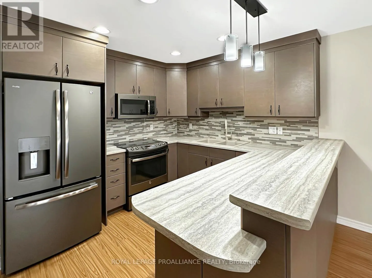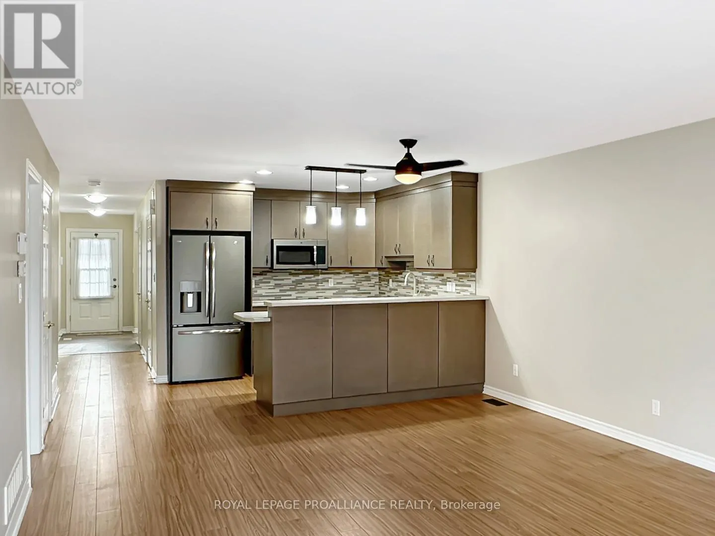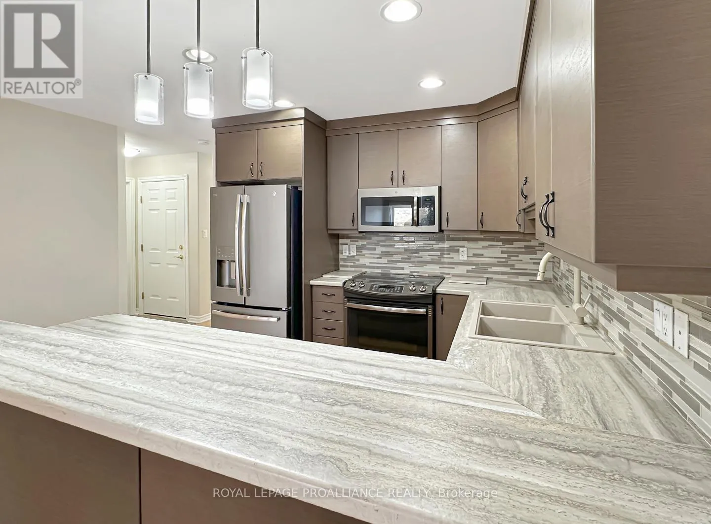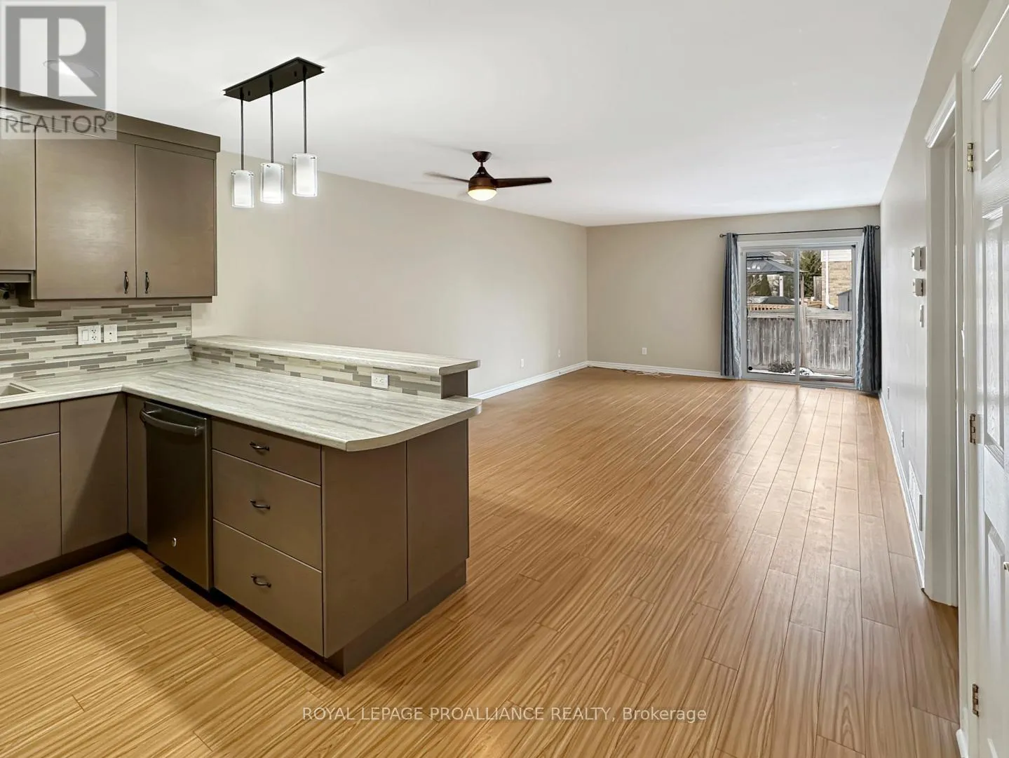 College St W to Sarah Crt Welcome to this charming townhouse bungalow offering low-maintenance living in a comfortable and well-designed layout. With an attached single-car garage and thoughtful updates throughout, this home is ideal for anyone seeking convenience and modern comfort. Step inside to a bright front bedroom, perfect for a guest room, home office, or cozy retreat. The main level continues with an open-concept kitchen, living, and dining area, ideal for both everyday living and entertaining. The updated kitchen features modern appliances and ample workspace, while the living room offers direct access to the rear yard for easy outdoor enjoyment. The spacious primary bedroom includes a walk-in closet and a cheater ensuite door to the well-appointed 4-piece main bathroom. Main floor laundry adds practicality and ease to daily routines. The fully finished lower level provides exceptional versatility with a generous recreation room, a second full bathroom, and a large third bedroom. An additional office/flex room offers the potential for a fourth bedroom or hobby space. A sizeable utility room and convenient under-stair storage ensure plenty of room for organization. (id:27476)